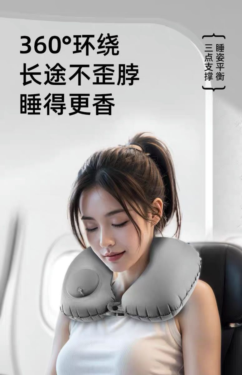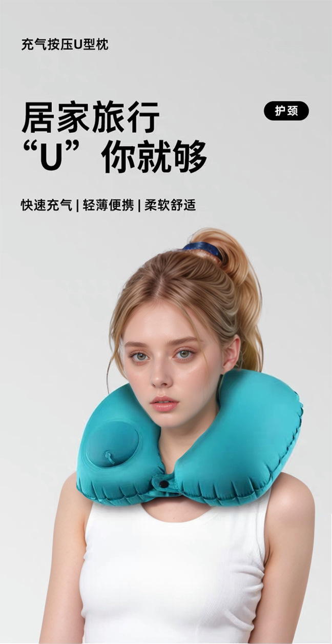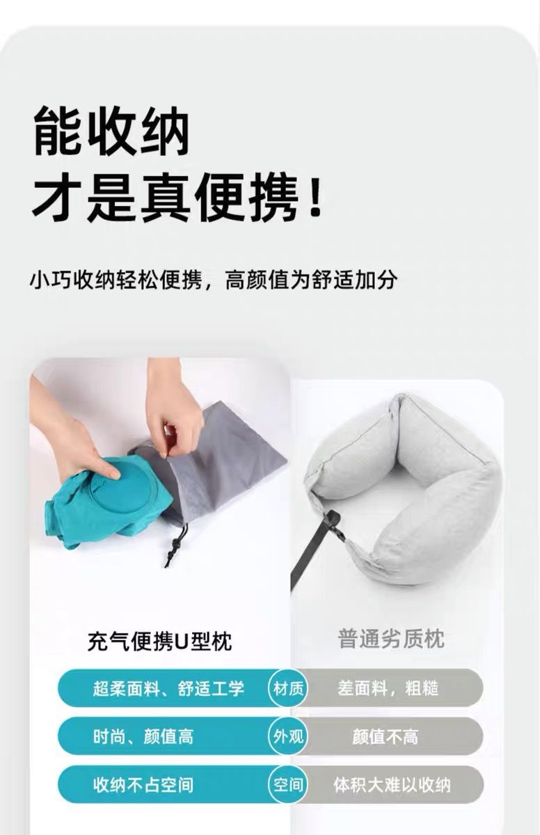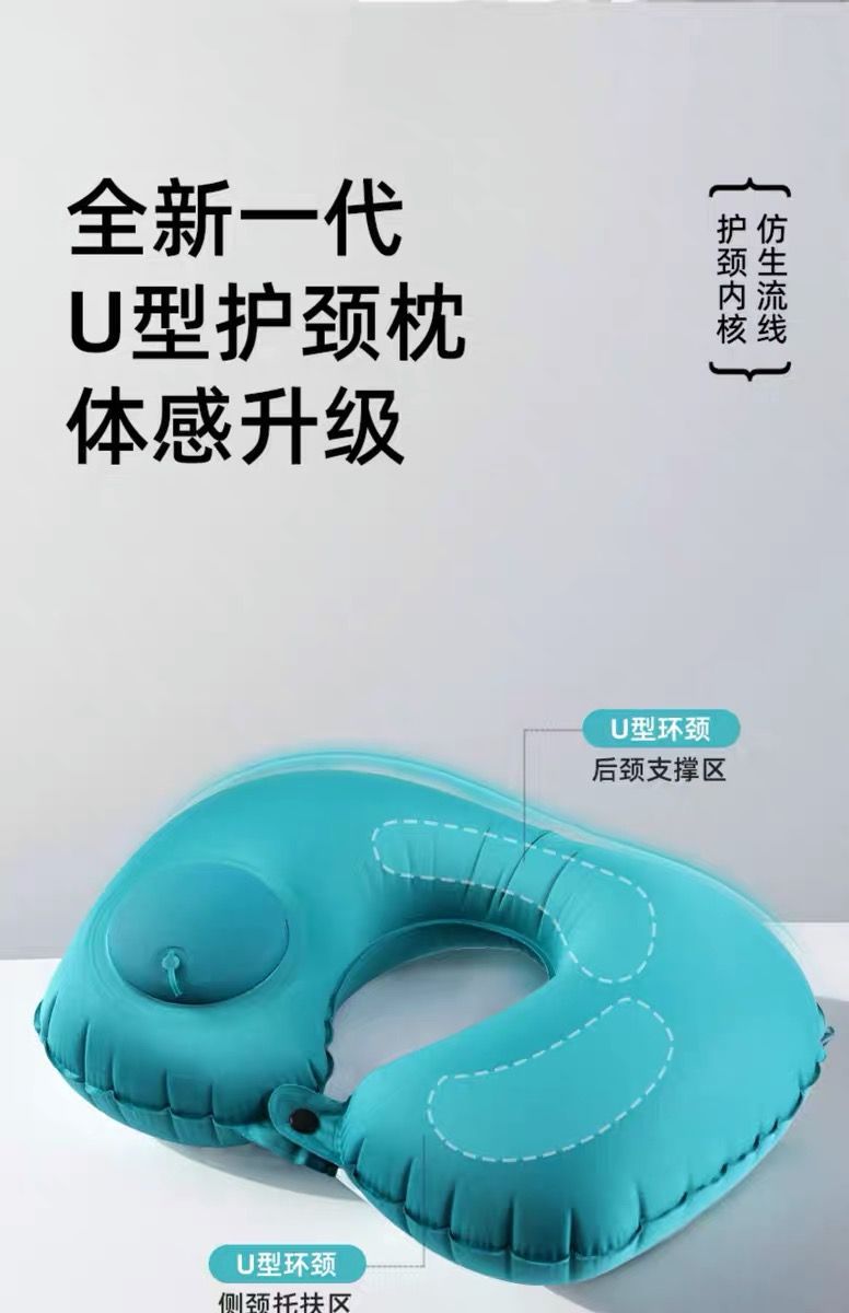 U 자형 베개 팽창식 압력 팽창식 U 자형 베개 휴대용 접이식 자동차 항공기 여행 보호 자궁 경부 척추 목 보호 베개