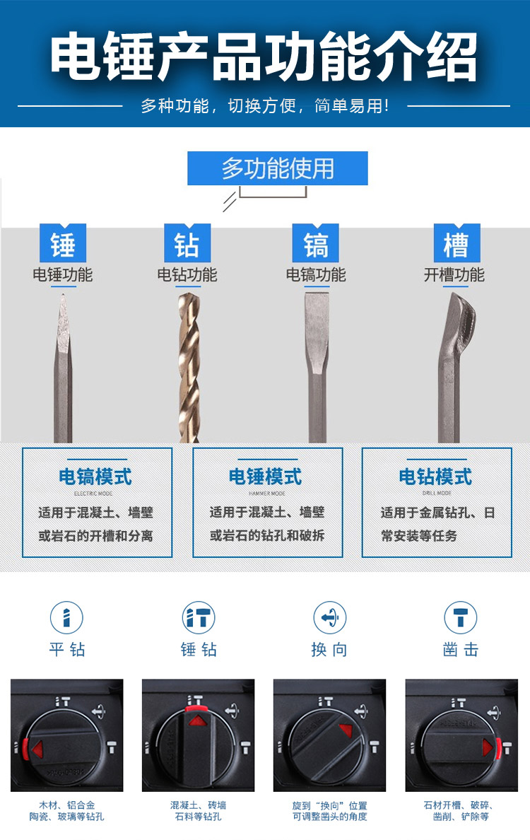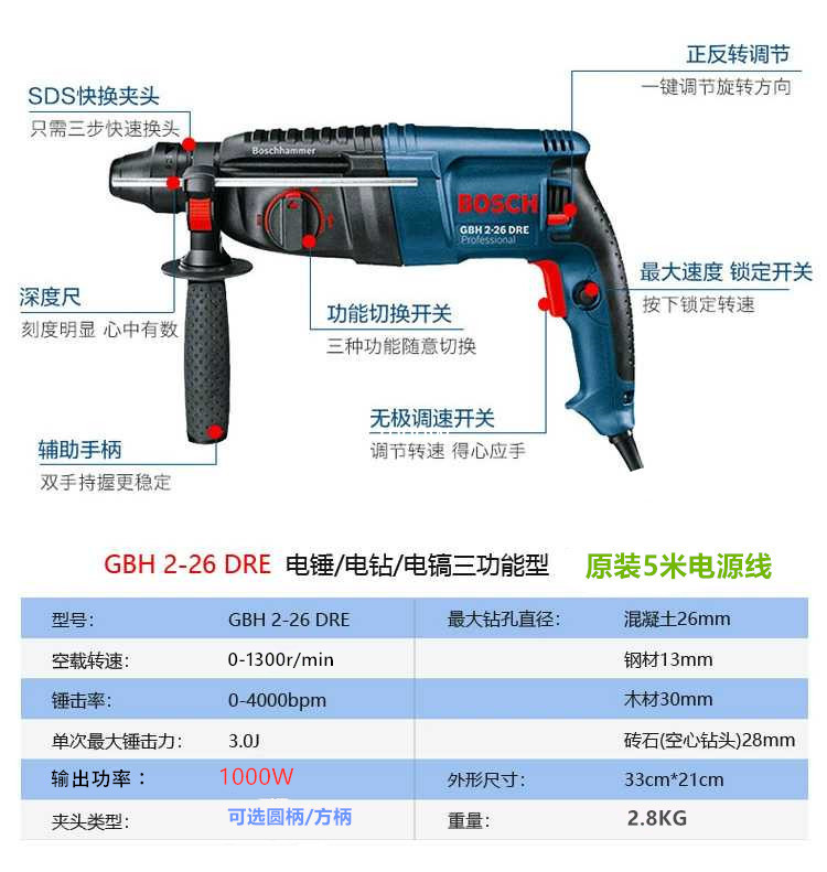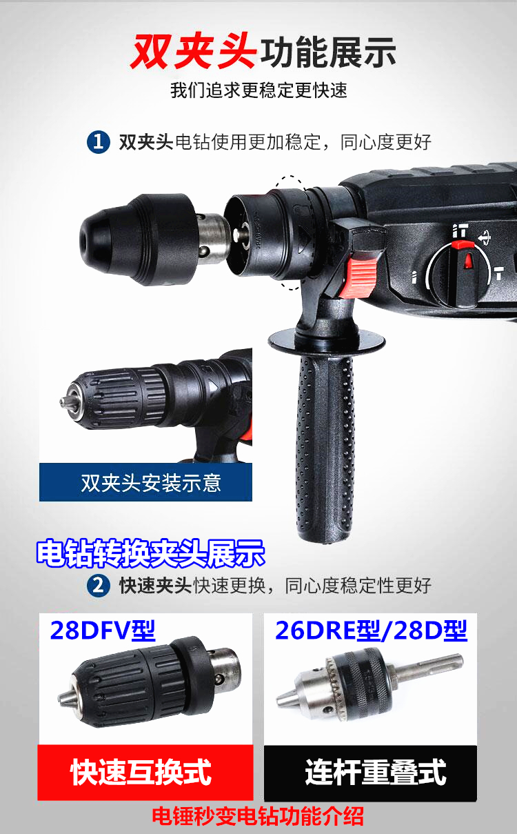 조명 26/28 3 목적 다기능 고출력 콘크리트 경제적이고 실용적인 충격 드릴 가정용 엔지니어링스토어 가기