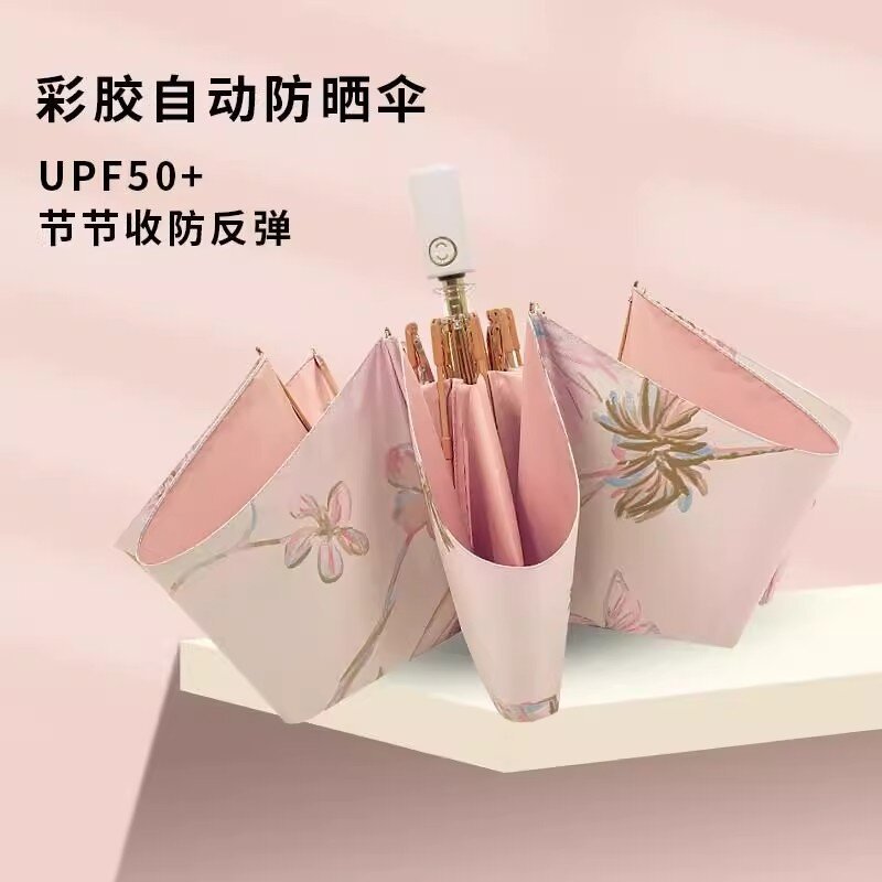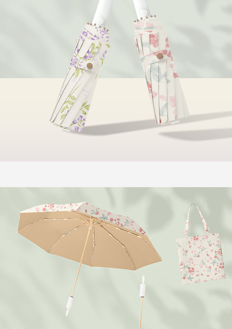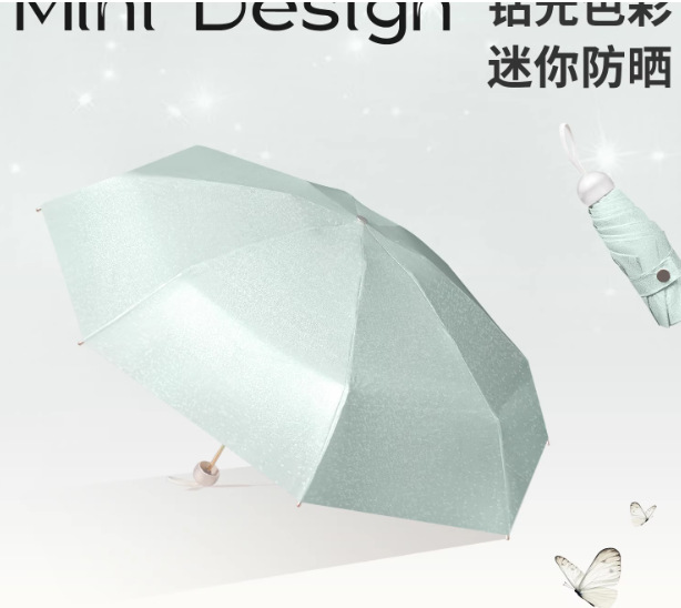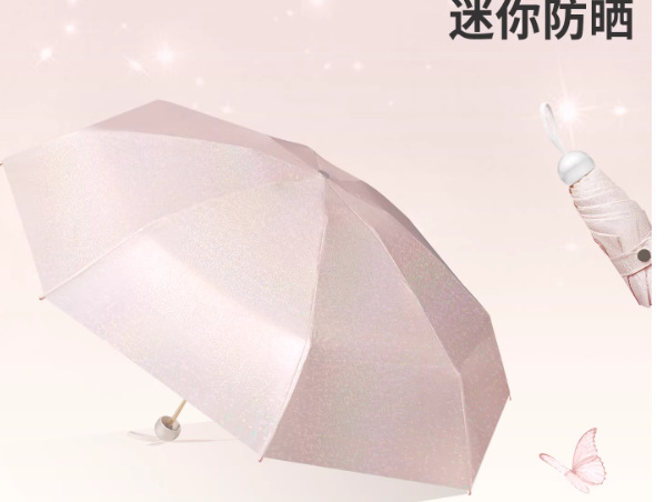 핑크 골드 나비 후크 햇빛 우산 Ins 바람 고급 감각 작은 휴대용 태양 보호 UV 보호 이 스티커 태양 우산스토어 가기