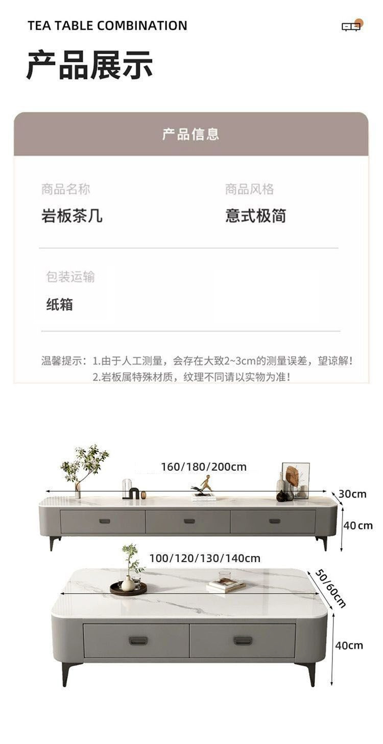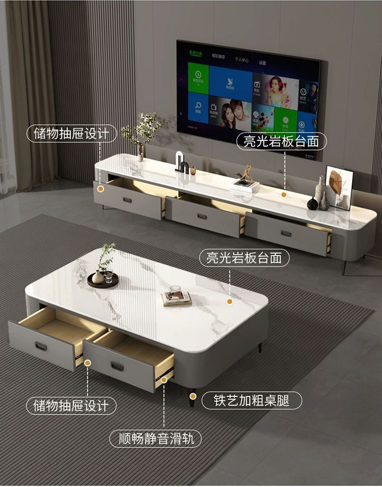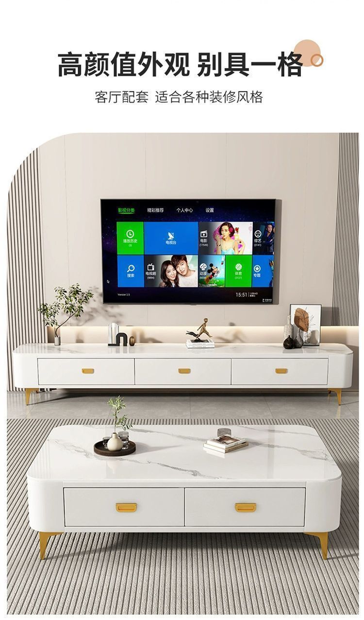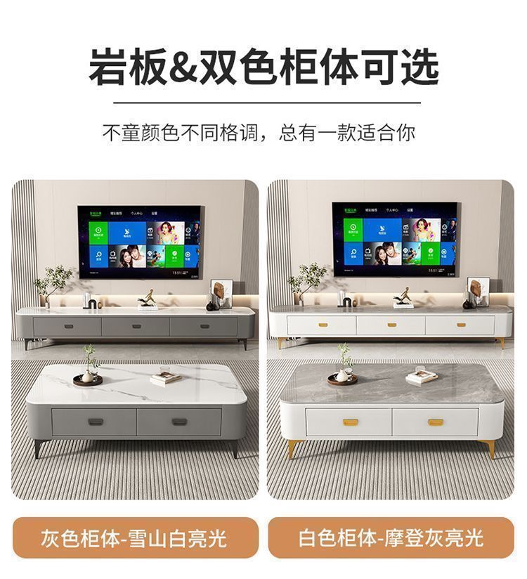 록 보드 커피 테이블 거실 홈 2025 새로운 스타일 빛 럭셔리 테이블 높은 느낌 작은 아파트 바닥-서 커피 테이블 TV 캐비닛 조합스토어 가기