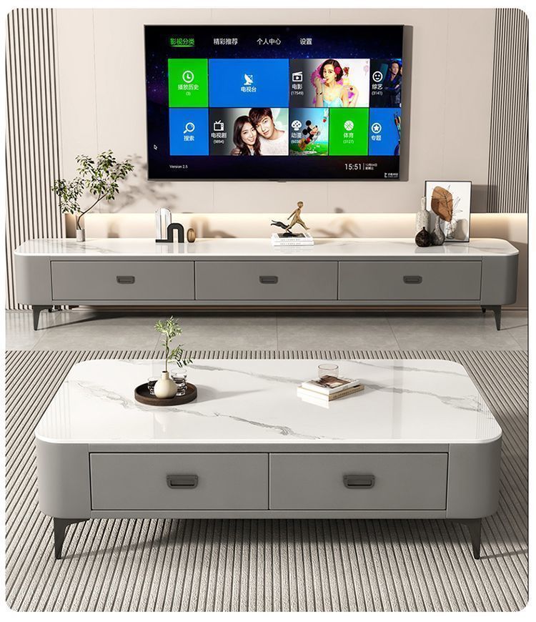 록 보드 커피 테이블 거실 홈 2025 새로운 스타일 빛 럭셔리 테이블 높은 느낌 작은 아파트 바닥-서 커피 테이블 TV 캐비닛 조합