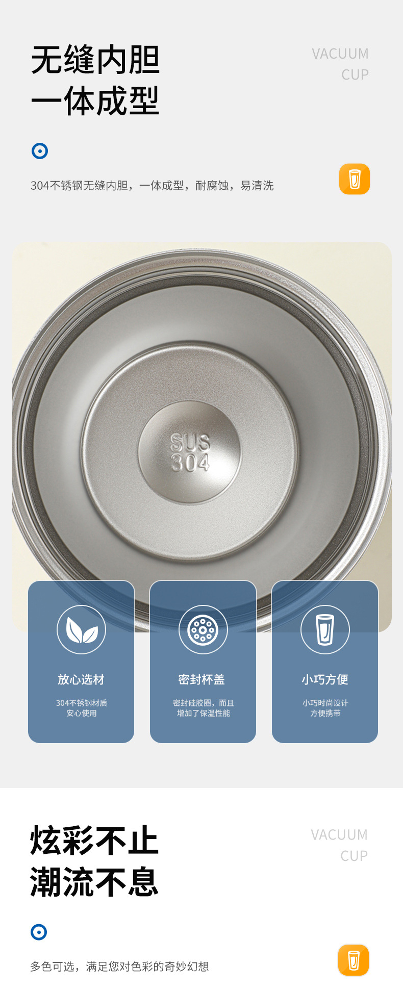 멀티 컬러 간단한 스타일 커피 컵 보온병 컵 내부 304 외부 201 스테인레스 스틸 높은 색상 값 간단한 동반 컵