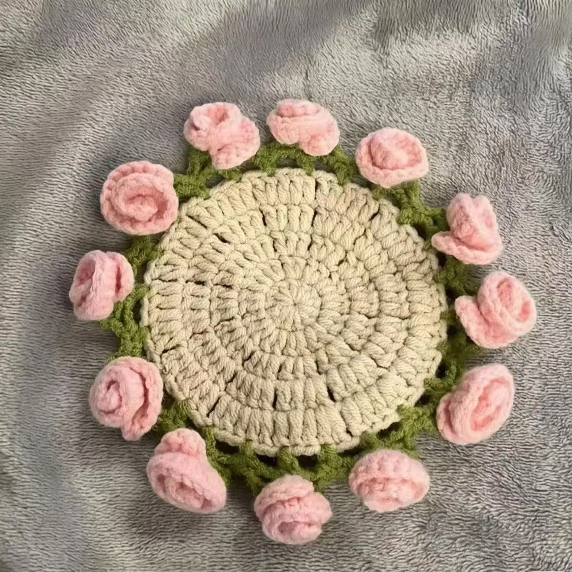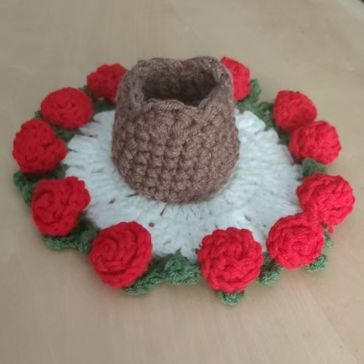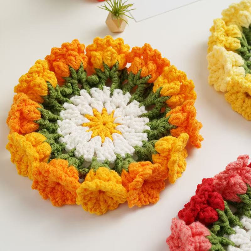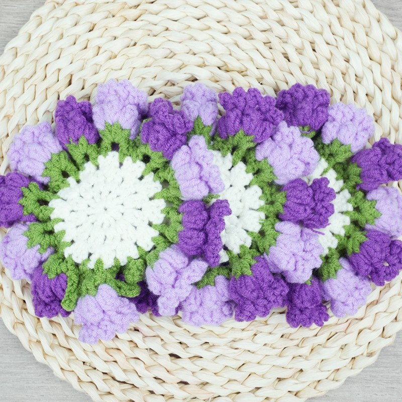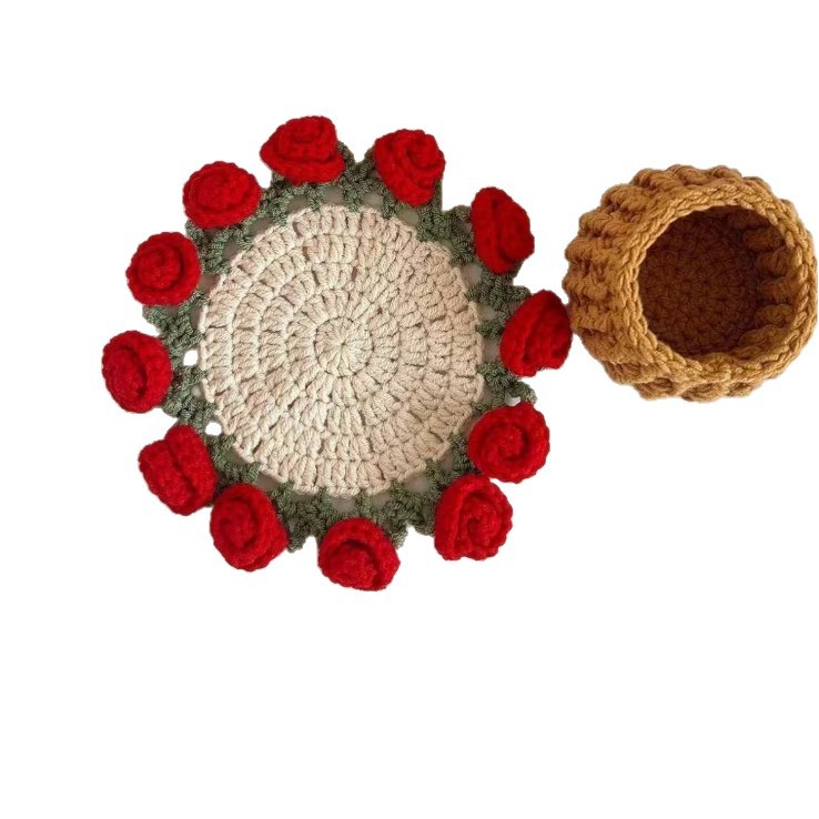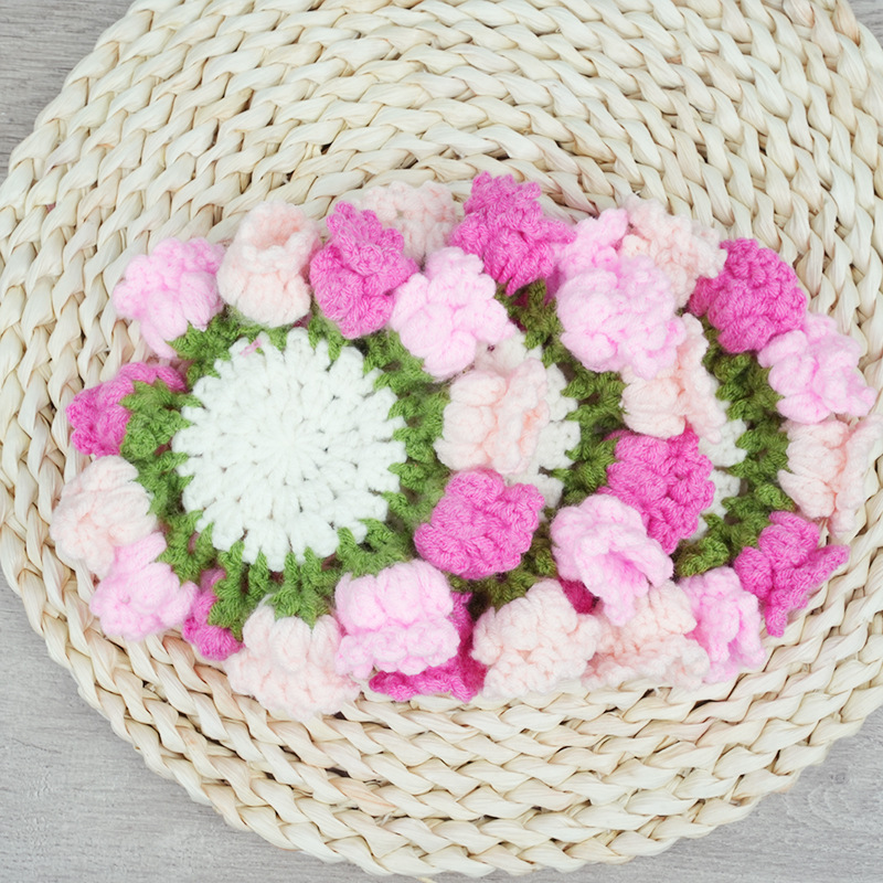 완성된 장식품 크로셰 은방울꽃 장미 데이지 코스터 꽃 바구니 코스터 단열 패드 꽃 바구니 크리에이티브