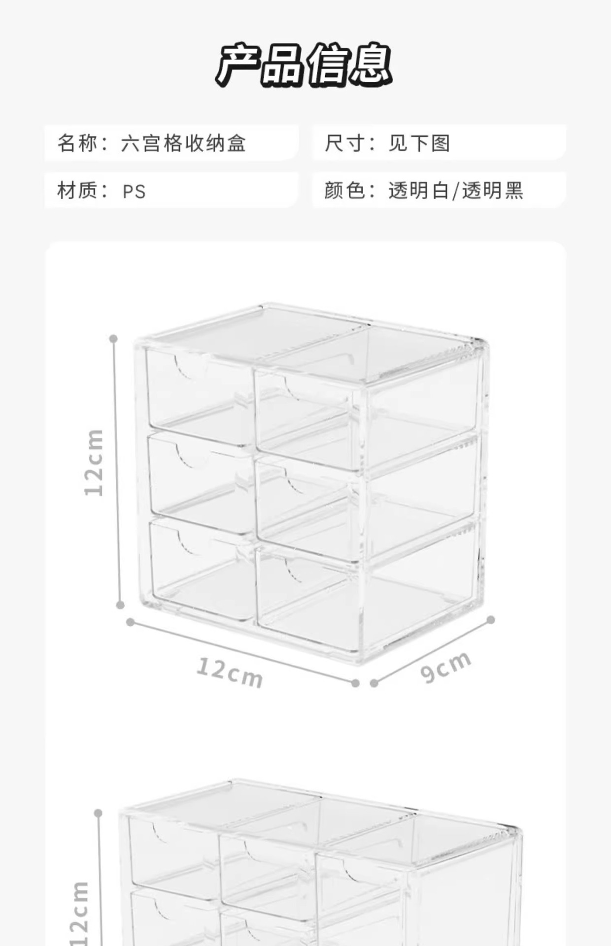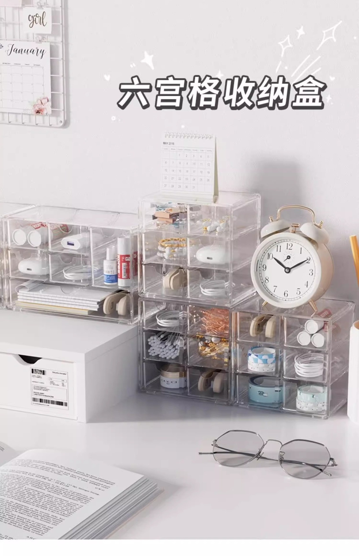 6 궁전 그리드 데스크탑 서랍 저장 상자 투명 아크릴 그리드 보석 저장 상자 다층 디스플레이 상자 도매스토어 가기
