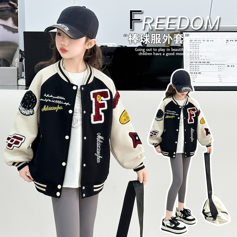 소녀 코트 봄과 가을 2025 새로운 어린이 봄 서양식 인터넷 연예인 탑 중대형 어린이 튀김 거리 봄 야구 옷스토어 가기