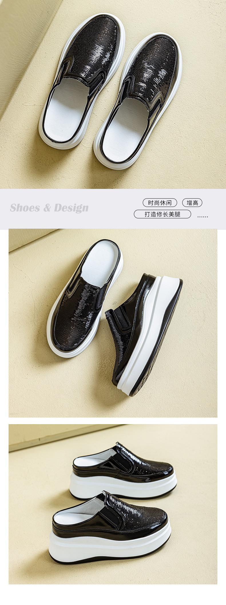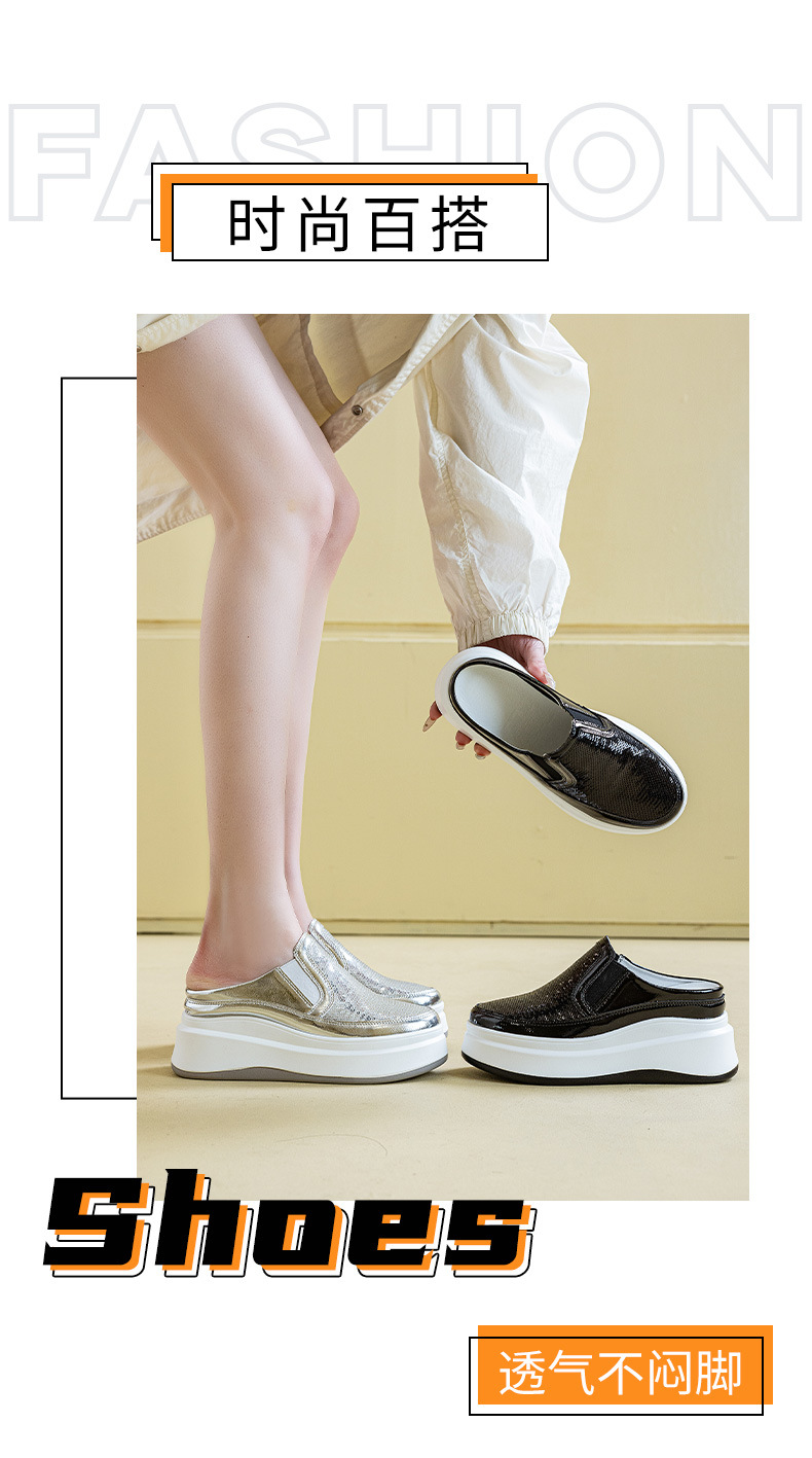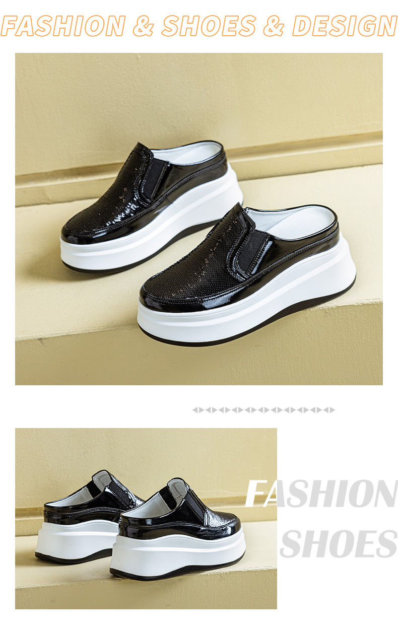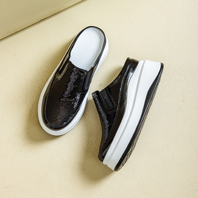 두꺼운 바닥 baotou 하프 슬리퍼 여성의 25 여름 착용 라운드 헤드 스팽글 여성 신발 캐주얼 조커 작은 흰색 신발 도매 증가