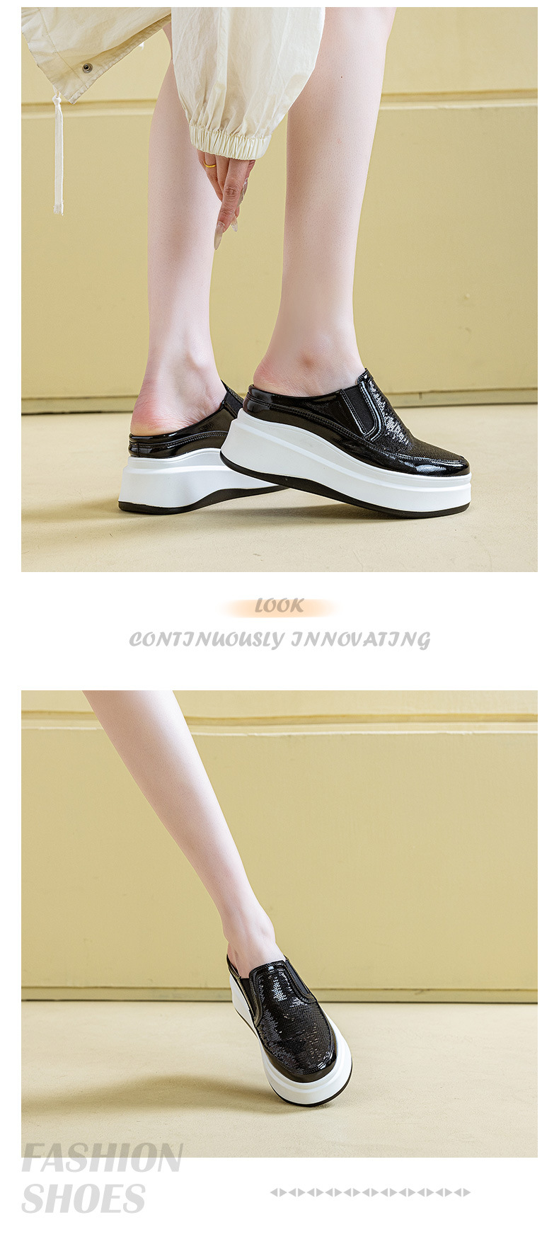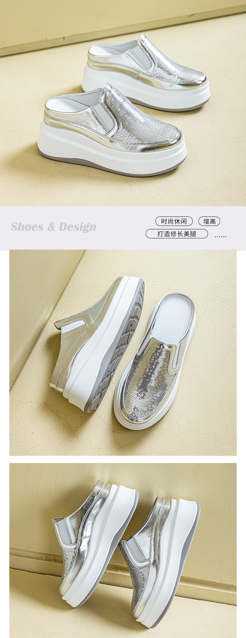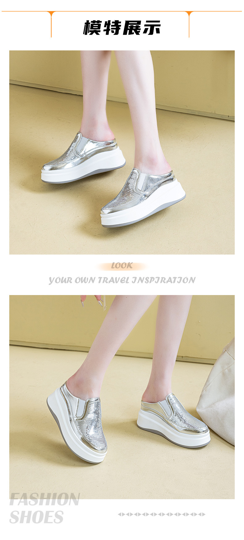 두꺼운 바닥 baotou 하프 슬리퍼 여성의 25 여름 착용 라운드 헤드 스팽글 여성 신발 캐주얼 조커 작은 흰색 신발 도매 증가