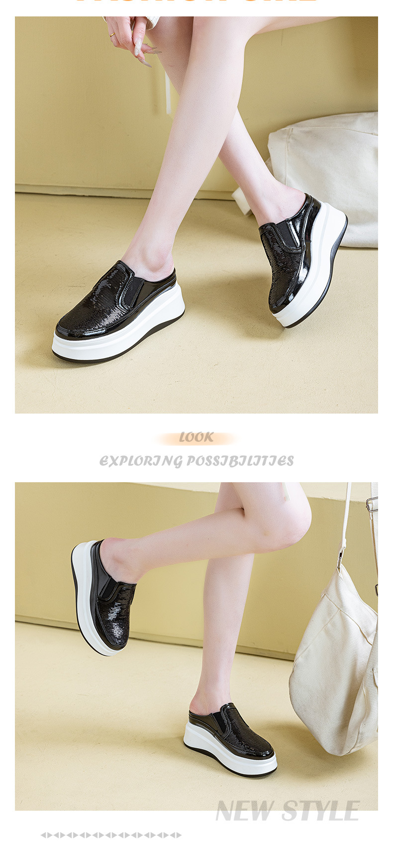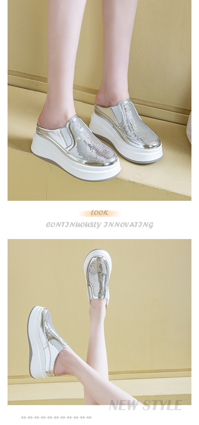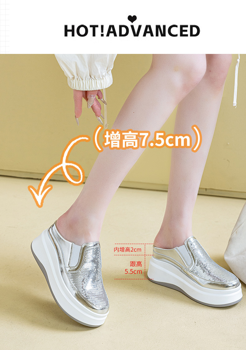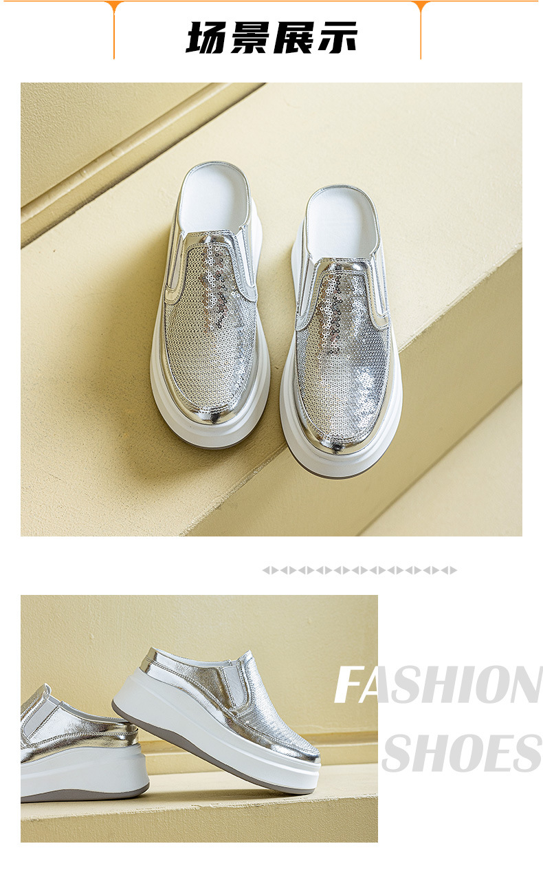 두꺼운 바닥 baotou 하프 슬리퍼 여성의 25 여름 착용 라운드 헤드 스팽글 여성 신발 캐주얼 조커 작은 흰색 신발 도매 증가스토어 가기