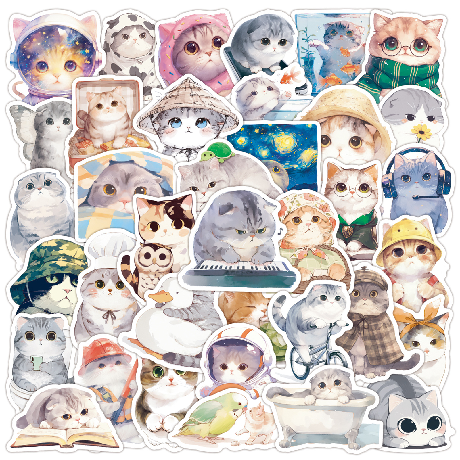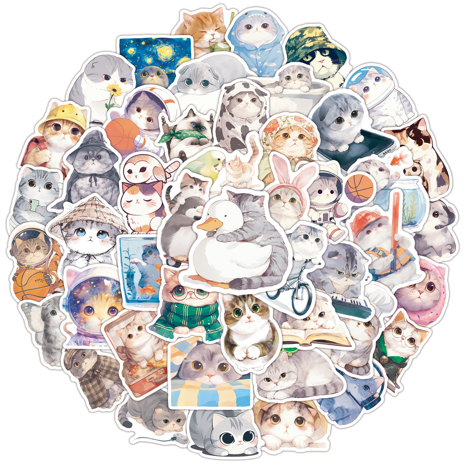50 원래 잉크 고양이 낙서 스티커 전기 자동차 노트북 컵 방수 장식 손 계정 스티커