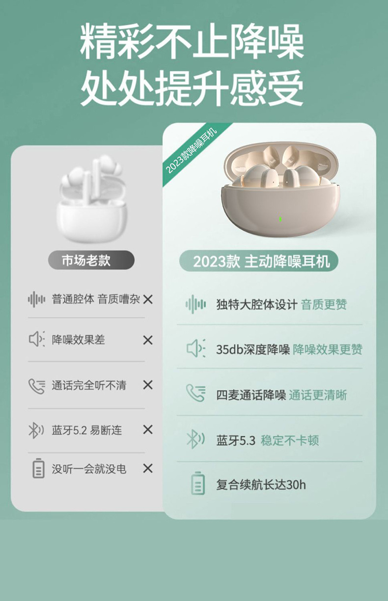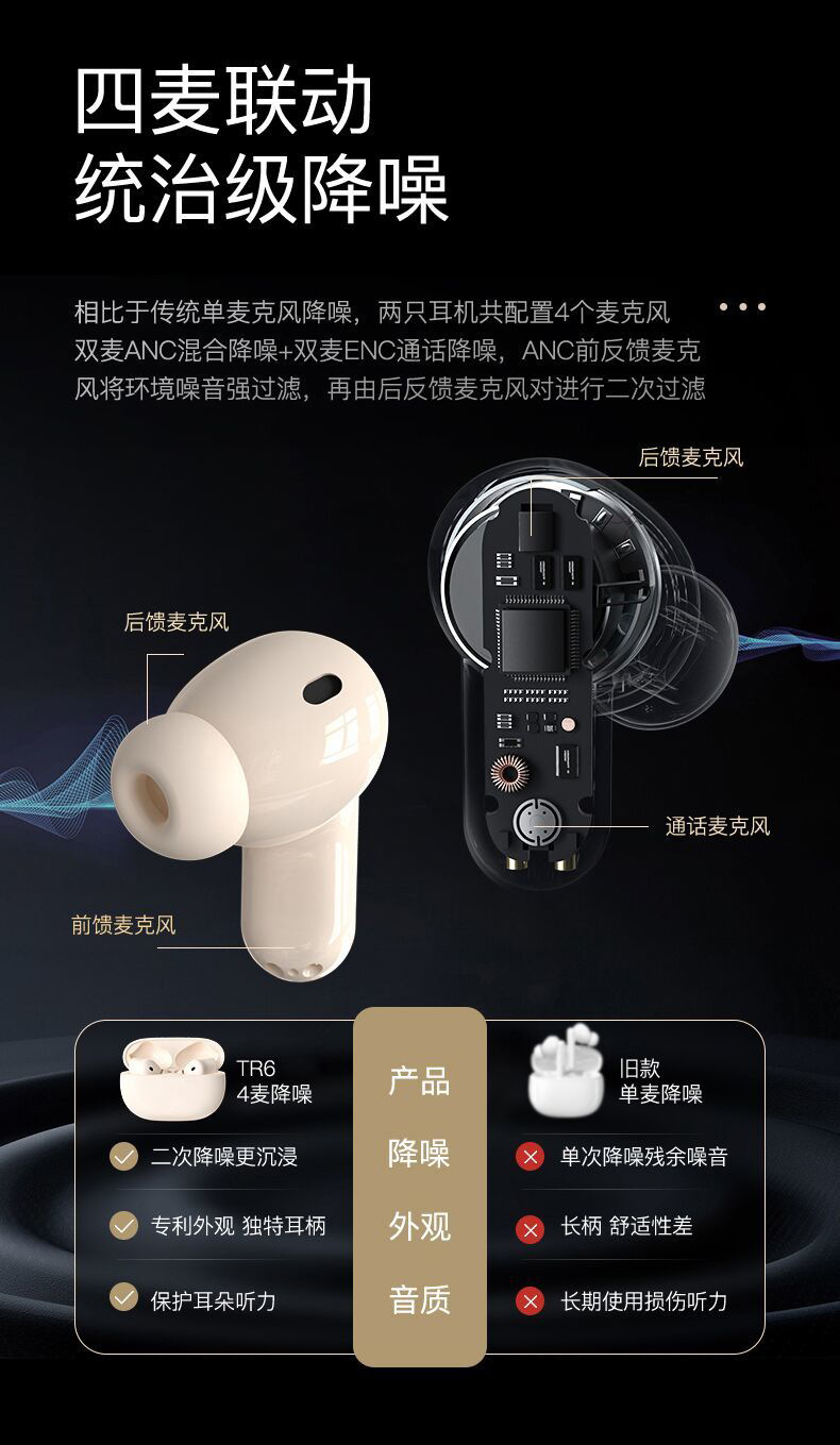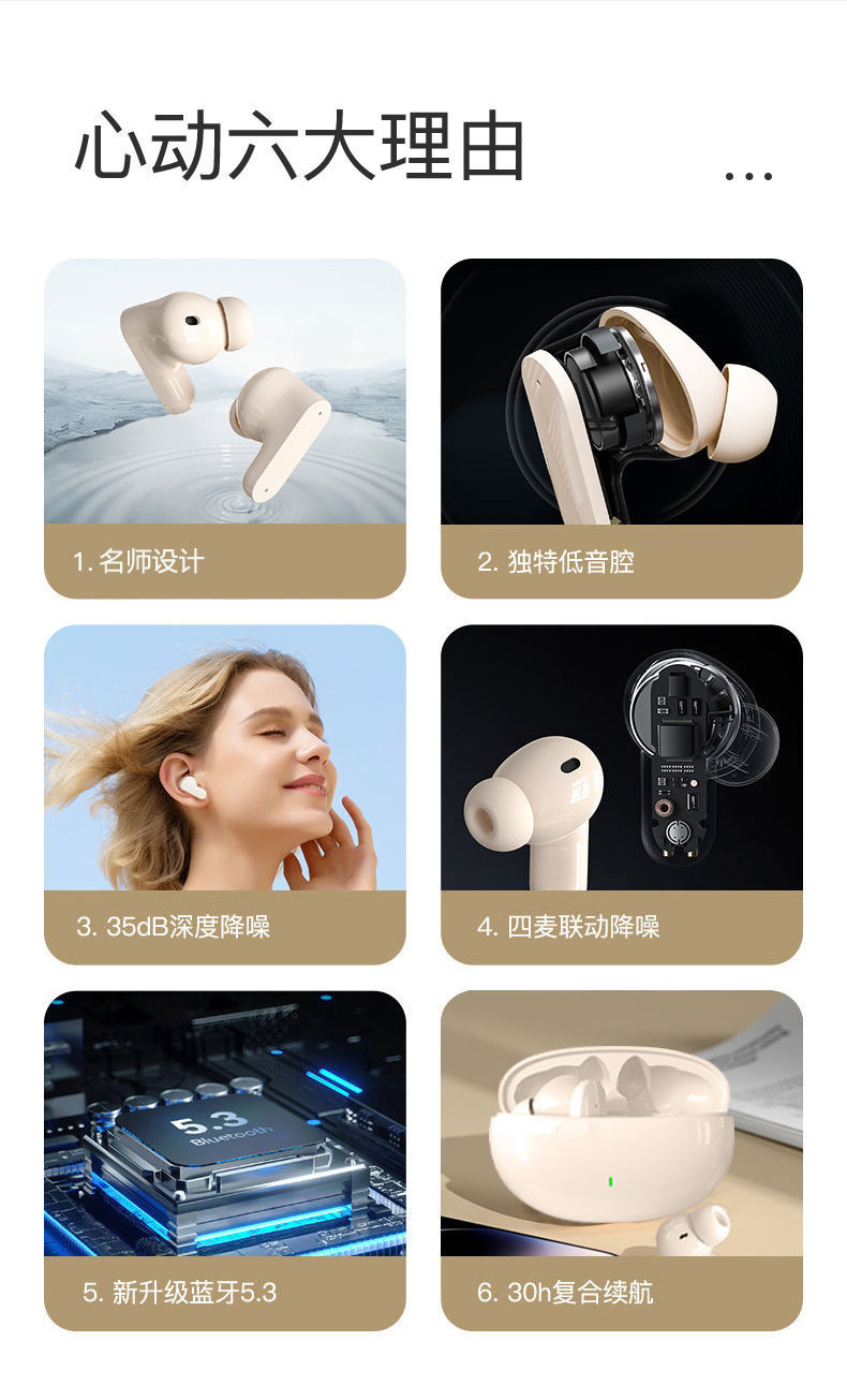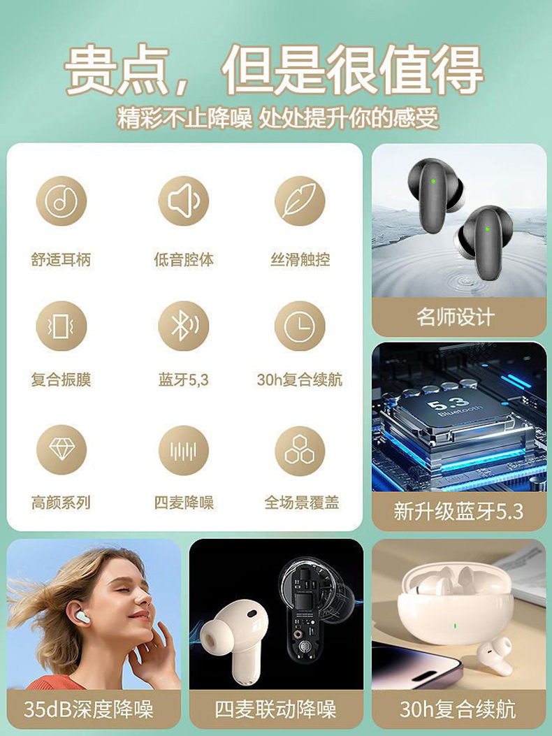 2024 새로운 실제 무선 블루투스 헤드셋 인 이어 소음 감소 높은 음질 남성과 여성 학생 게임 스포츠 지구력
