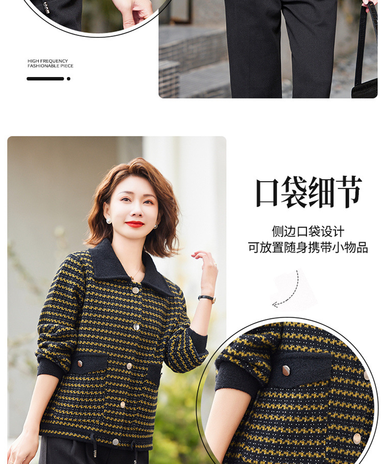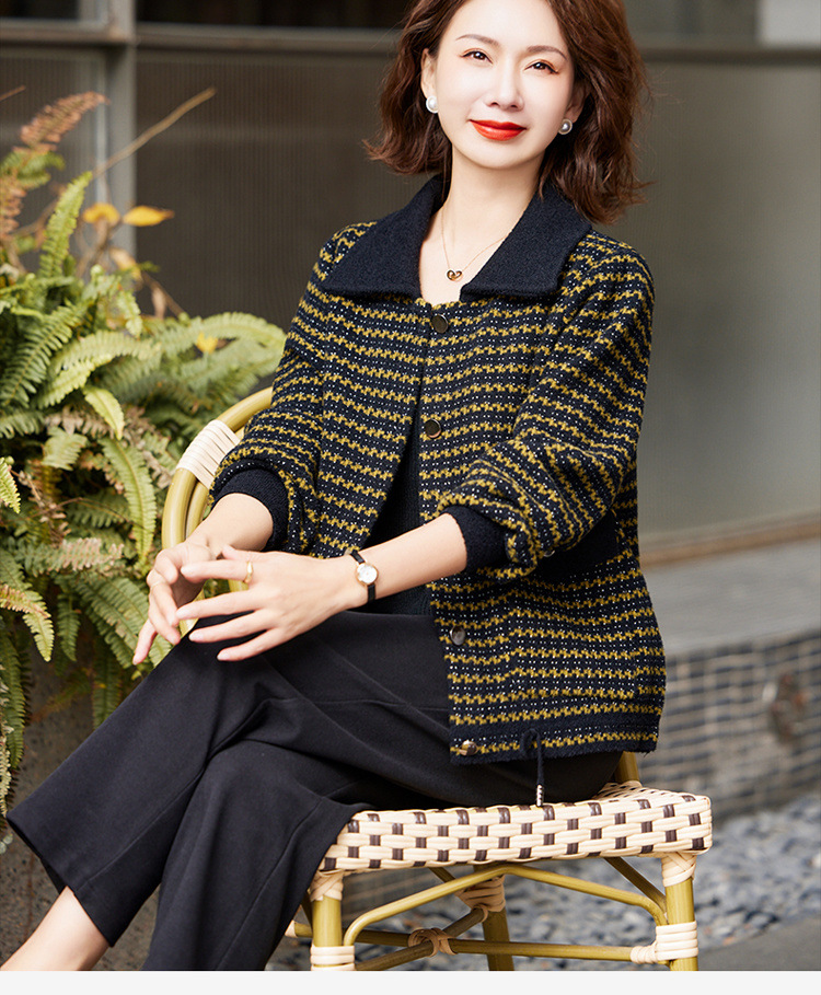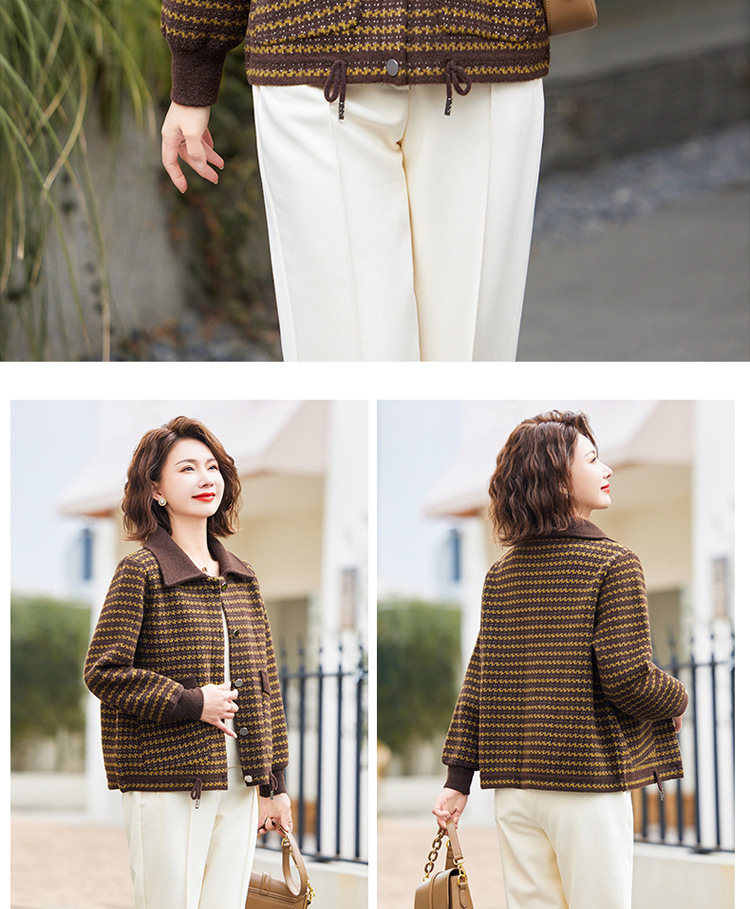 새로운 어머니의 봄 원피스 서양식 니트 코트 중년 여성의 봄과 가을 짧은 플러스 사이즈 모직
