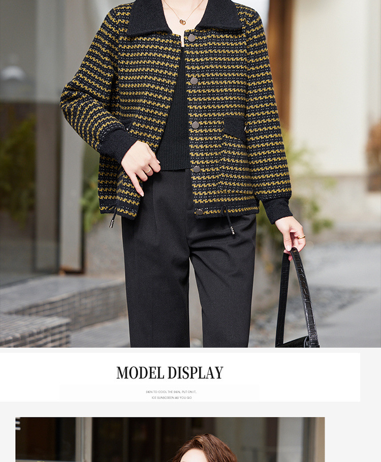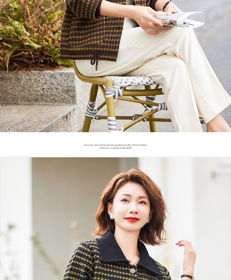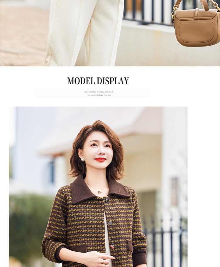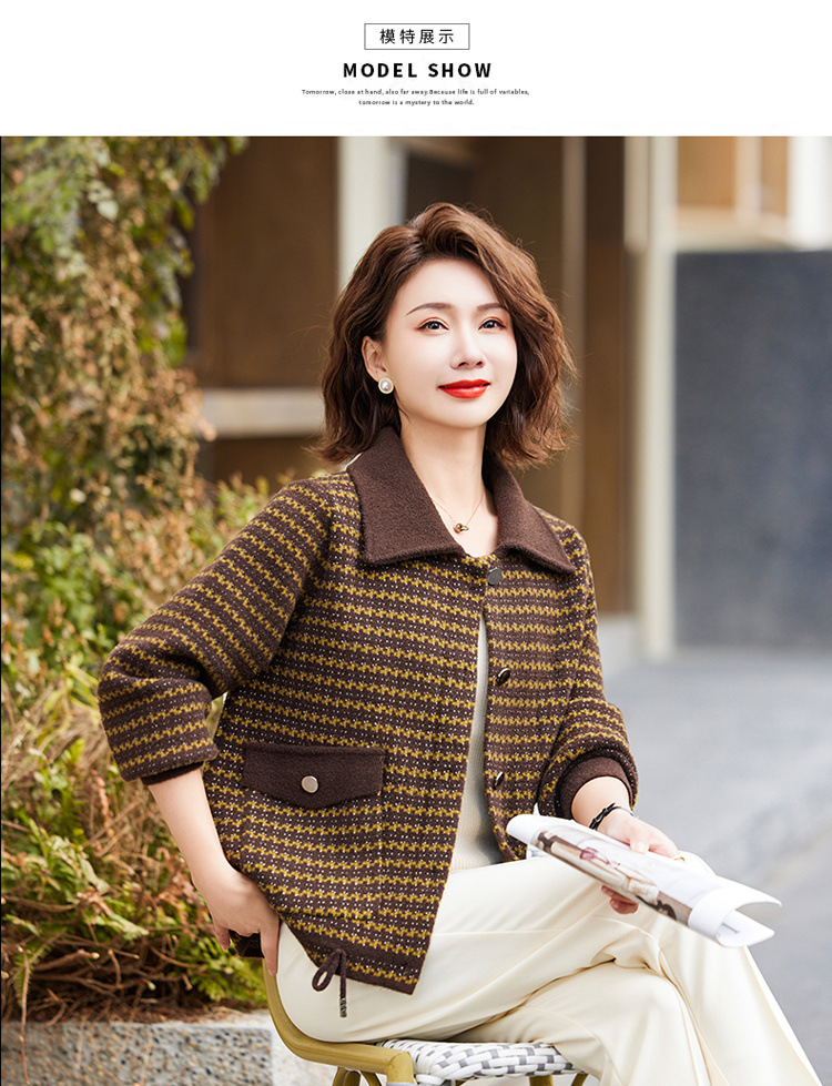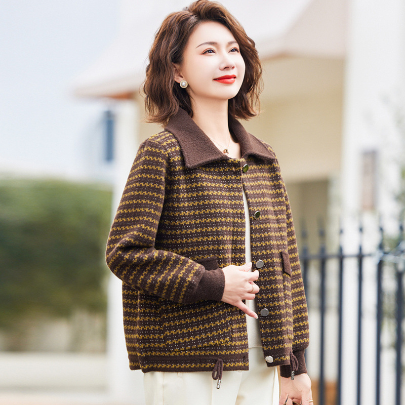 새로운 어머니의 봄 원피스 서양식 니트 코트 중년 여성의 봄과 가을 짧은 플러스 사이즈 모직스토어 가기