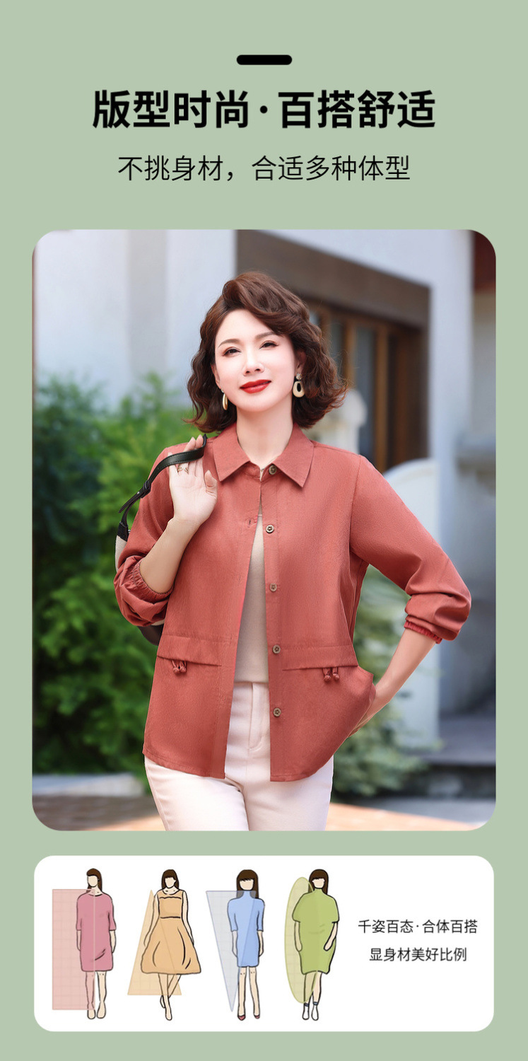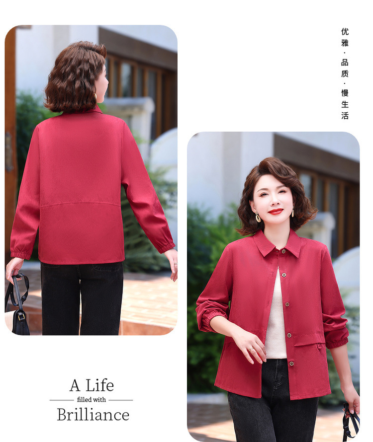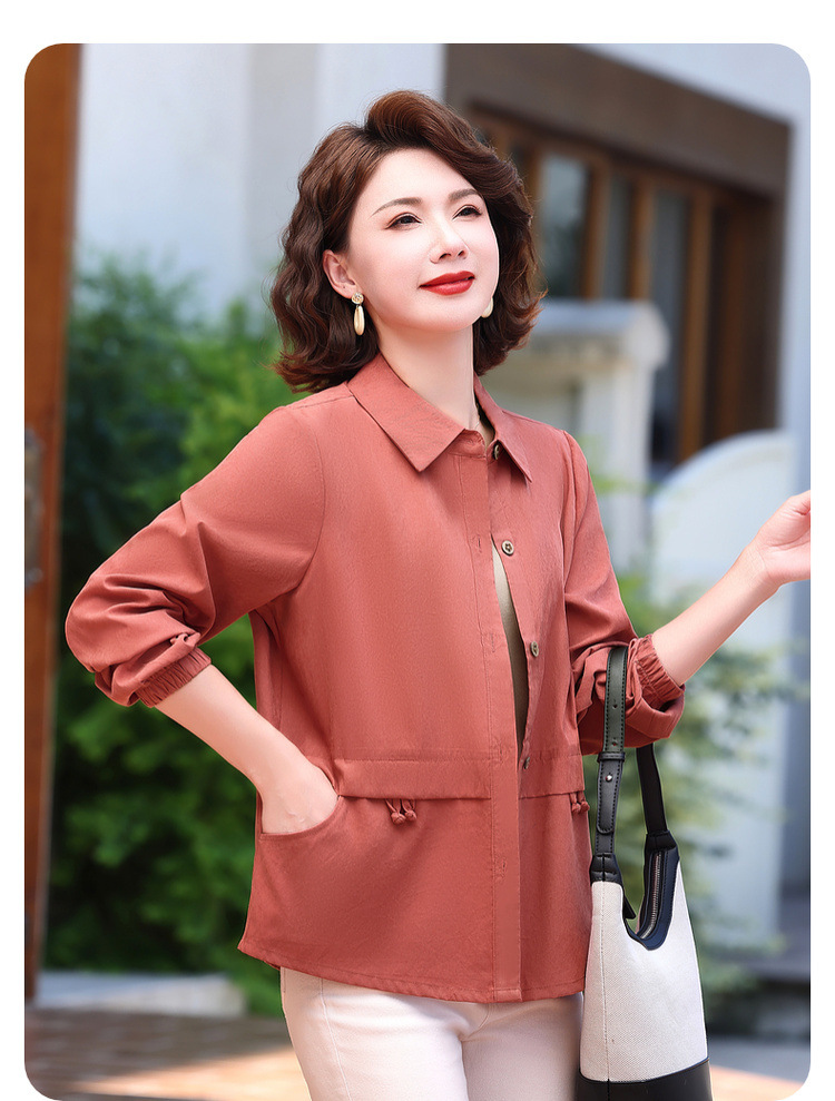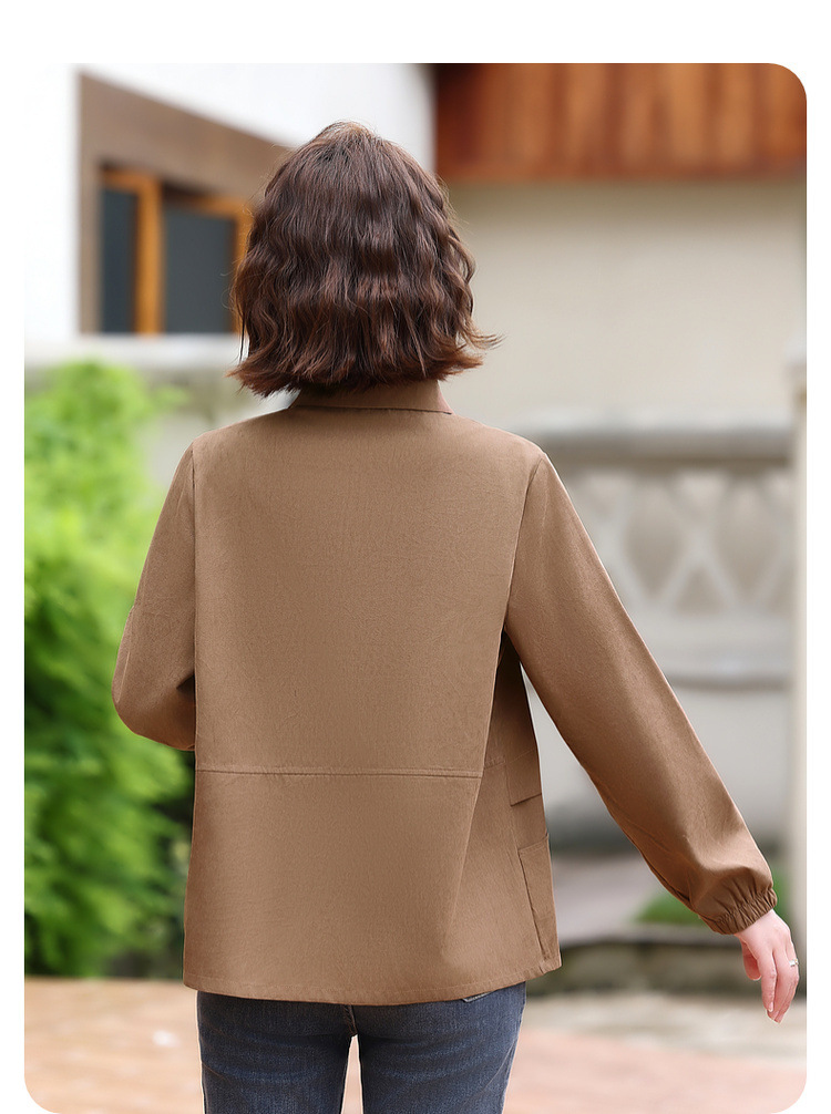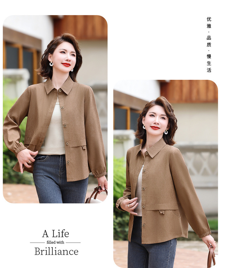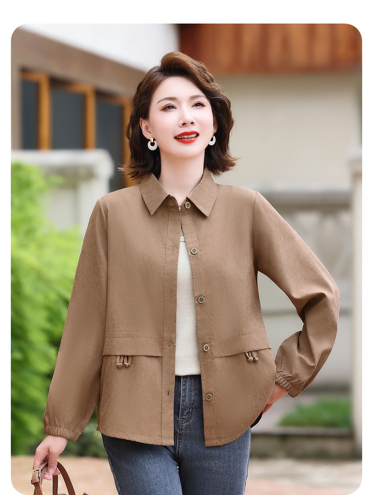 새로운 고급 어머니 단색 탑 긴팔 코트 중년 봄과 가을 패션 캐주얼 중년 느슨한 카디건 여성스토어 가기