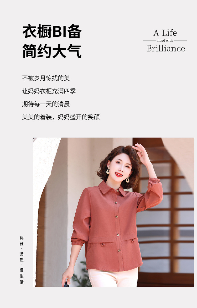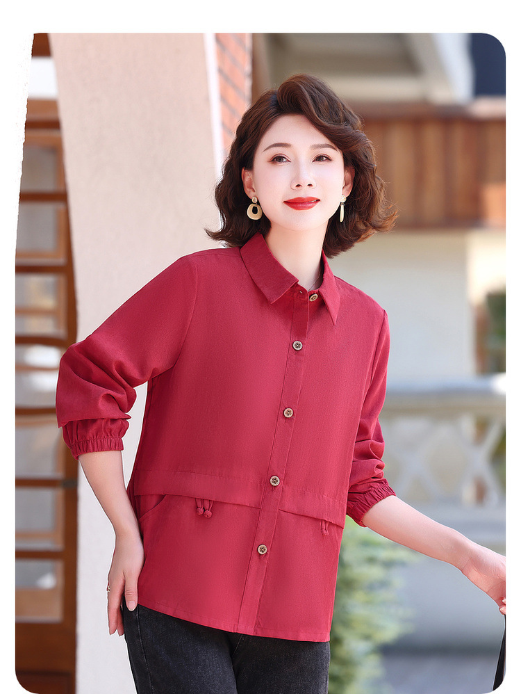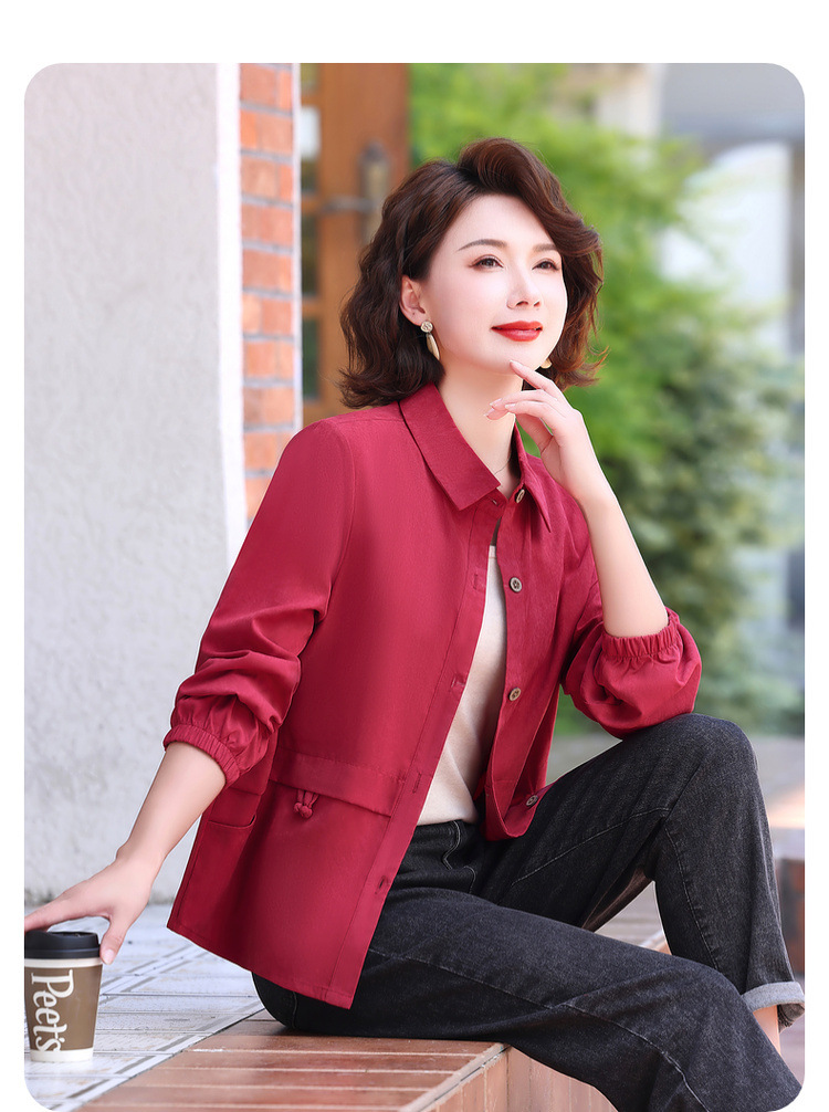 새로운 고급 어머니 단색 탑 긴팔 코트 중년 봄과 가을 패션 캐주얼 중년 느슨한 카디건 여성