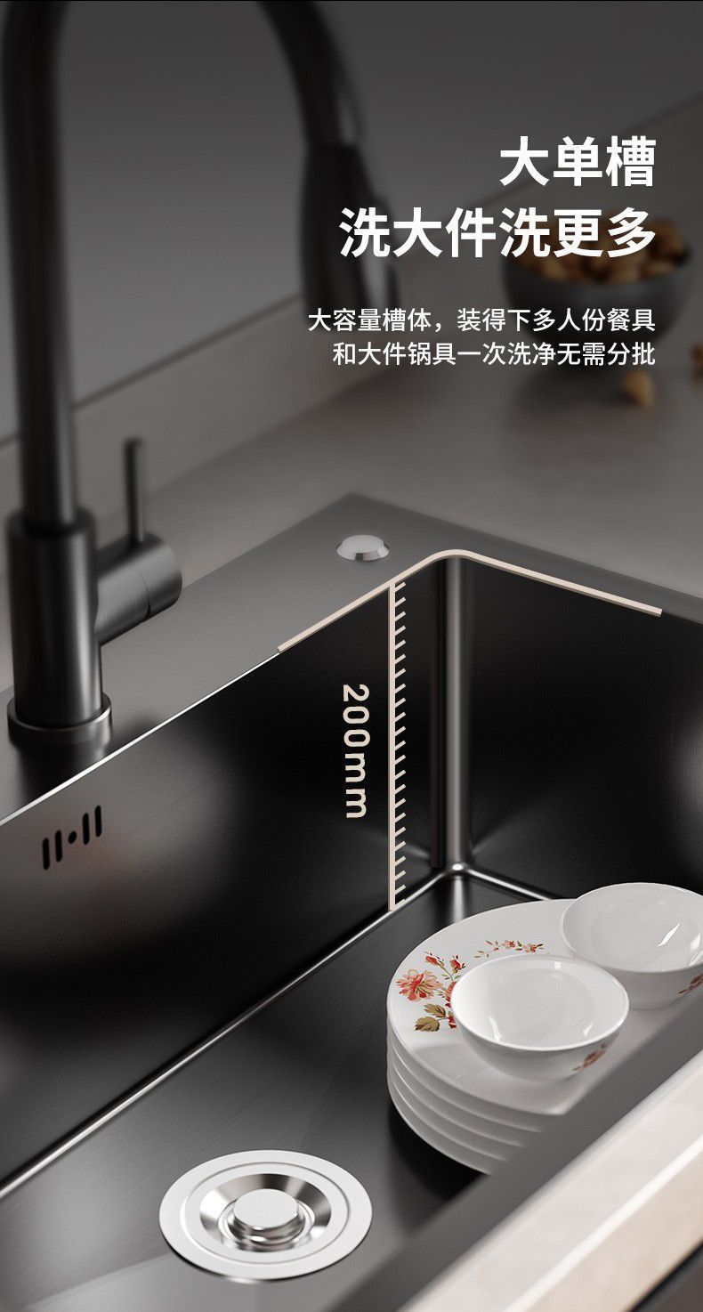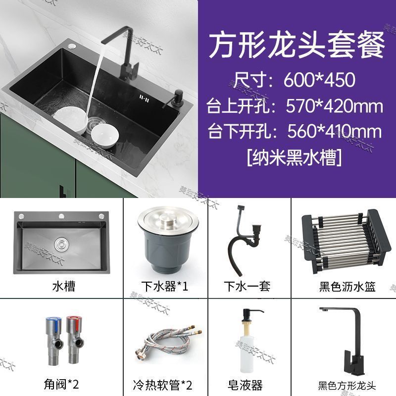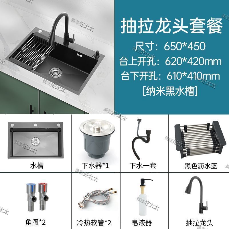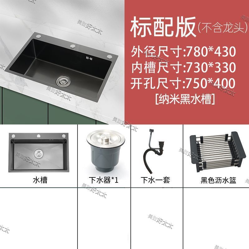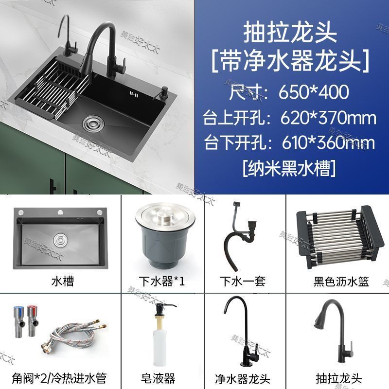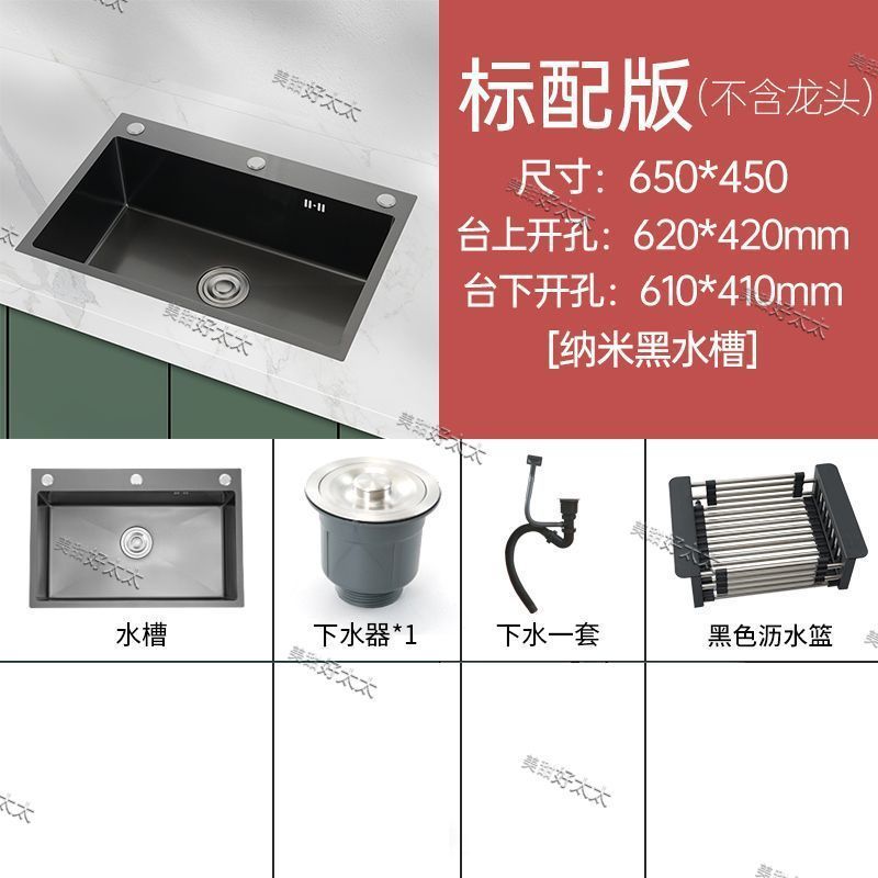 특수 두꺼운 블랙 나노 스테인레스 스틸 싱크 항균 오일 프리 주방 대형 단일 싱크 야채 세척 수영장 야채 세척 분지 완벽한 세트