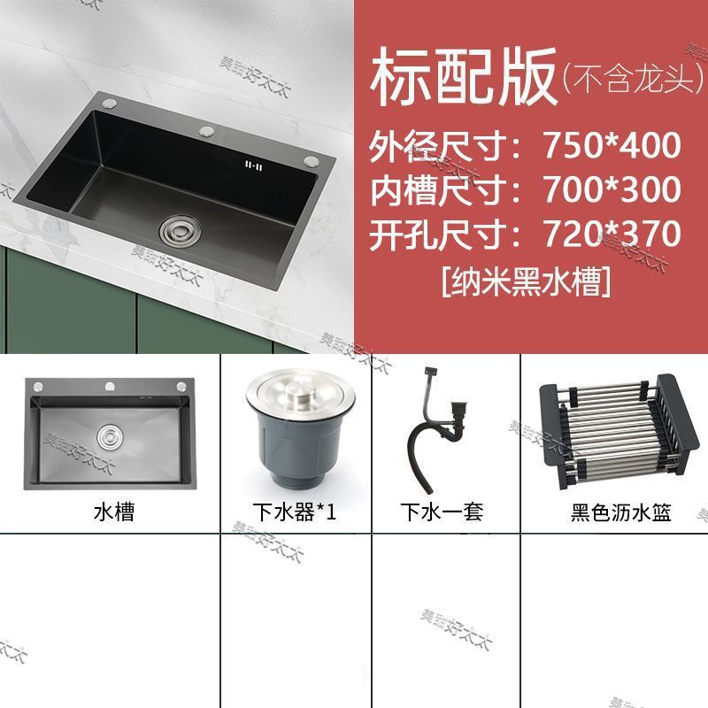 특수 두꺼운 블랙 나노 스테인레스 스틸 싱크 항균 오일 프리 주방 대형 단일 싱크 야채 세척 수영장 야채 세척 분지 완벽한 세트스토어 가기