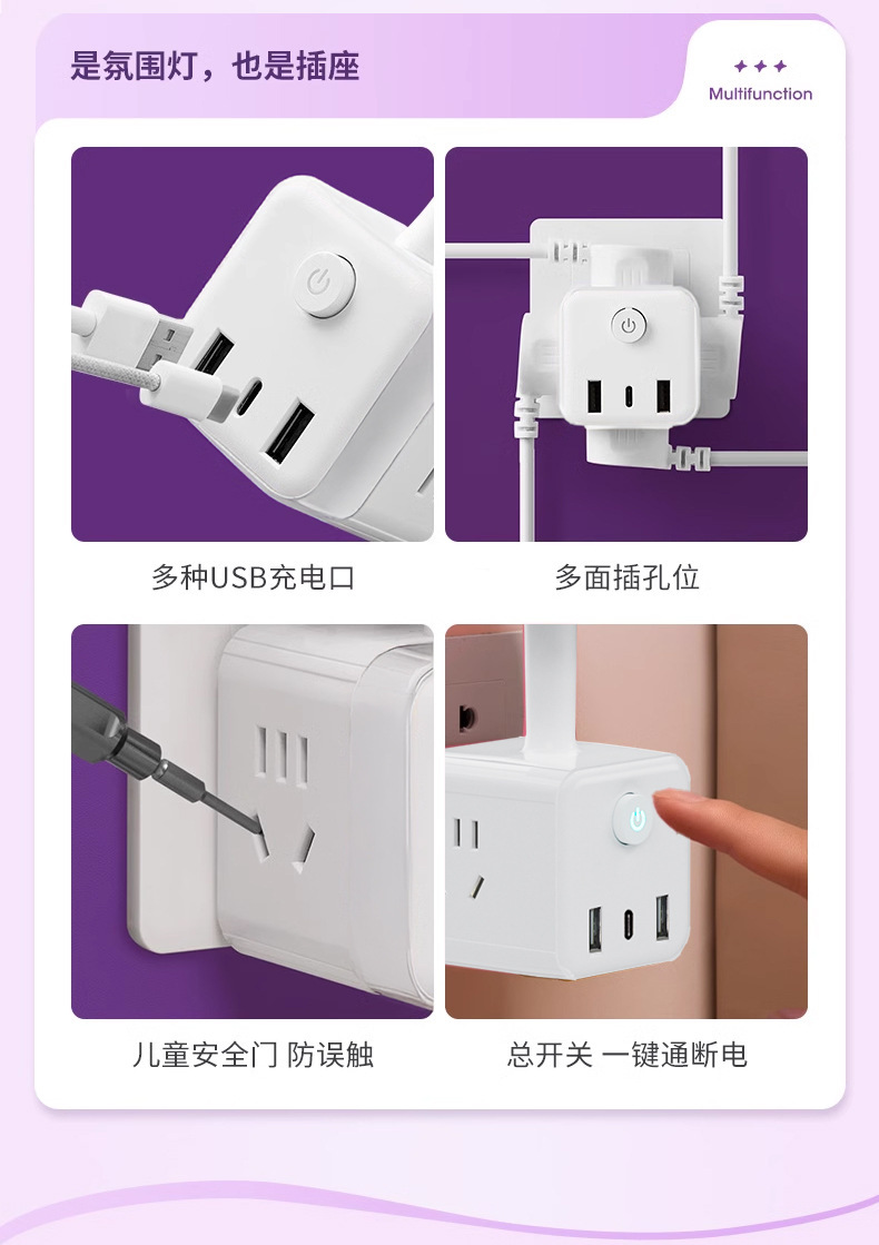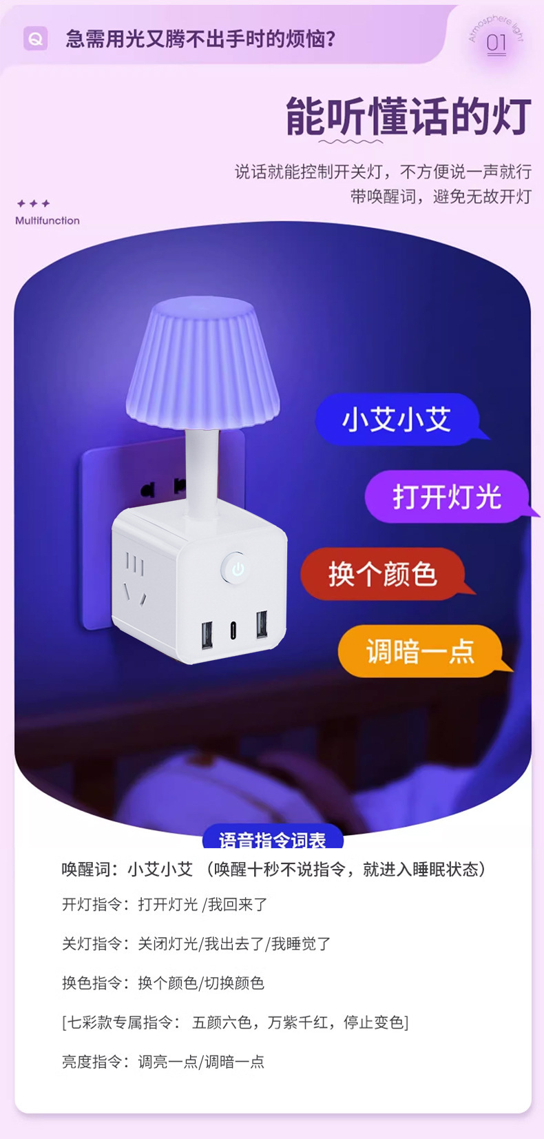 • [음성 제어 없음] 3색 조명 + USB 포함 [핑크 버전]