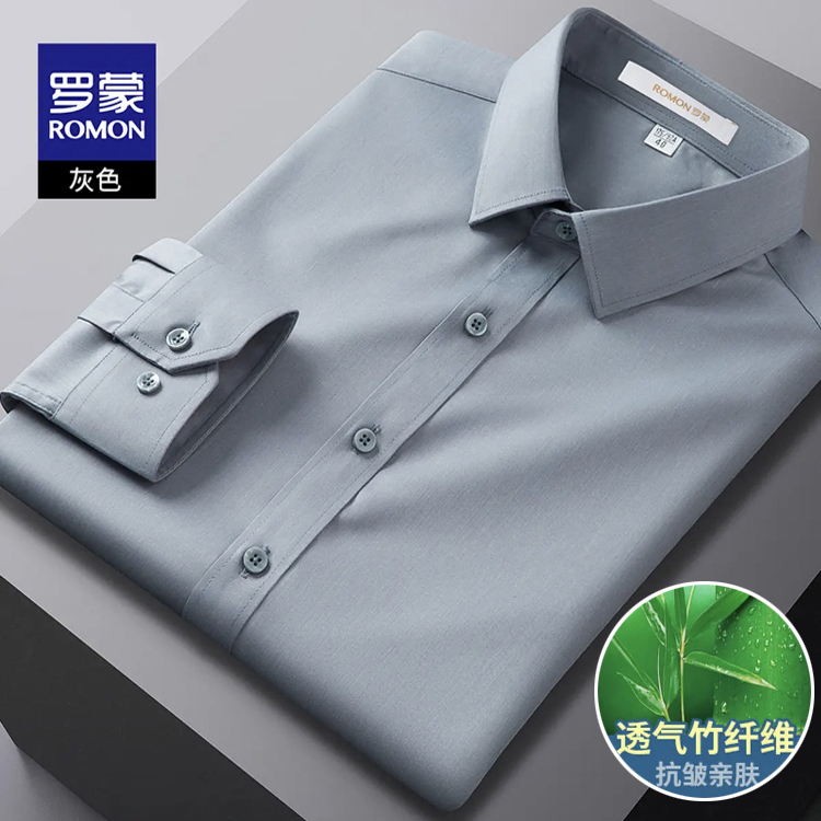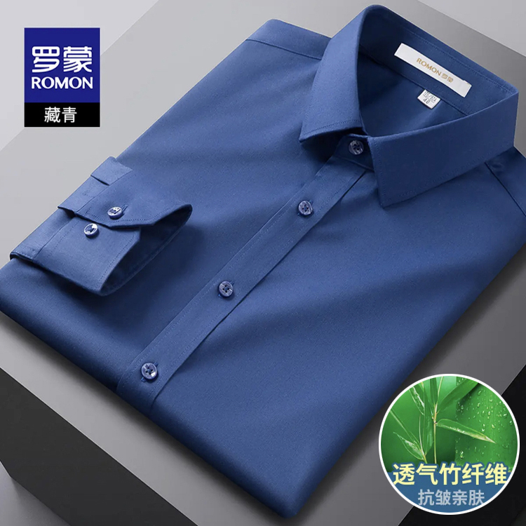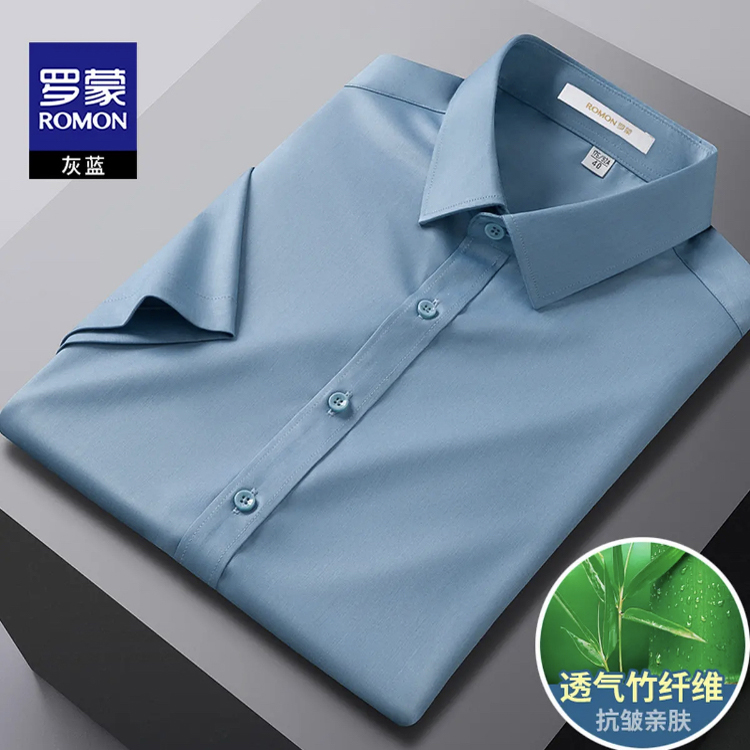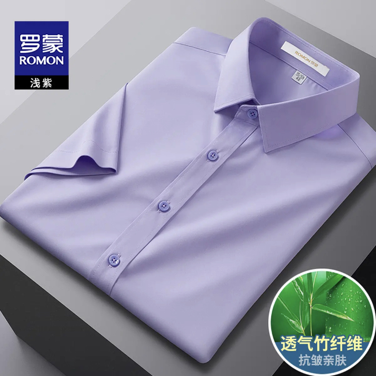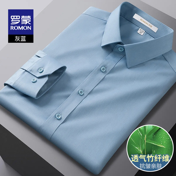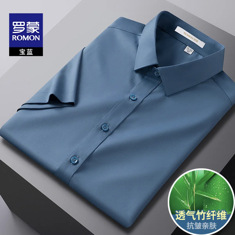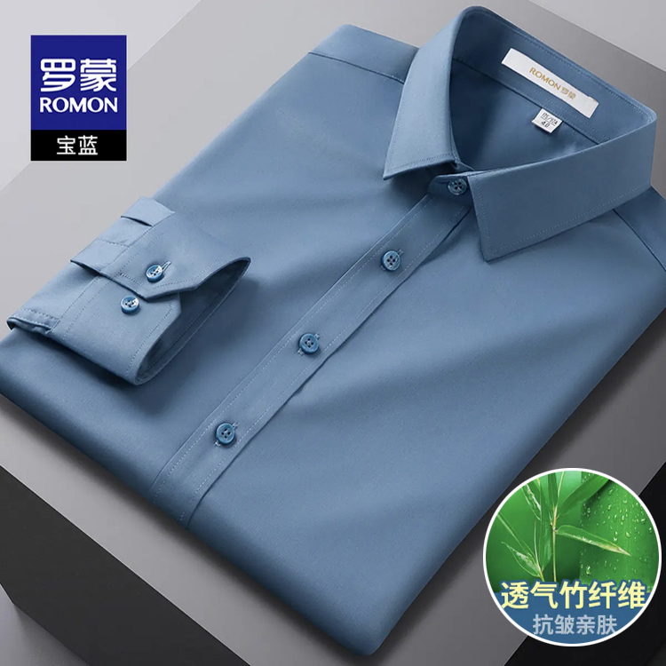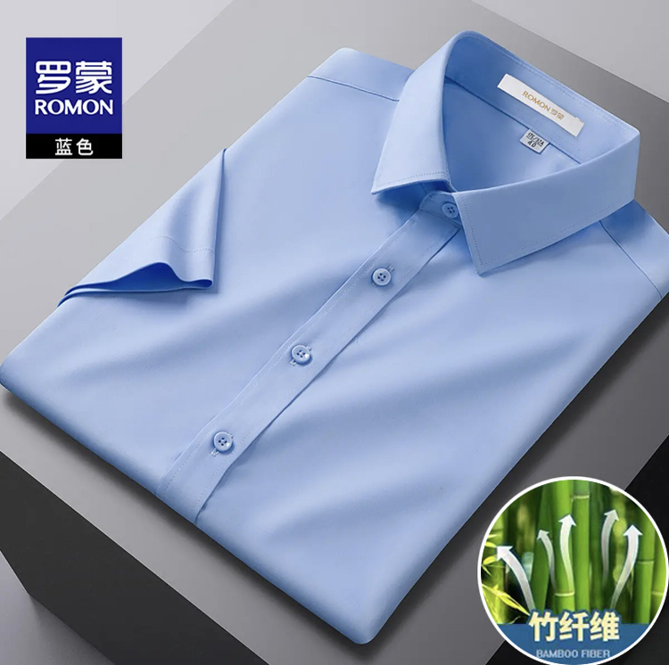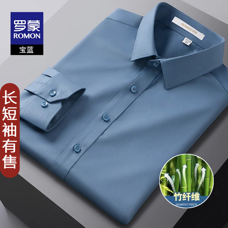 罗蒙免烫长袖衬衫男士商务休闲职业装薄款衬衣正装弹力短袖蓝白寸스토어 가기
