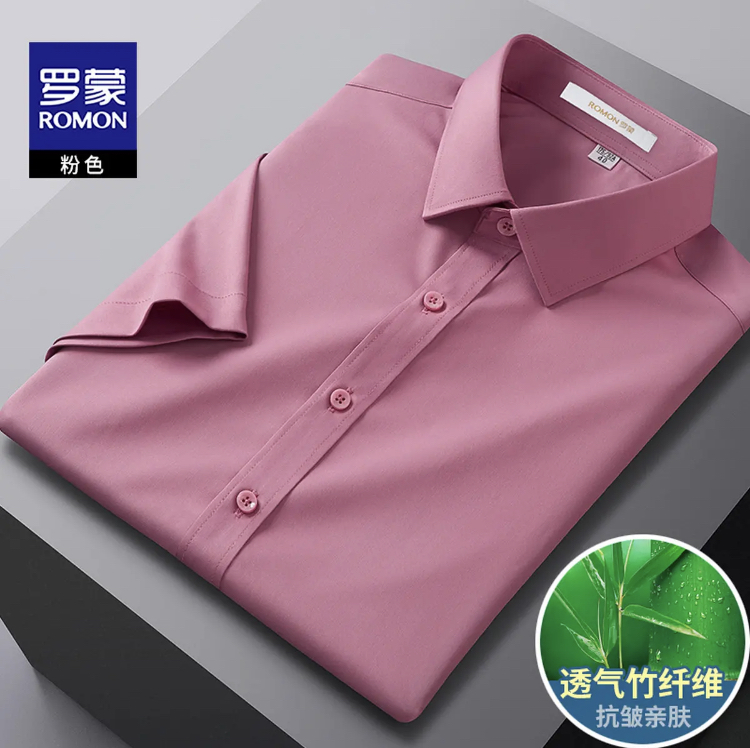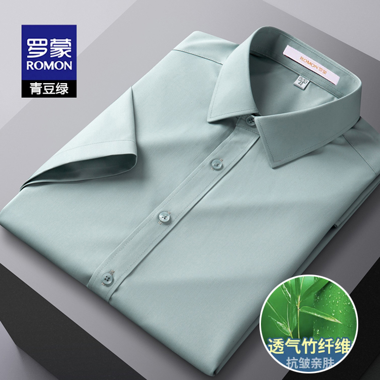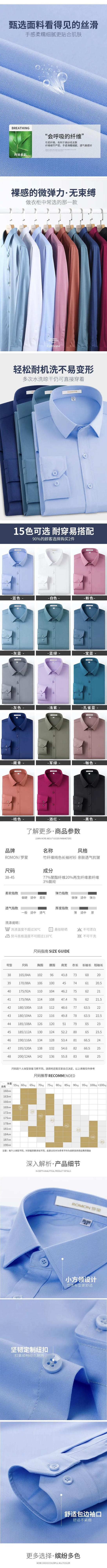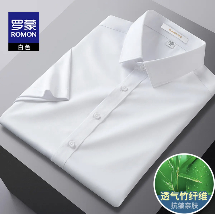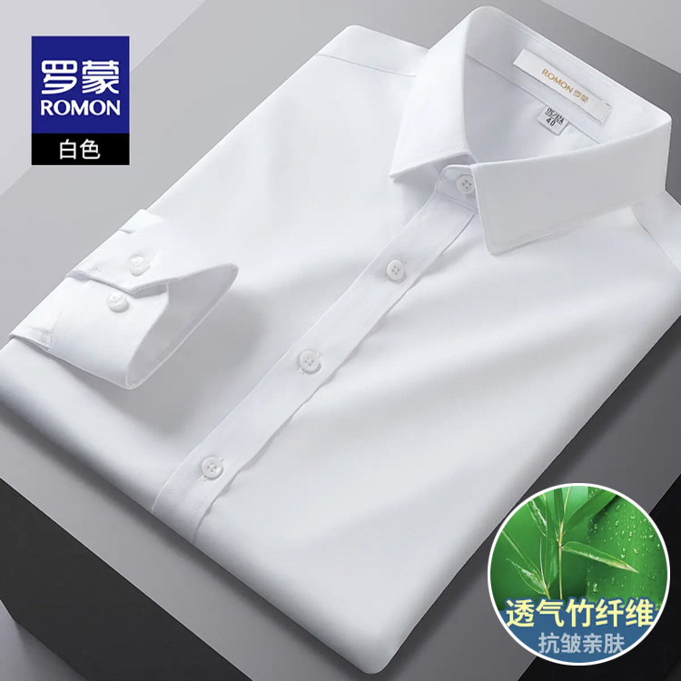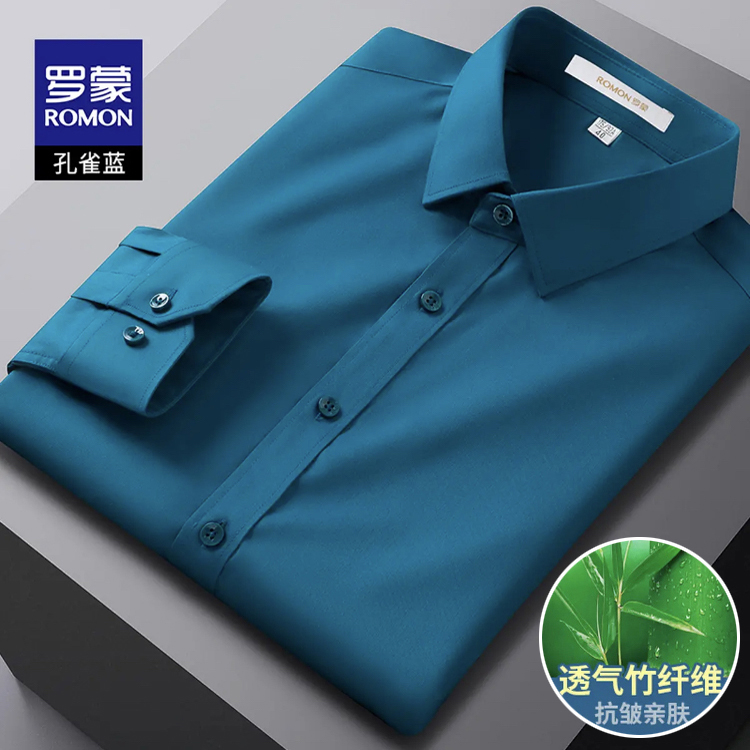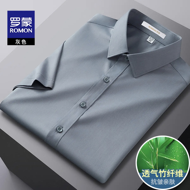 罗蒙免烫长袖衬衫男士商务休闲职业装薄款衬衣正装弹力短袖蓝白寸스토어 가기