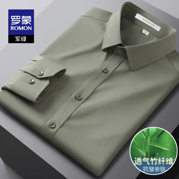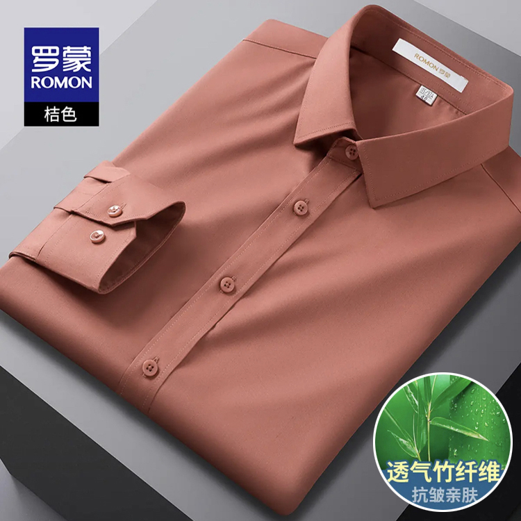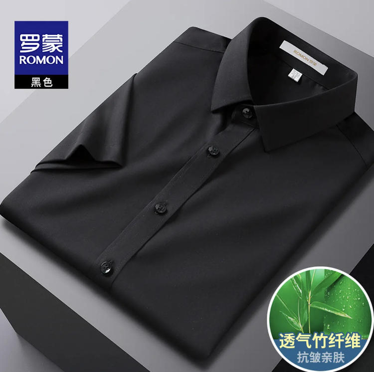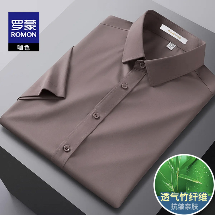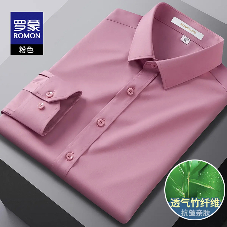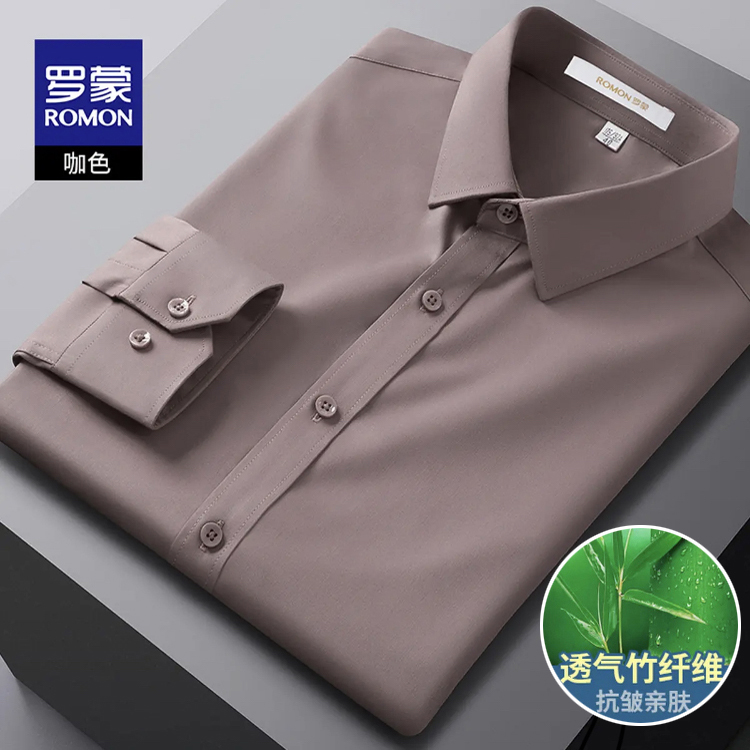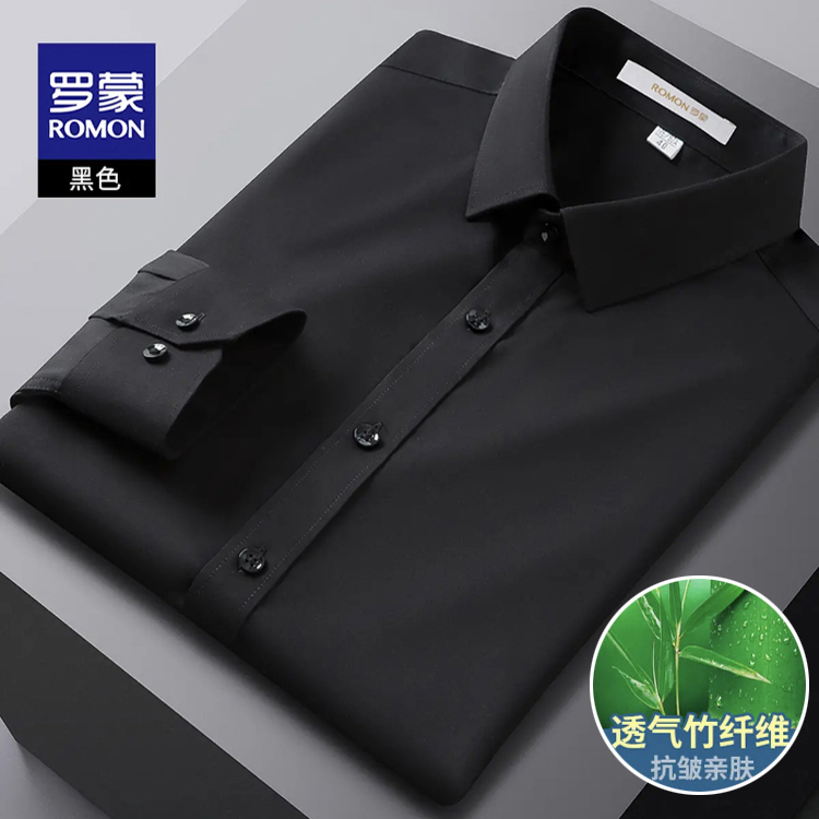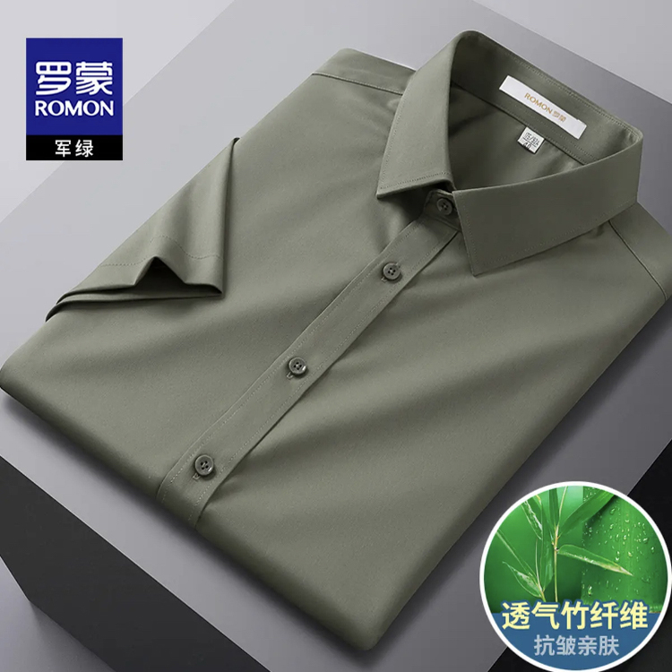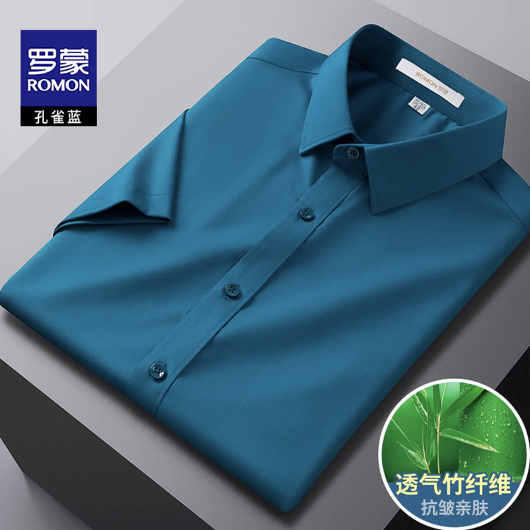 罗蒙免烫长袖衬衫男士商务休闲职业装薄款衬衣正装弹力短袖蓝白寸스토어 가기