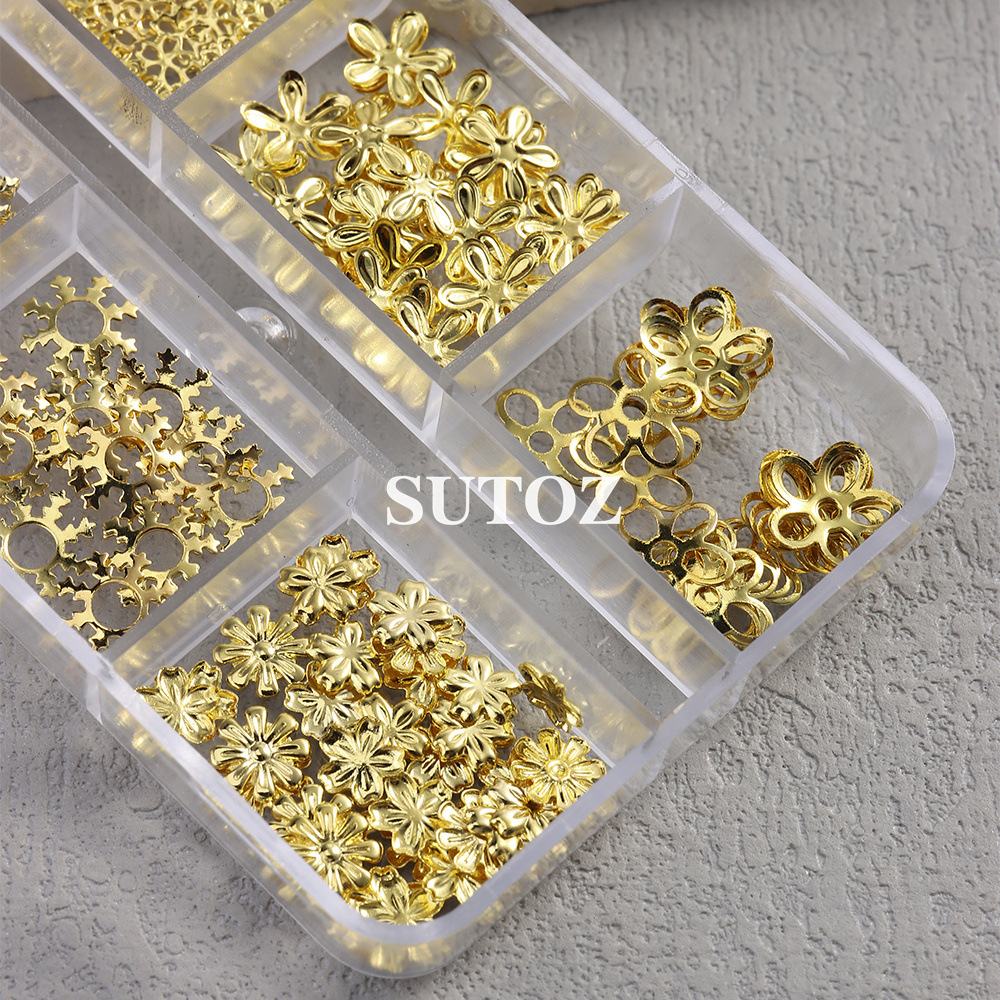 2025 철자 Xixi 새로운 네일 아트 쥬얼리 일본 빈티지 브론징 꽃 스테레오 네일 DIY 장식 액세서리스토어 가기