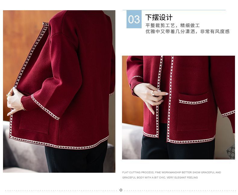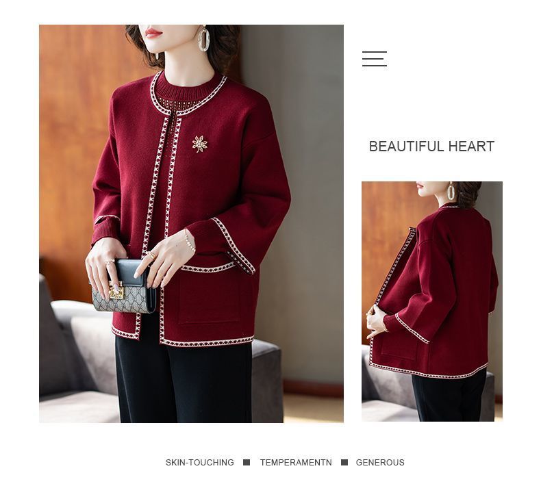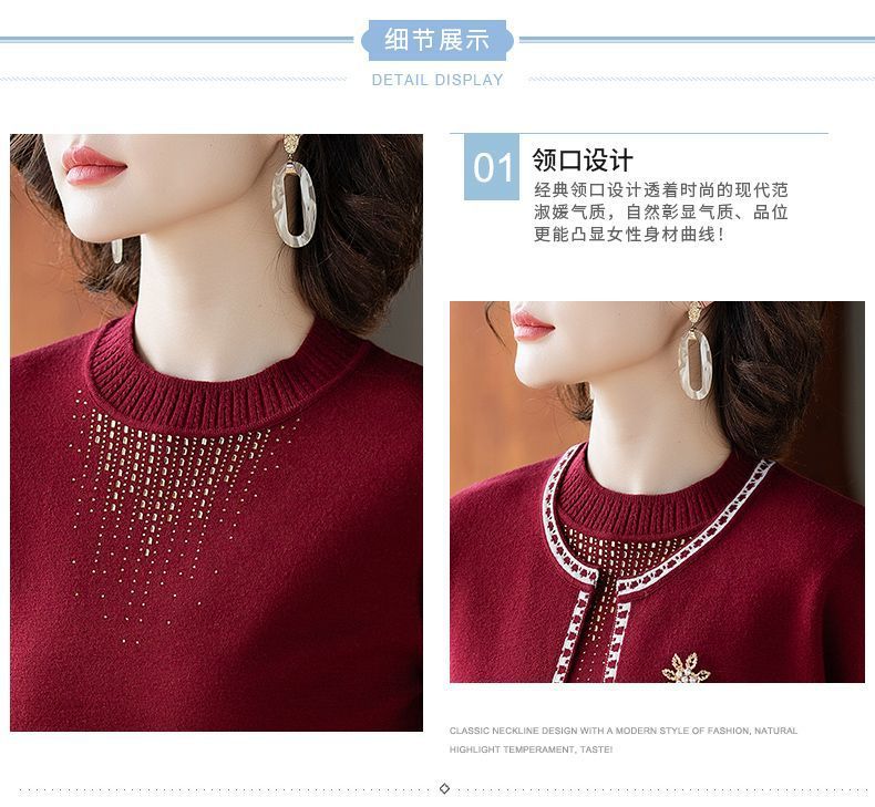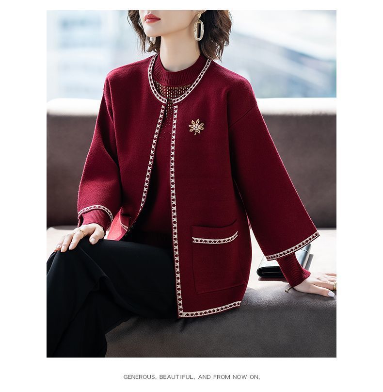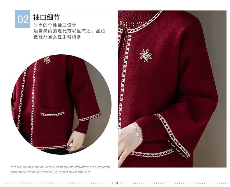 어머니의 가을 원피스 외국식 탑 투피스 세트 행복 한 시어머니 웨딩 세트 중년 및 노인 봄 및 가을 여성용 니트 카디건 재킷스토어 가기