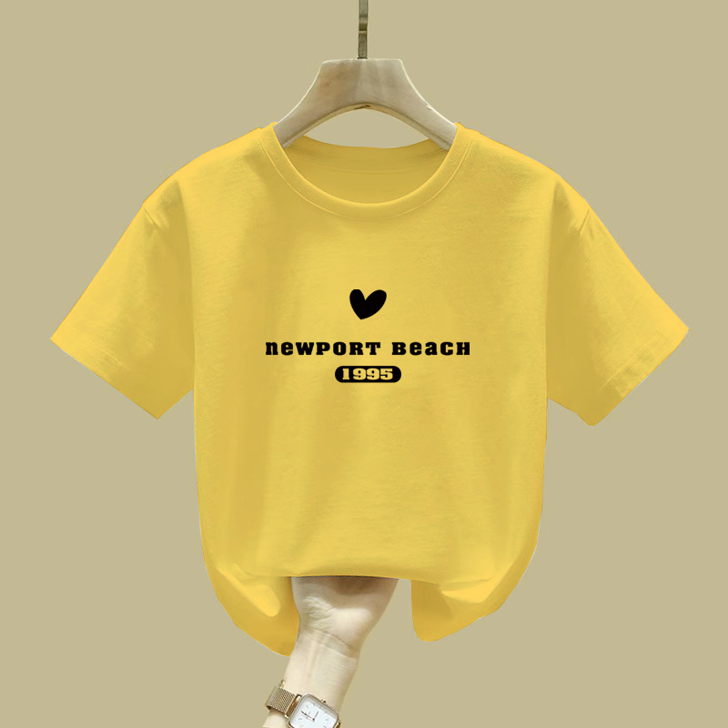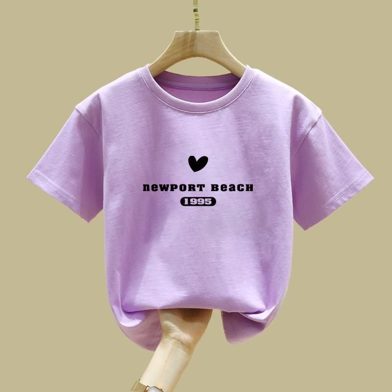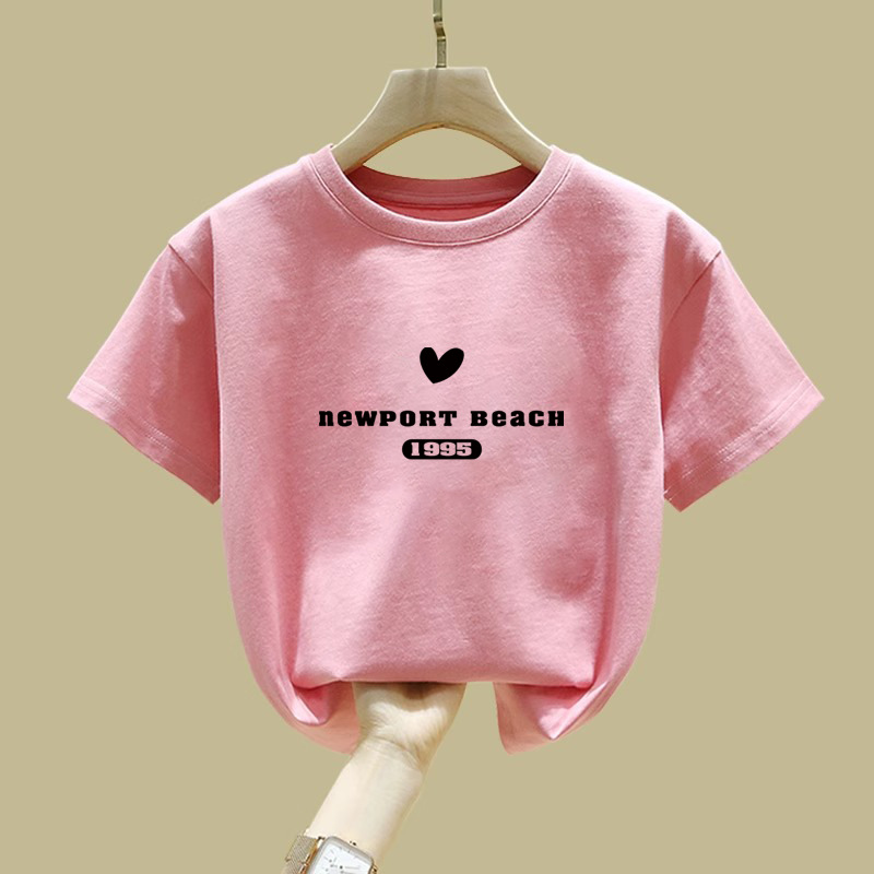 2063 # 어린이 캐주얼 티셔츠 소녀 서양식 탑 큰 아동복 짧은 소매베이스 셔츠 소녀 2025 봄 새로운 스타일스토어 가기