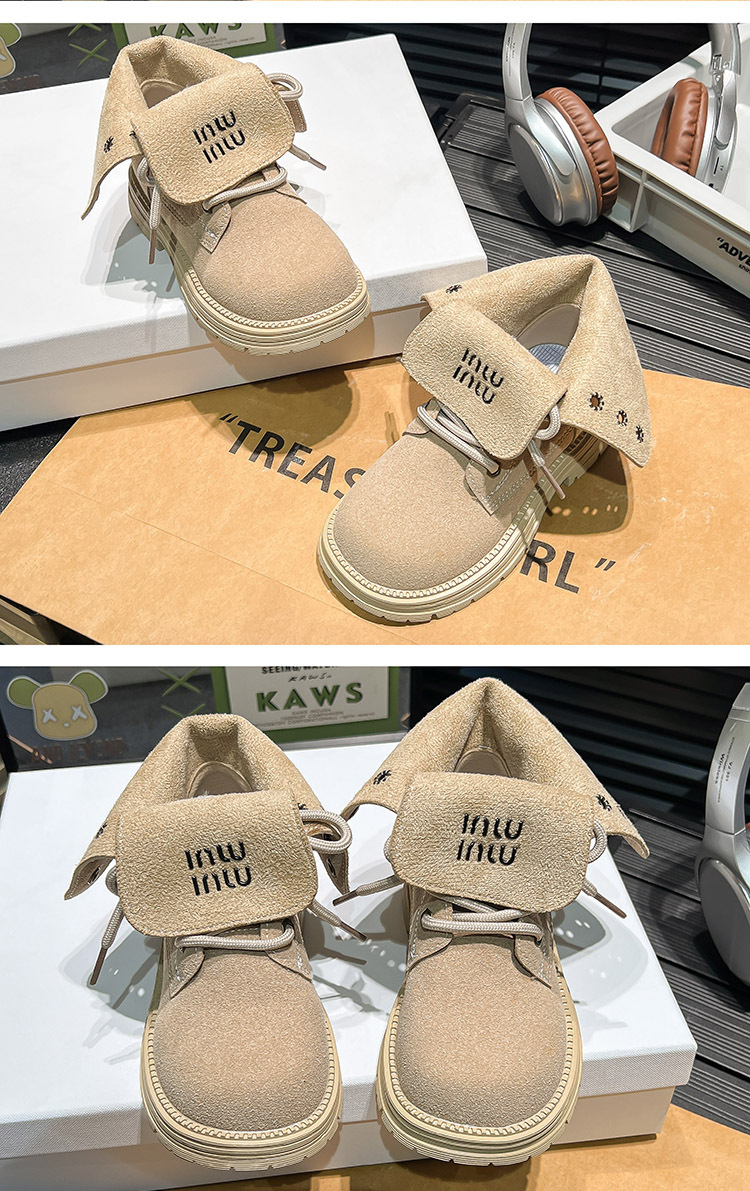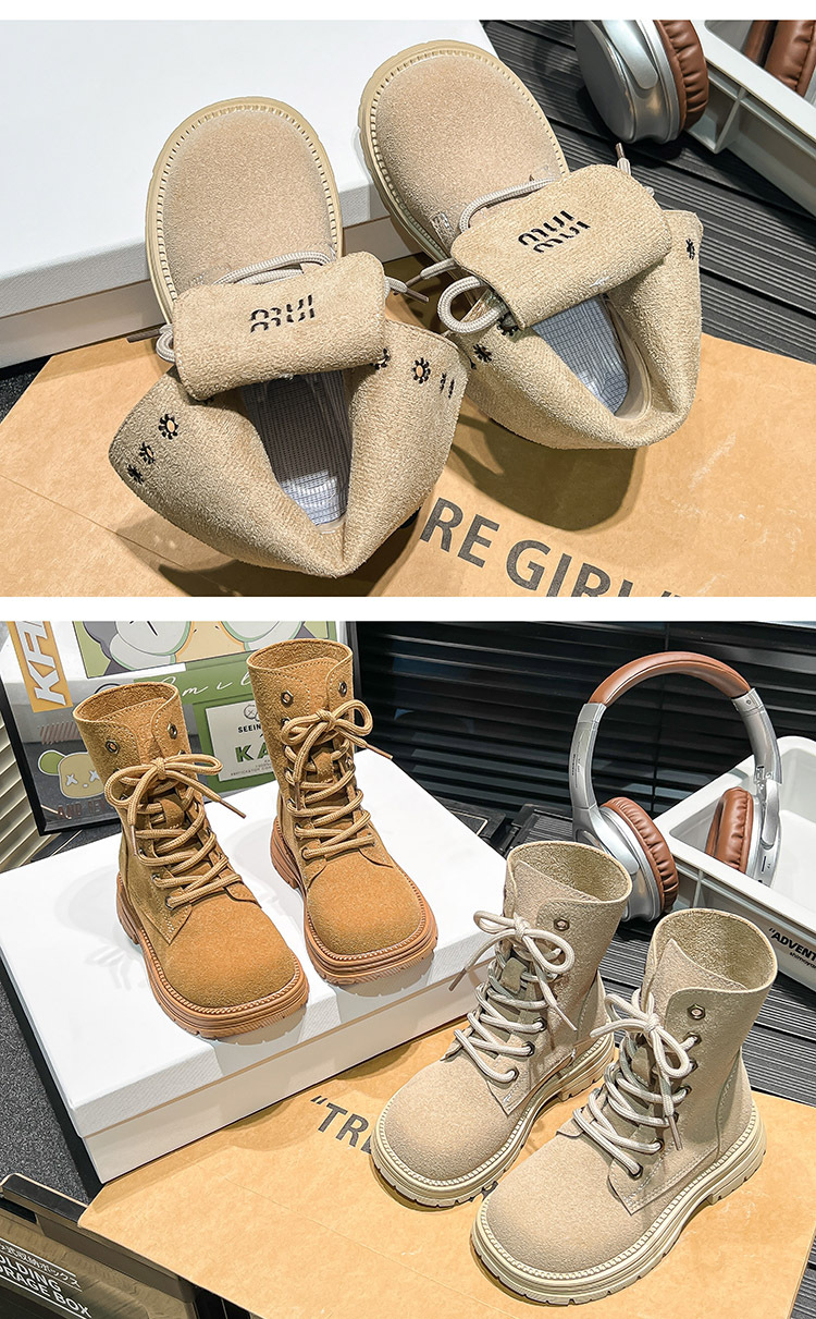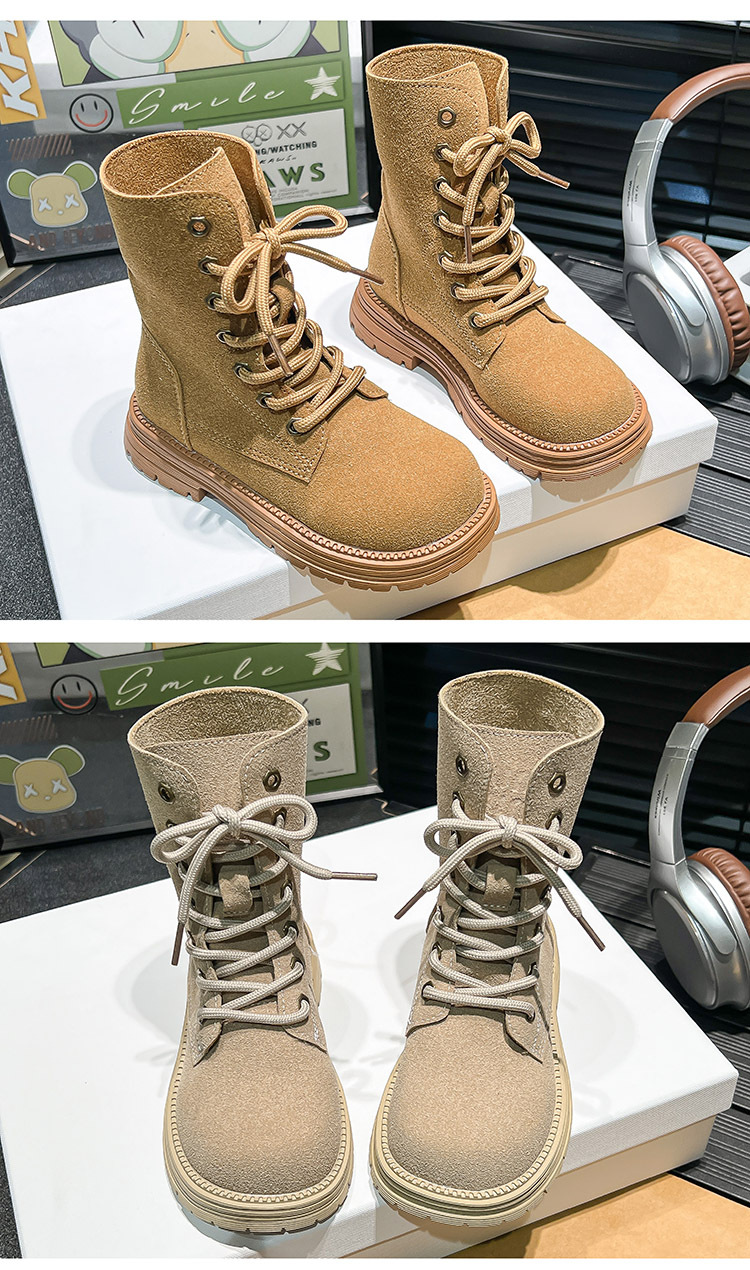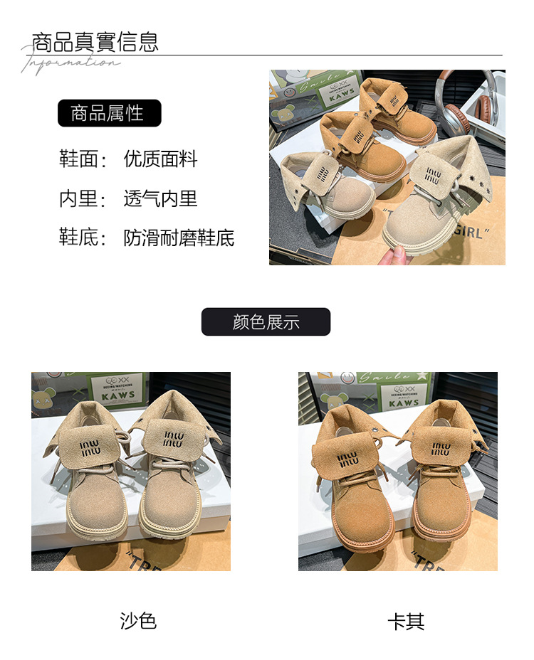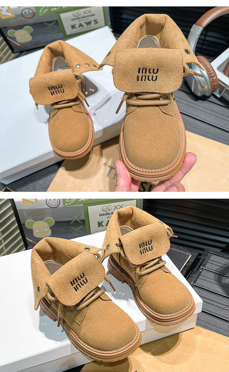 2025 봄과 가을 새로운 서리 빈티지 마틴 플립 커버 봄과 가을 소녀 소년 어린이 두꺼운 바닥 랩 발목 부츠 대황스토어 가기