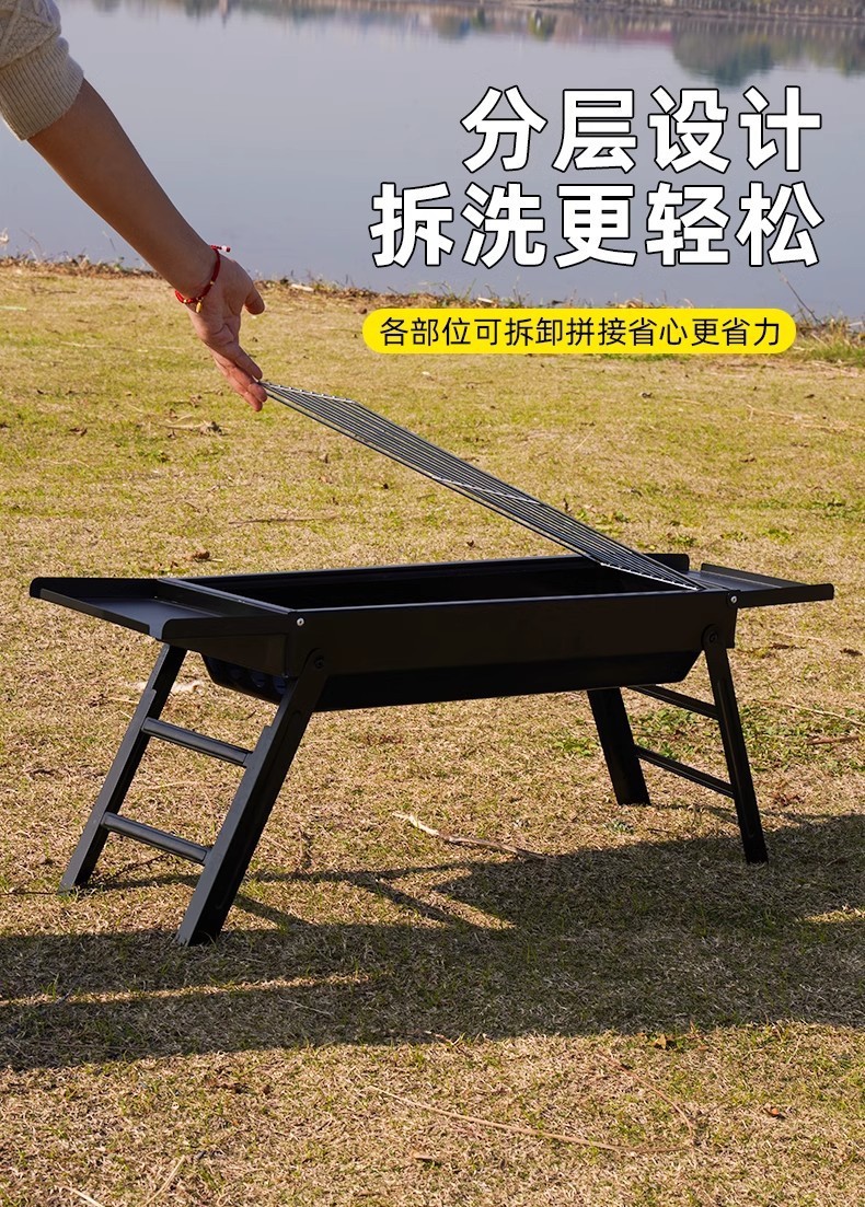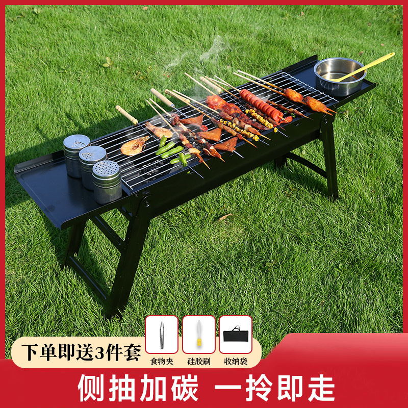 BBQ 그릴 야외 휴대용 가정용 숯 바베큐 접이식 폭 넓은 오븐 캠핑 바베큐 도구 풀 세트스토어 가기