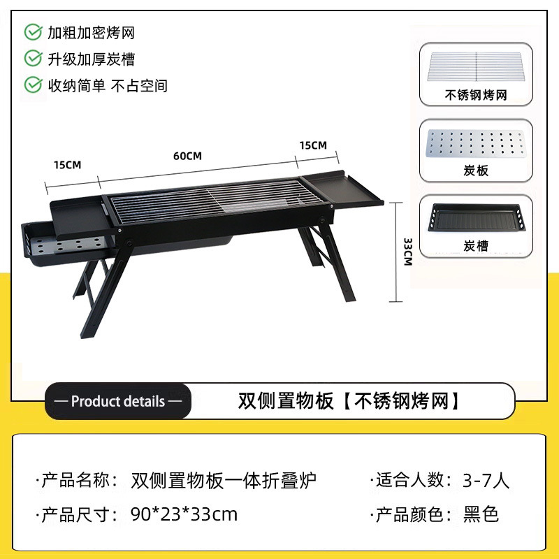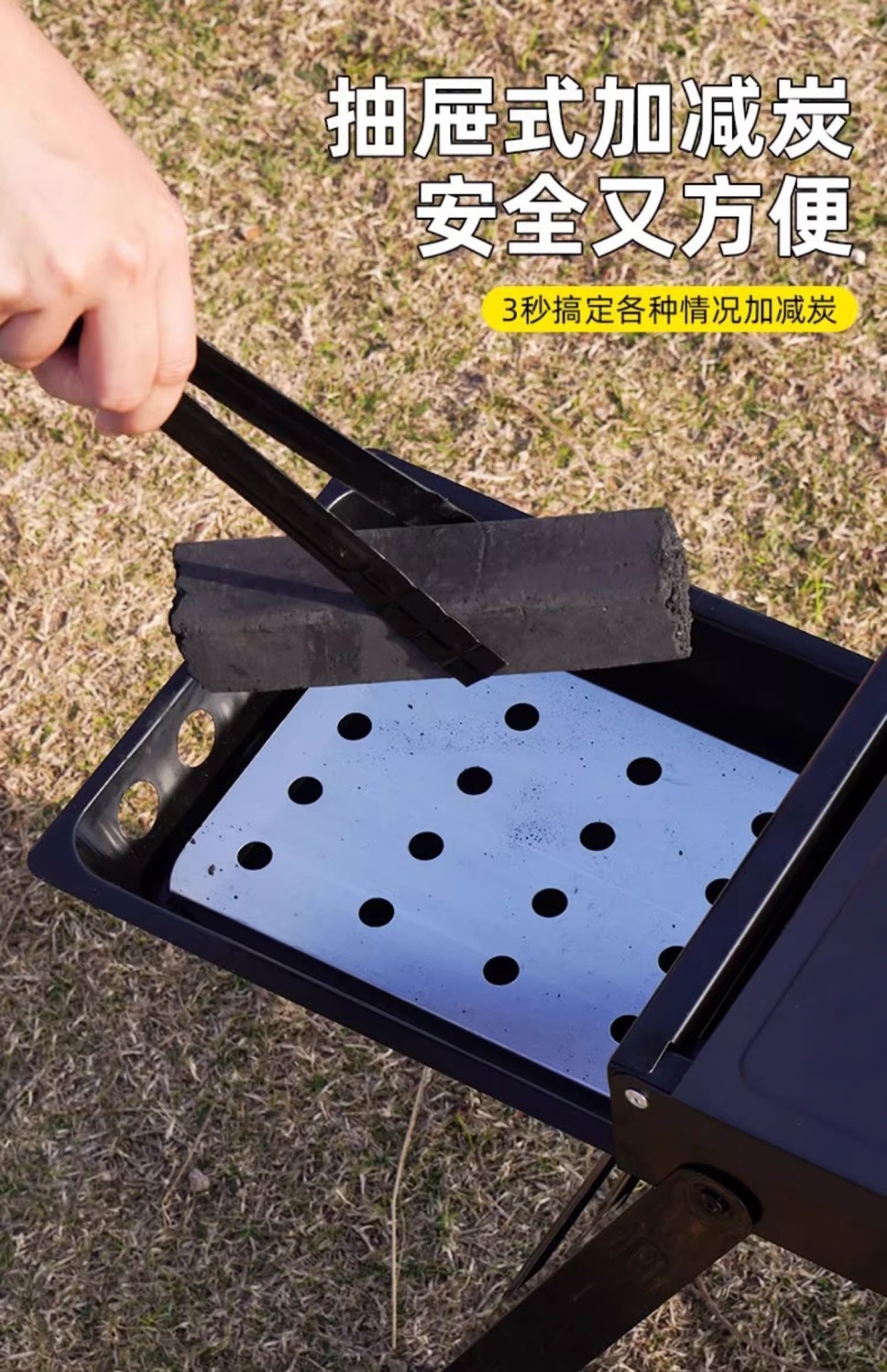 • 확장형 서랍형 바비큐 그릴 [업그레이드된 스테인레스 메쉬] - 구성 (수납가방 + 푸드클립 + 실리콘 브러쉬) + 죽탄 2.5kg