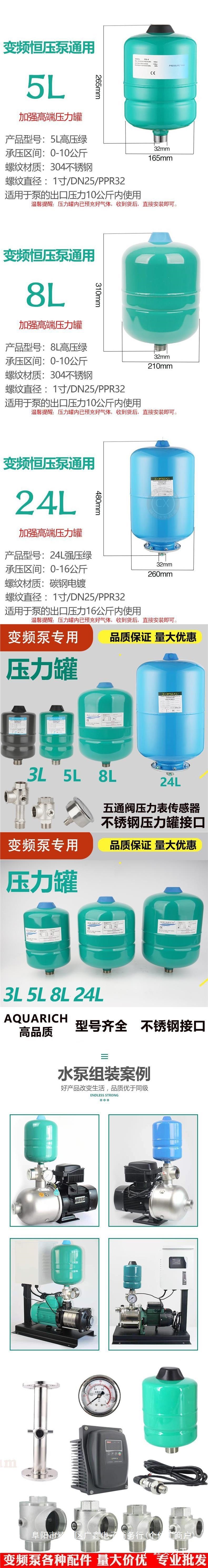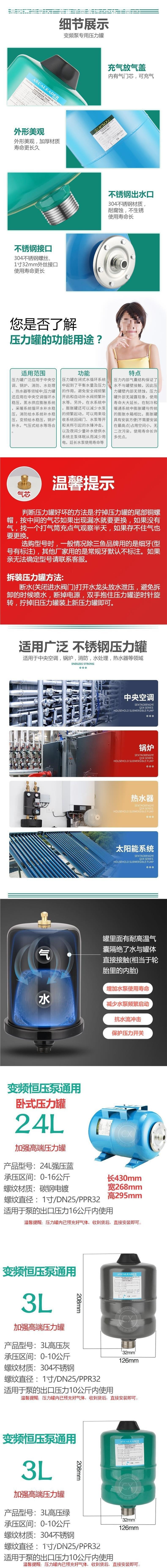 다이어프램 워터 펌프 공기 압력 탱크 고압 탱크 확장 3L5L8L24L 부스터 펌프 탱크 가변 주파수 펌프 액세서리스토어 가기
