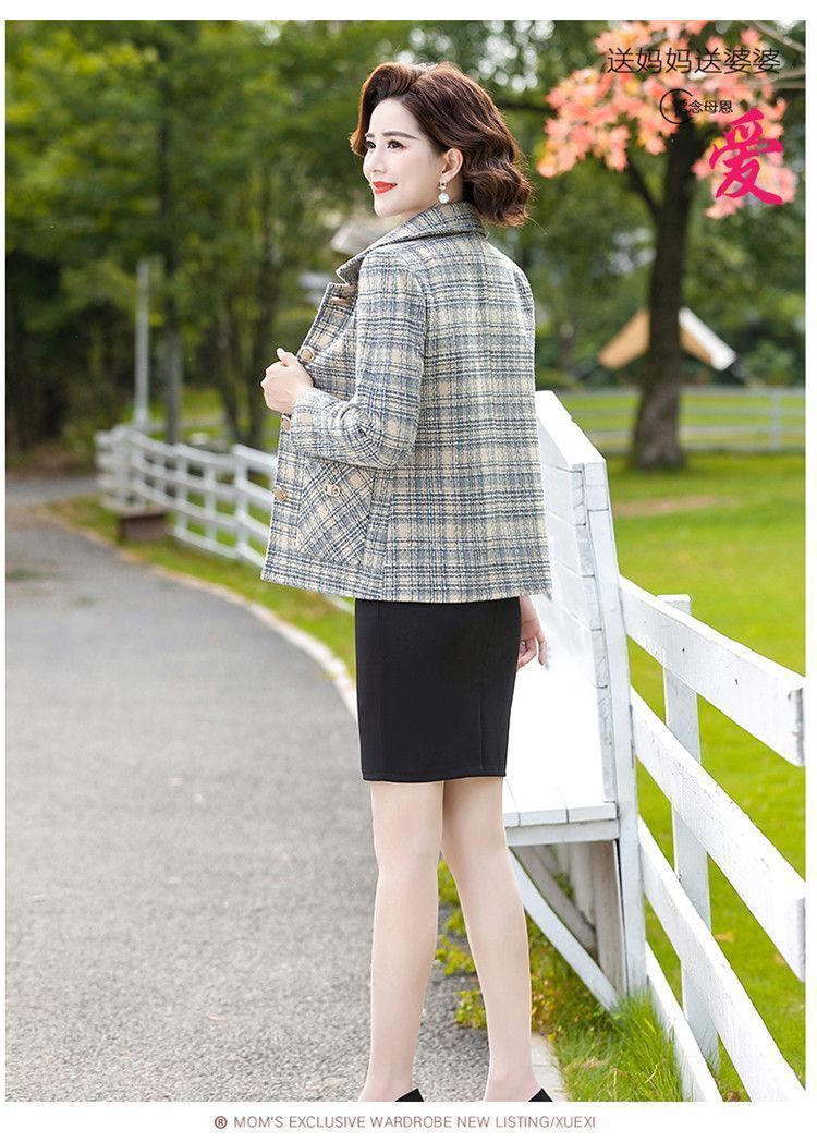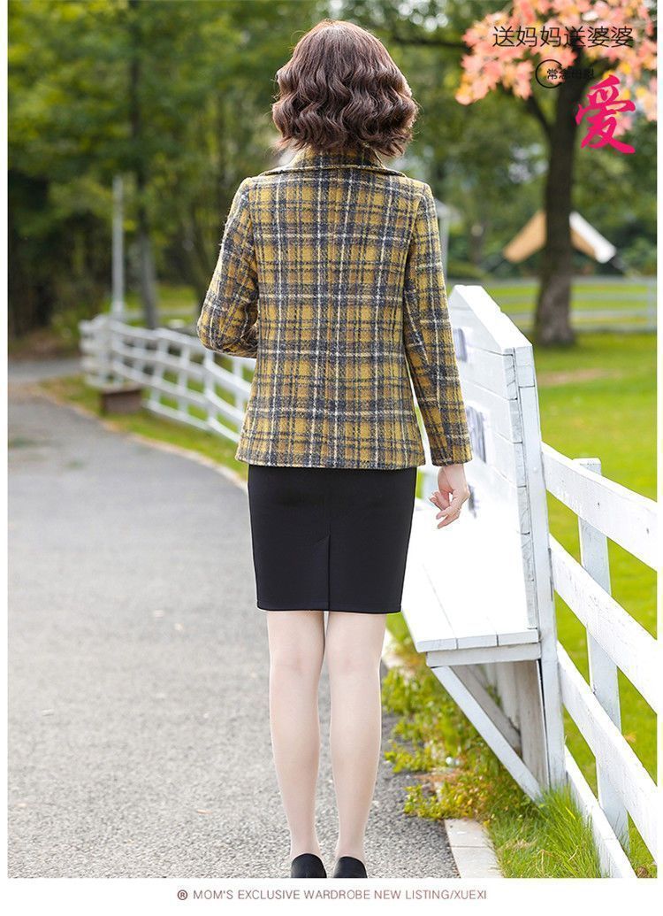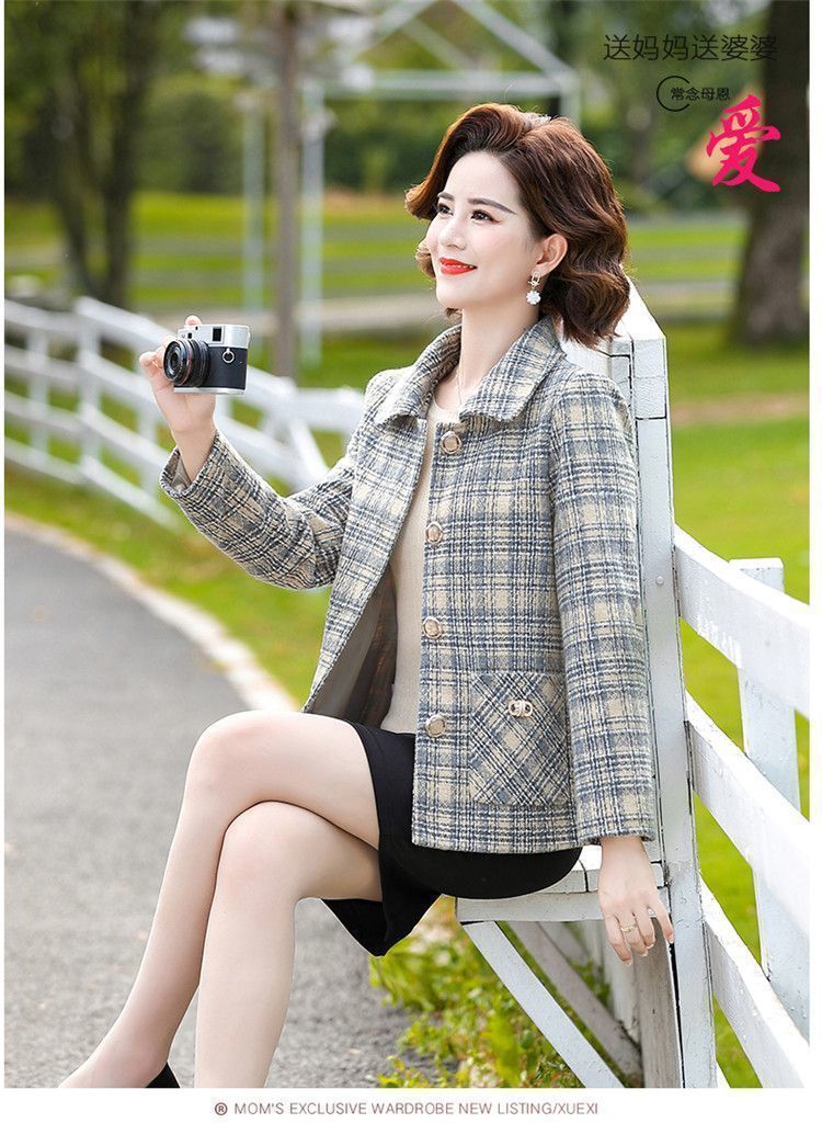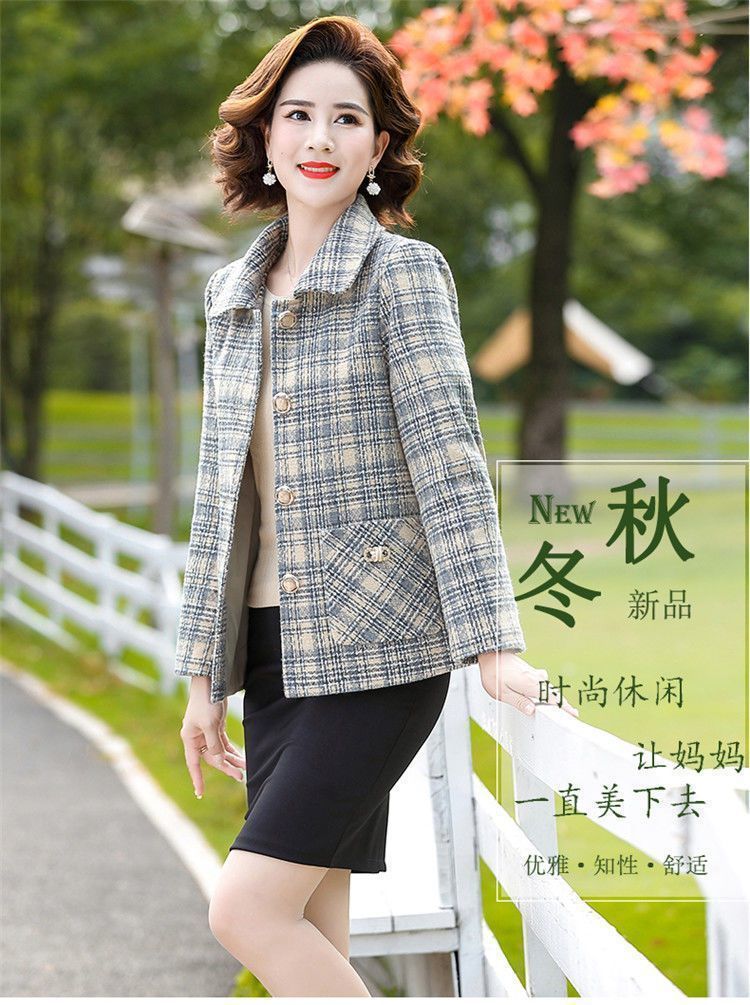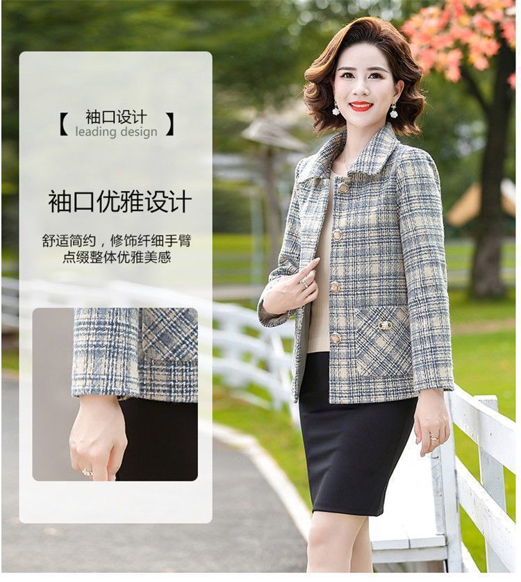 봄과 가을 새 어머니의 고급 모직 재킷 유행 중년 및 노인 여성 연령 감소 플러스 사이즈 격자 무늬 세트 탑스토어 가기