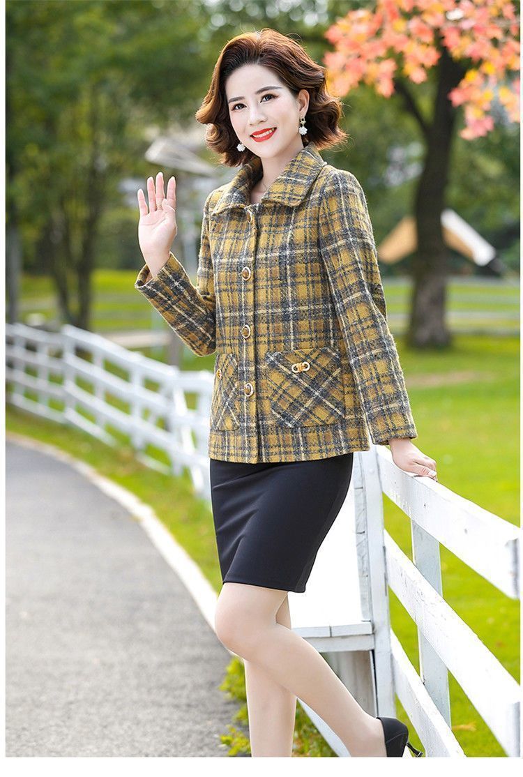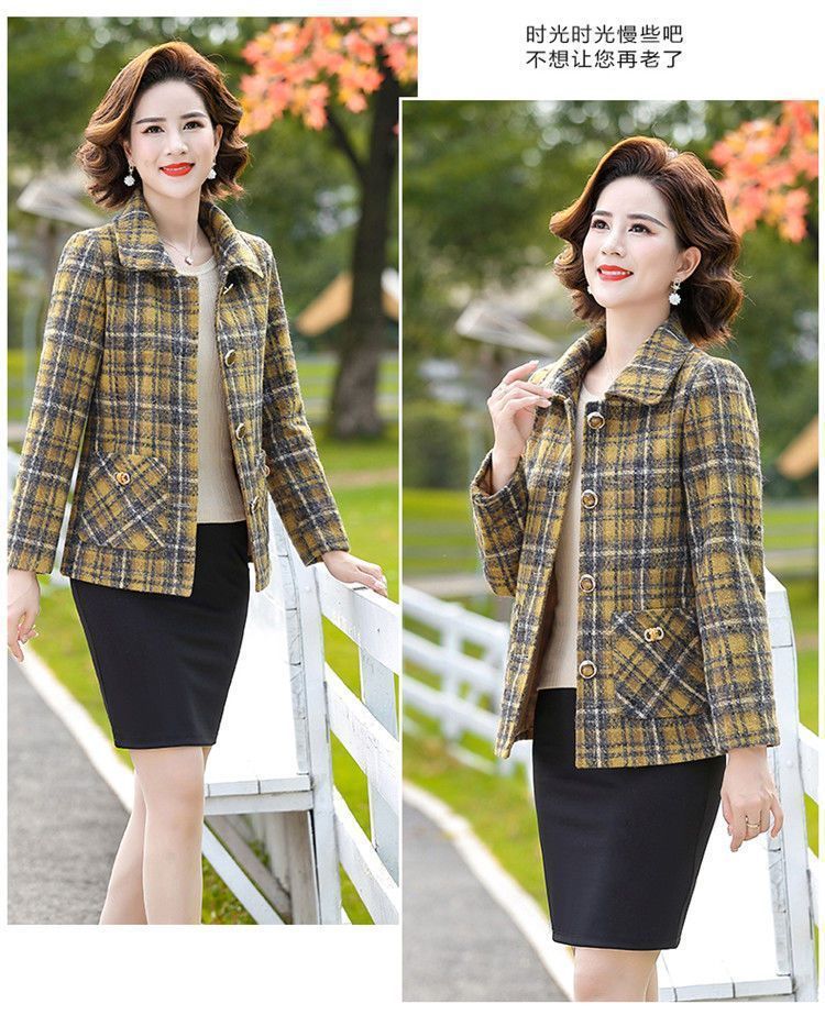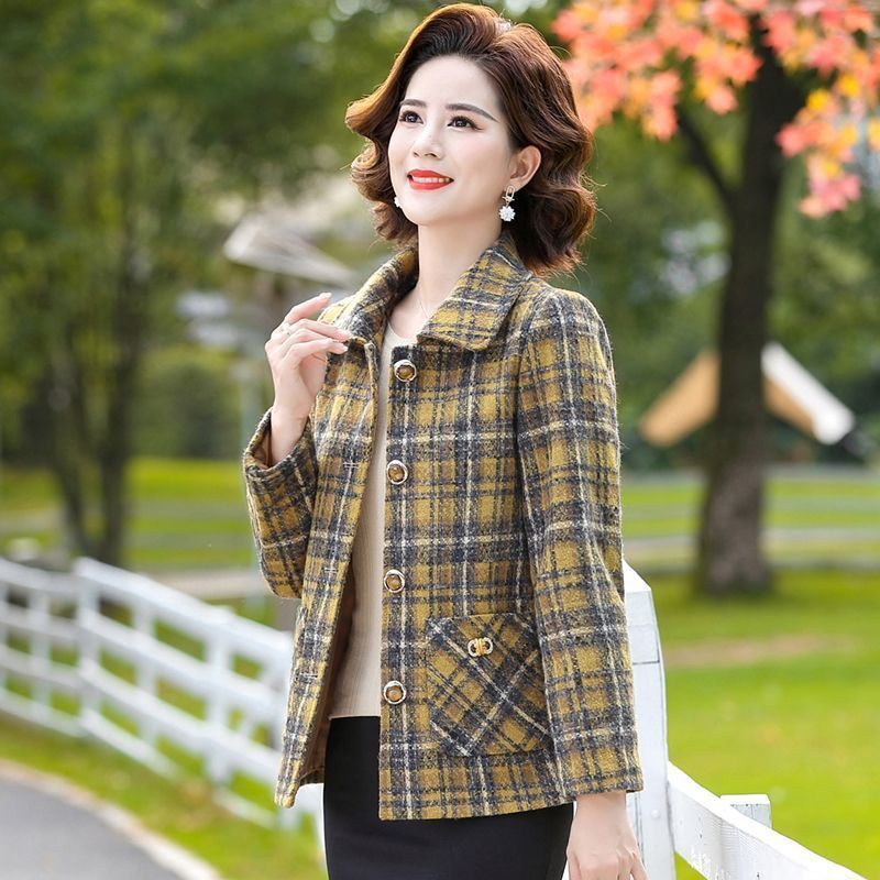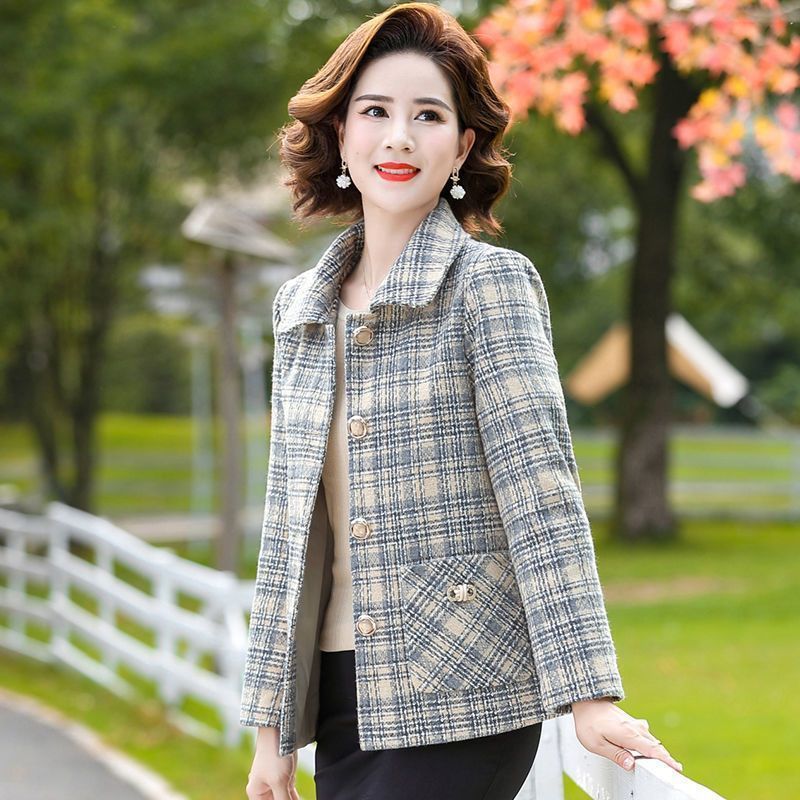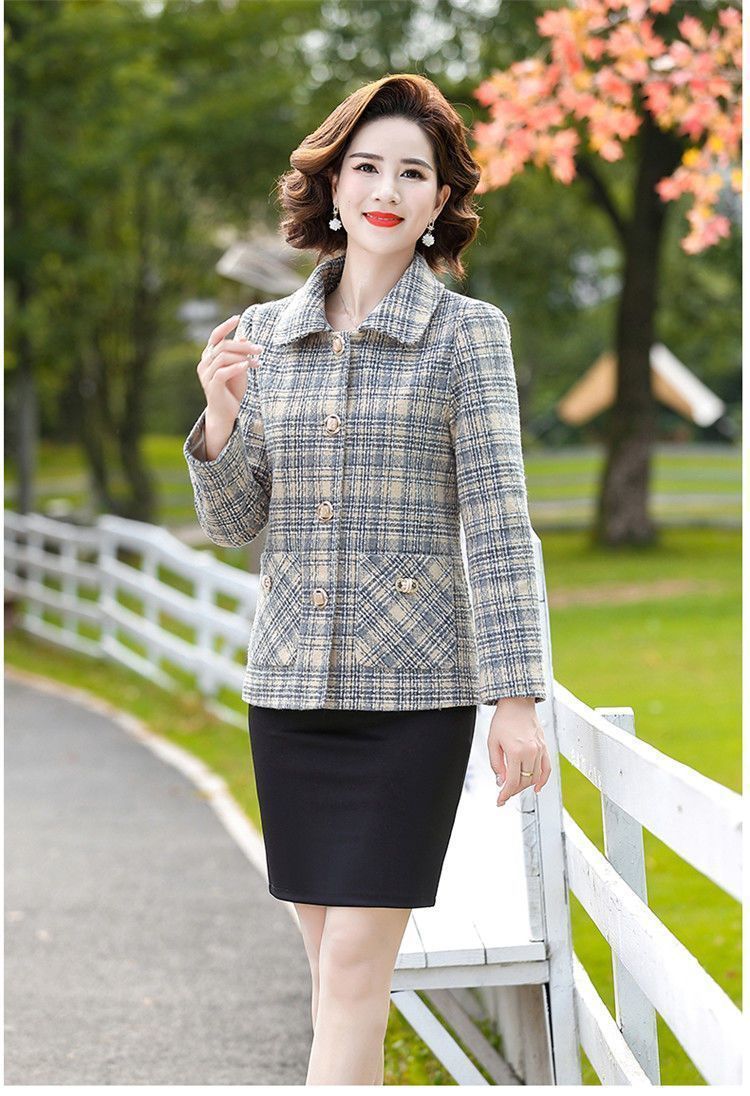 봄과 가을 새 어머니의 고급 모직 재킷 유행 중년 및 노인 여성 연령 감소 플러스 사이즈 격자 무늬 세트 탑스토어 가기