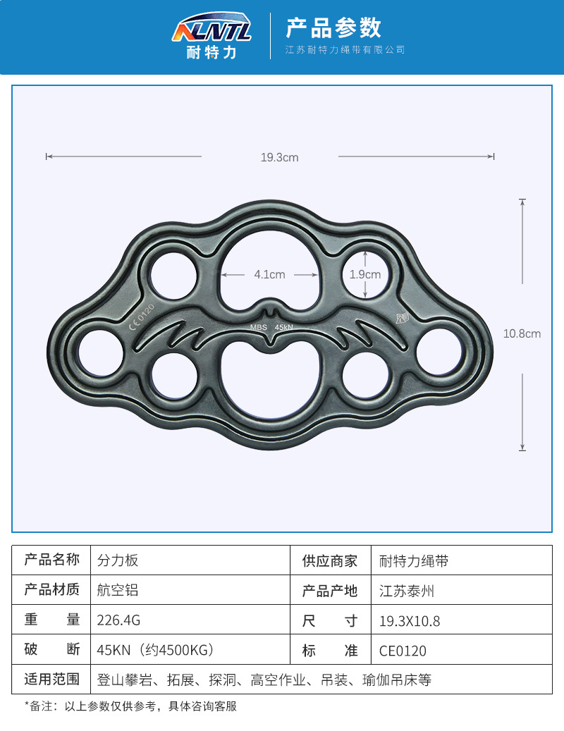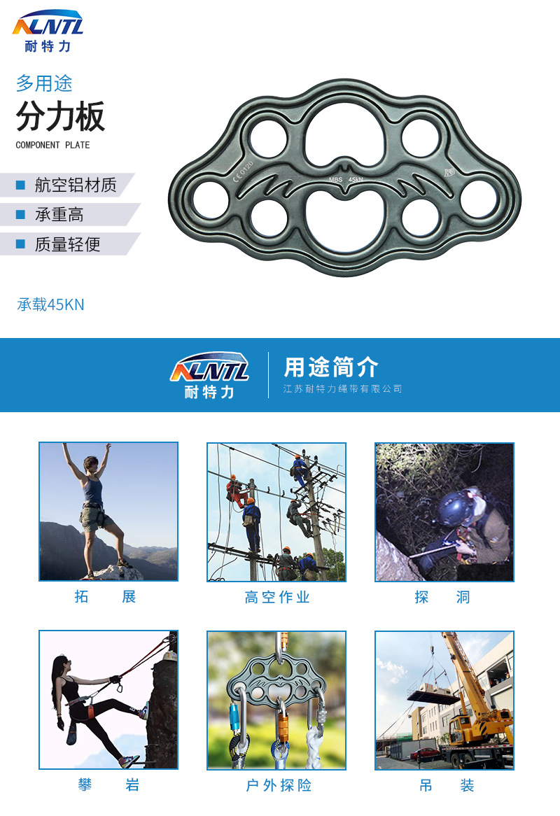 등산 및 암벽 등반 8 홀 포스 스플릿 플레이트 항공 알루미늄 45KN 앵커 8 홀 핑거 플레이트 공중 작업 로프 분할 장비