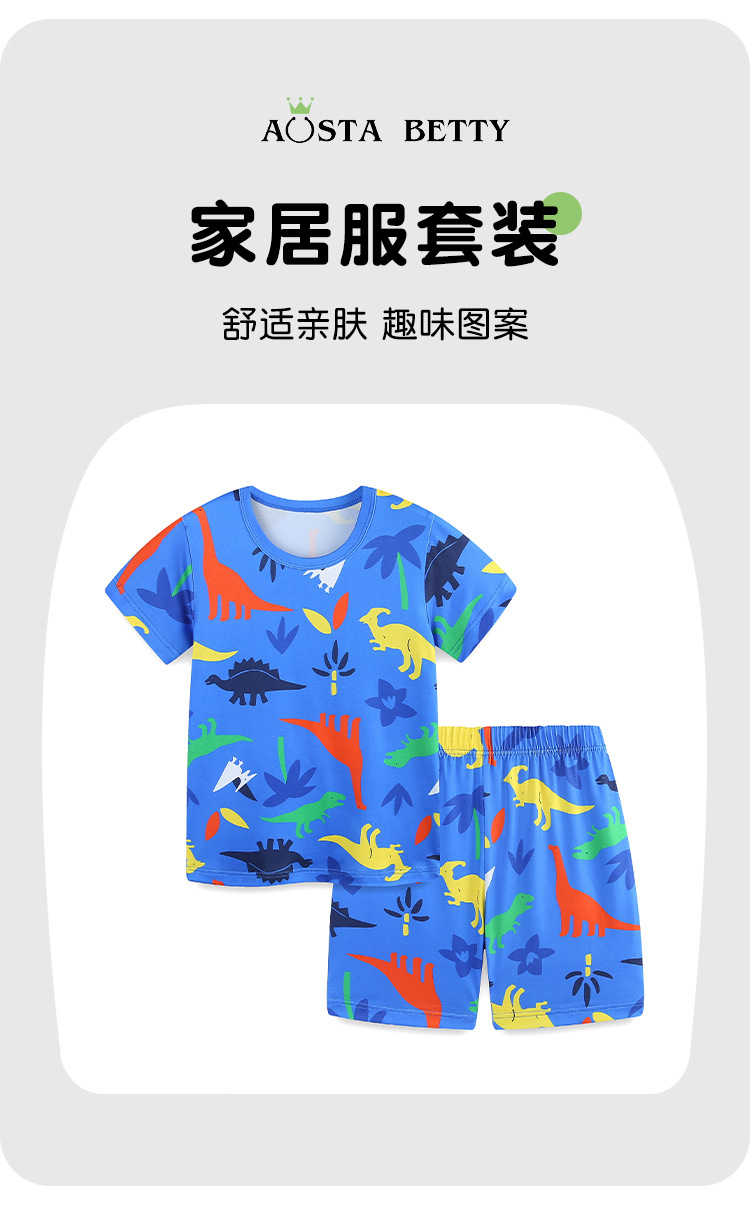 AostaBetty 유럽과 미국 스타일 라운드 넥 캐주얼 소년 반팔 세트 여름 새 어린이 집 옷 투피스 세트스토어 가기