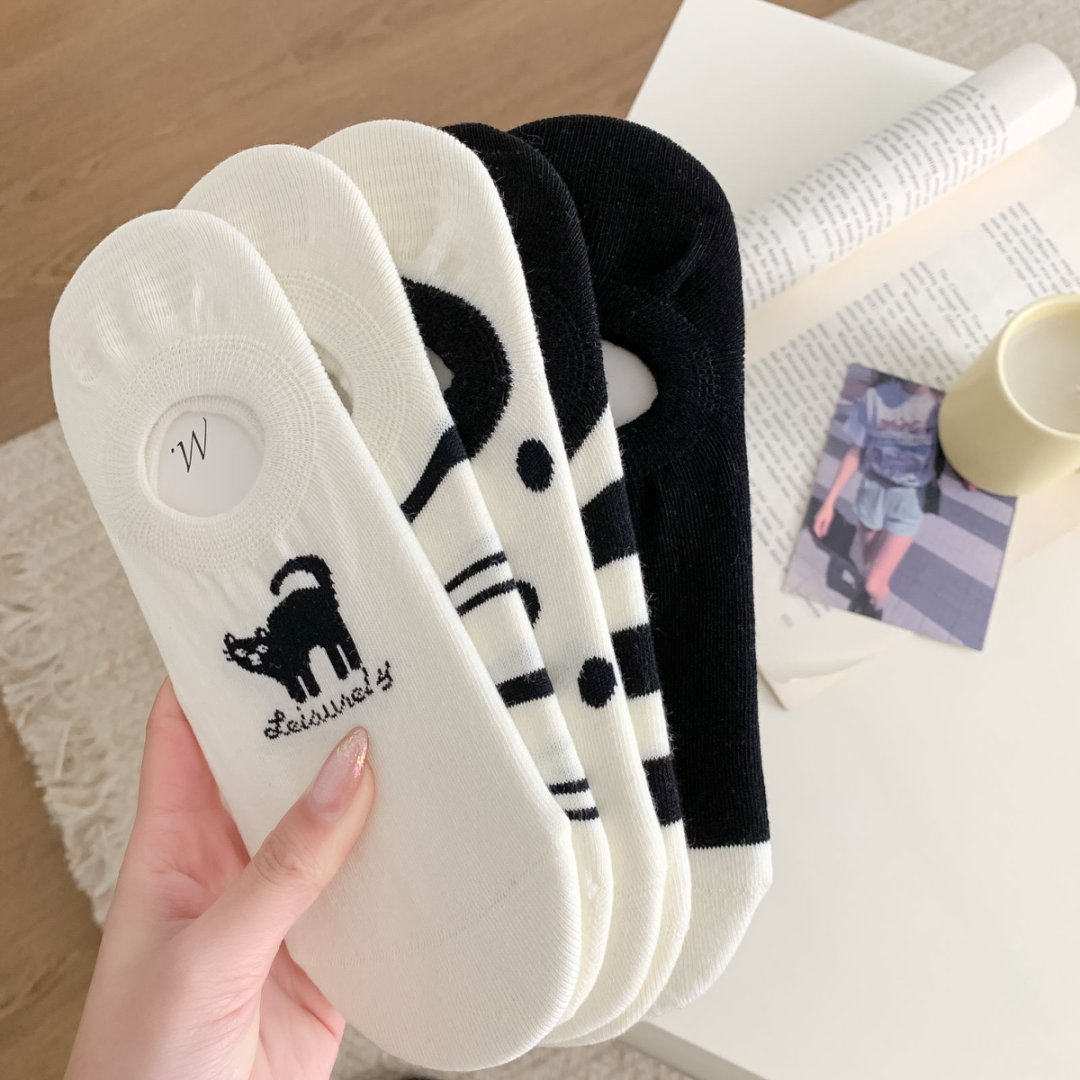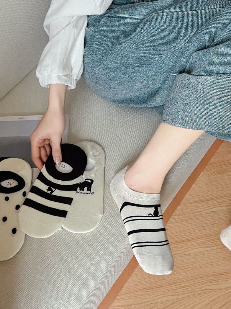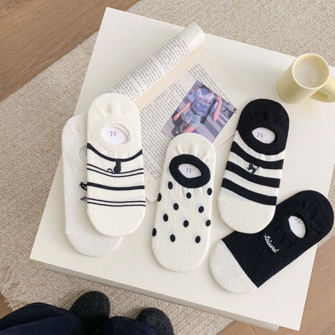 메키 봄 여름 보트 양말 통기성 얇은 보이지 않는 여성 양말 귀여운 줄무늬 폴카 도트 고급스러운 캐주얼 얕은 입스토어 가기