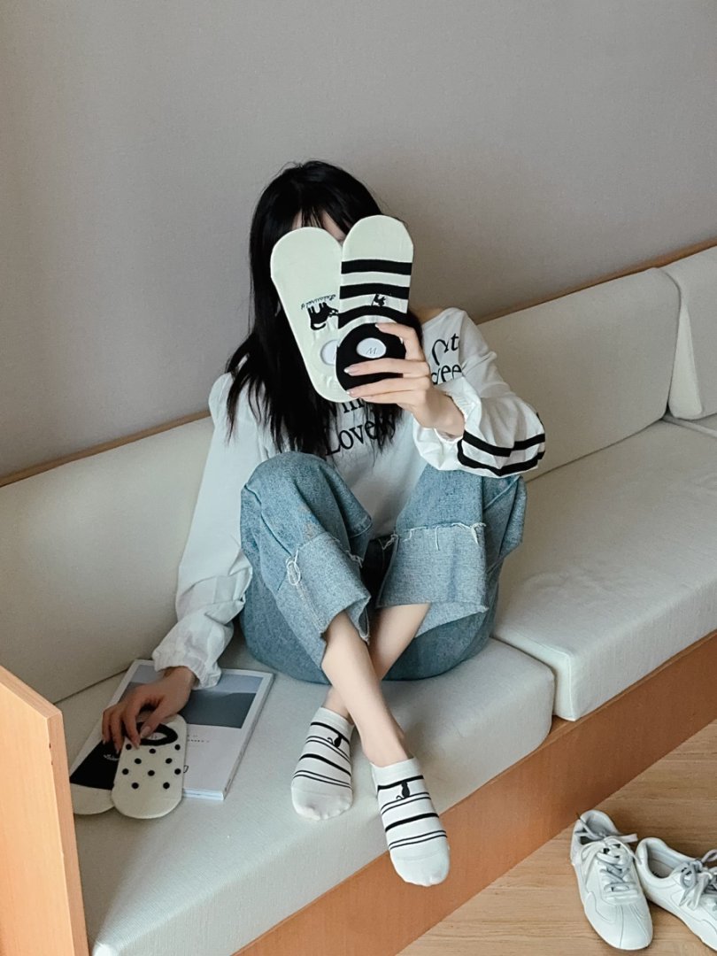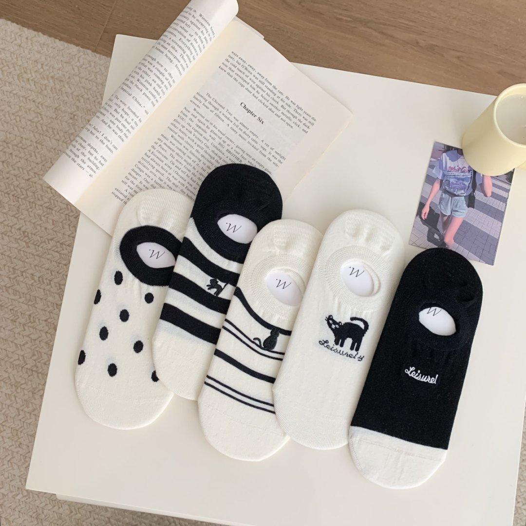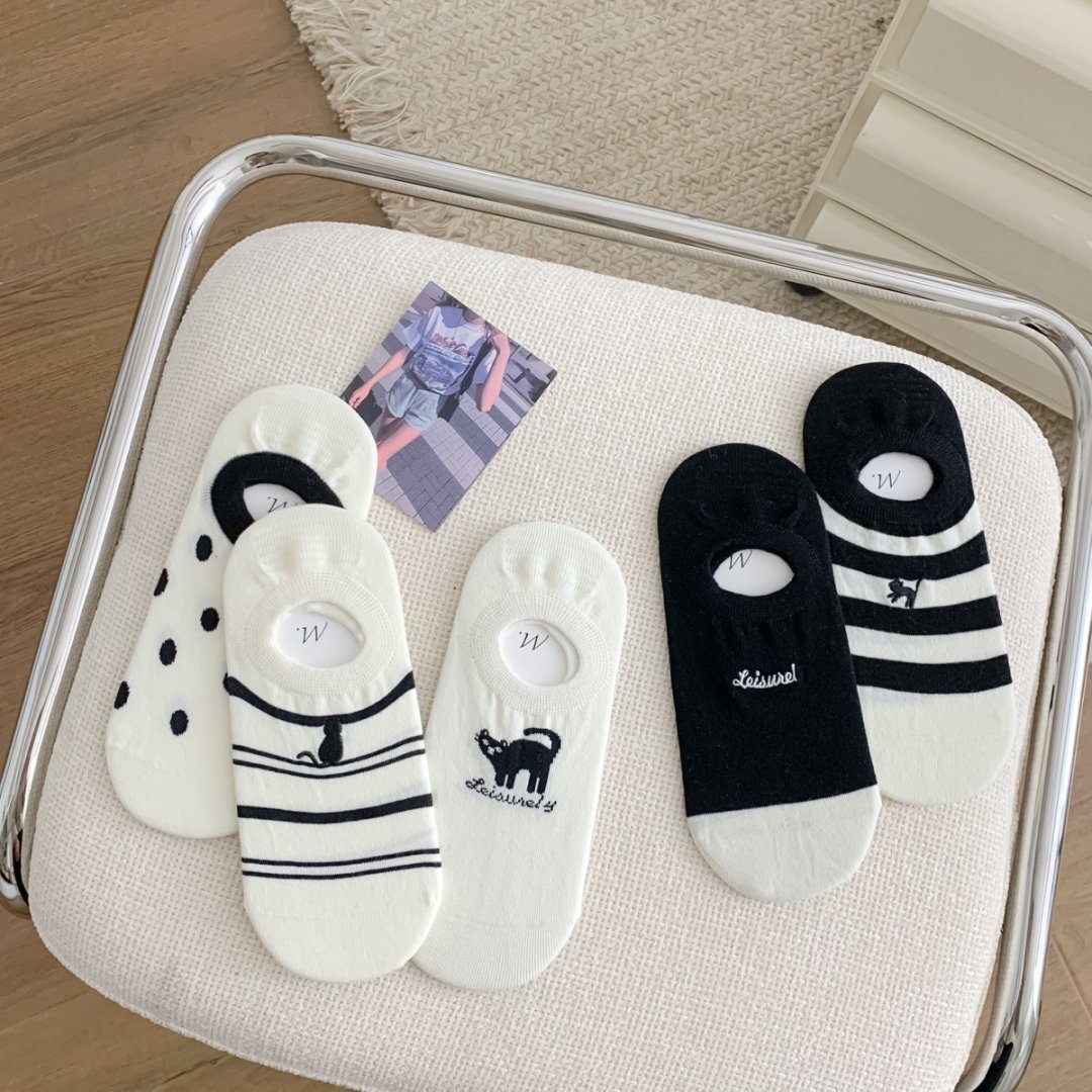 메키 봄 여름 보트 양말 통기성 얇은 보이지 않는 여성 양말 귀여운 줄무늬 폴카 도트 고급스러운 캐주얼 얕은 입스토어 가기