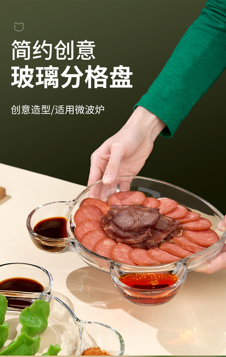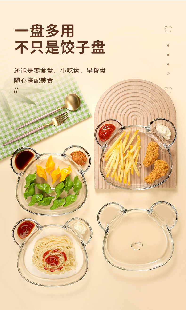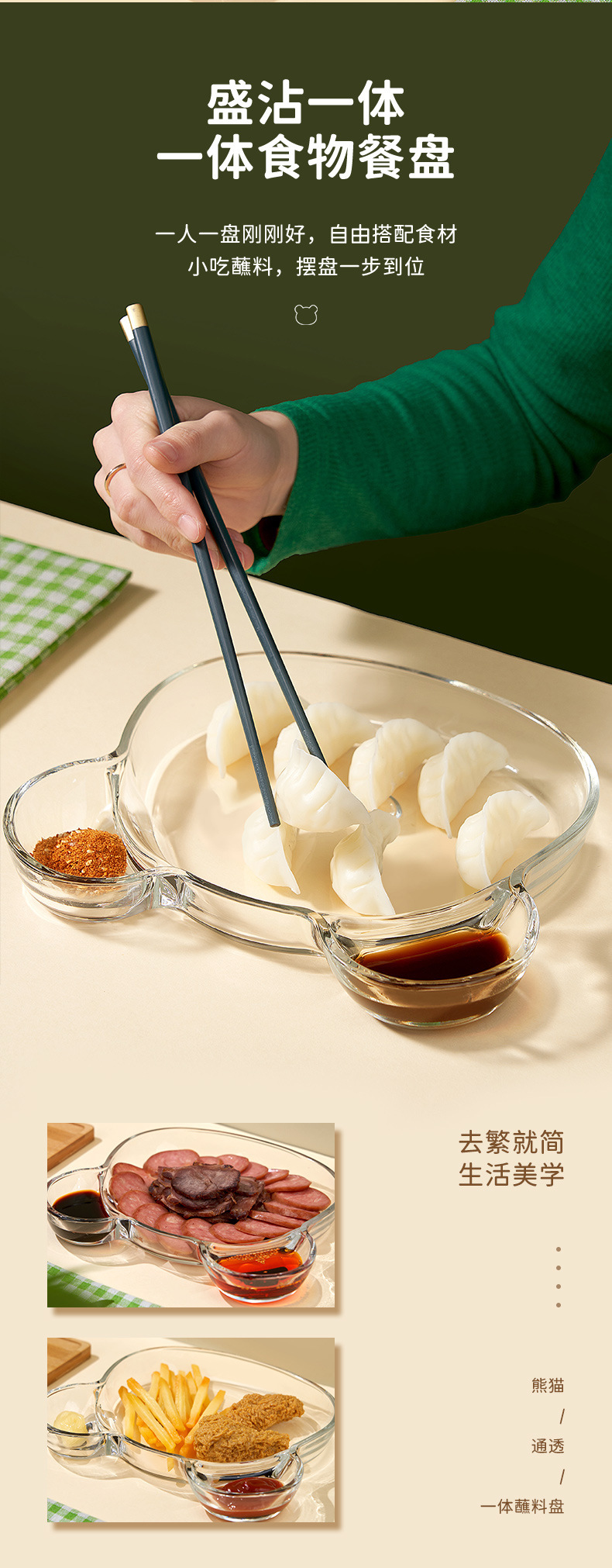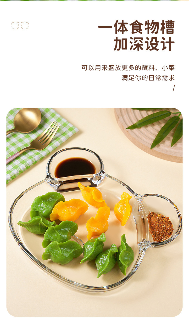 식초 접시와 유리 만두 판 지방 감소 식이 판 가정용 팬 모양의 쉘 만두 특수 딥 플레이트 통합 딥 플레이트