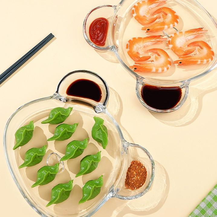 식초 접시와 유리 만두 판 지방 감소 식이 판 가정용 팬 모양의 쉘 만두 특수 딥 플레이트 통합 딥 플레이트스토어 가기