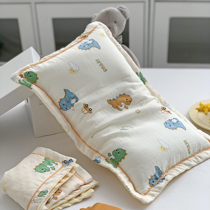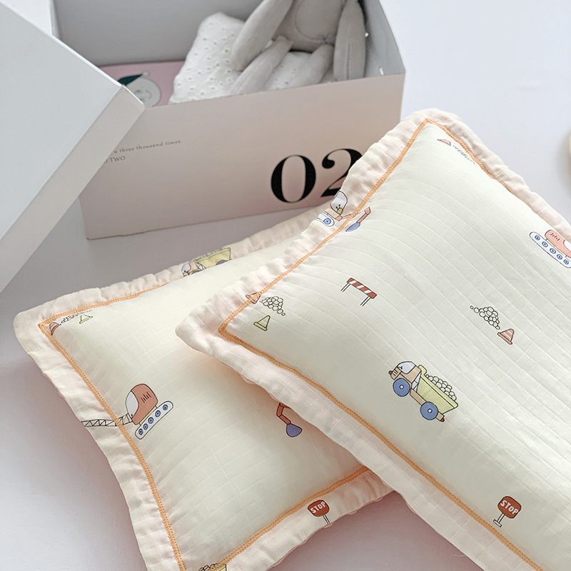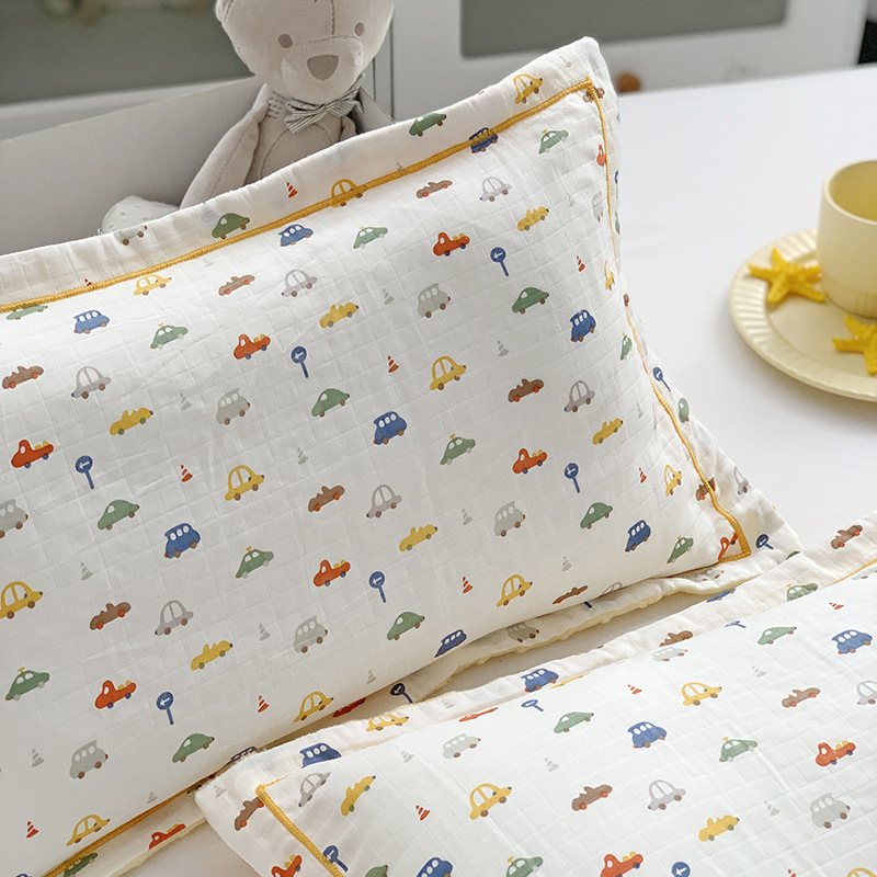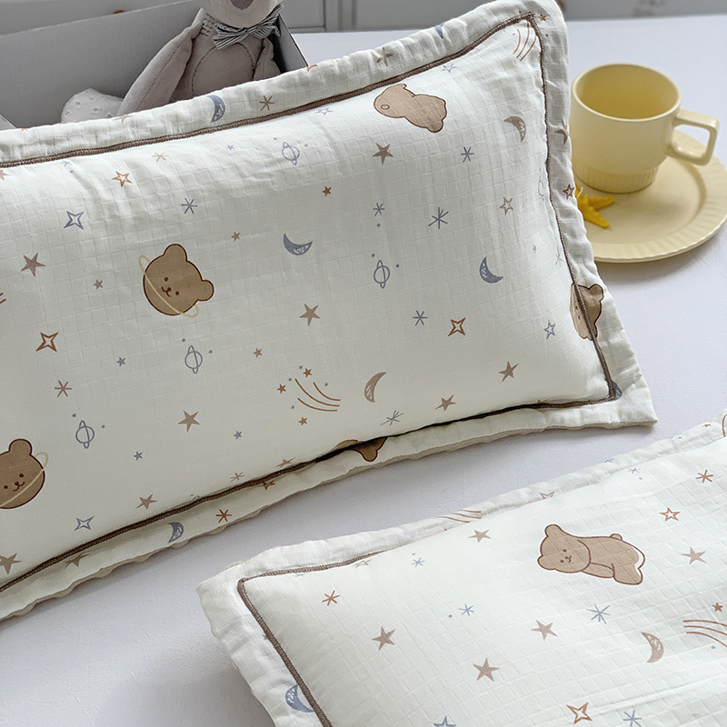 면 귀여운 어린이 더블 거즈 베개 유치원 아기 거즈 베개 커버 완두콩 벨벳 포장 베개 케이스스토어 가기