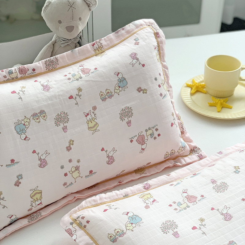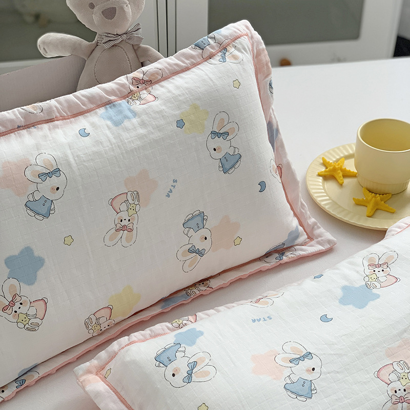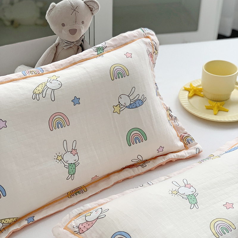 면 귀여운 어린이 더블 거즈 베개 유치원 아기 거즈 베개 커버 완두콩 벨벳 포장 베개 케이스