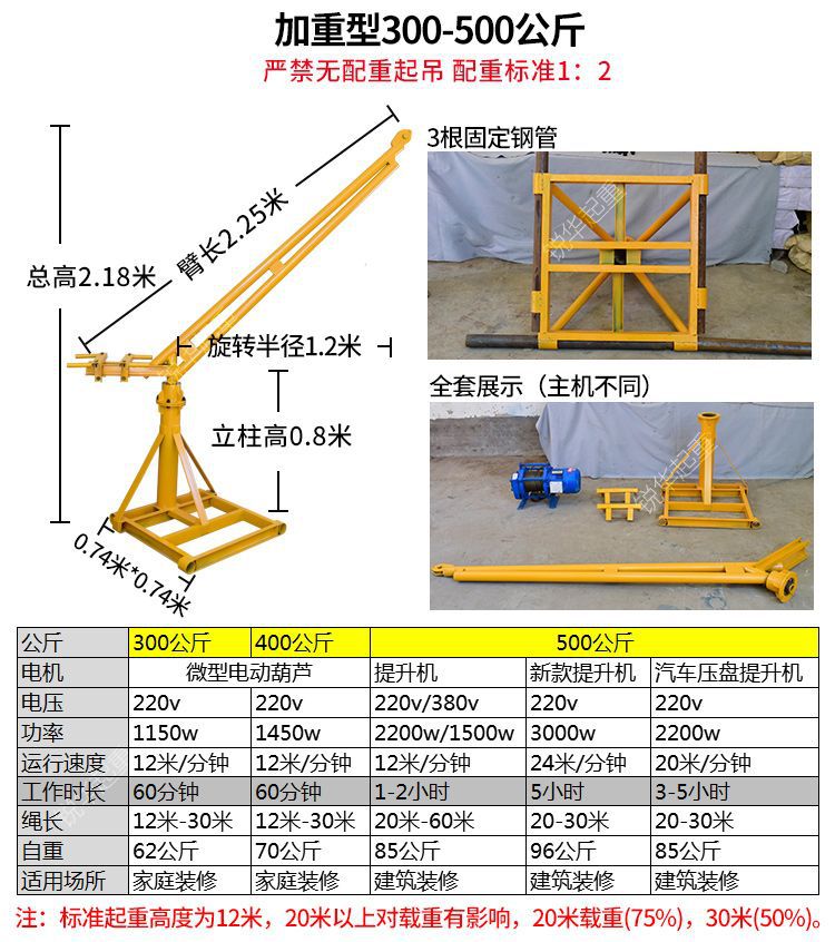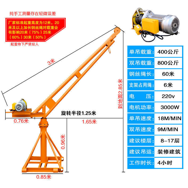 옥외 리프팅 기계 가구 작은 호이스트 220V 전기 호이스트 장식 크레인 건설 크레인