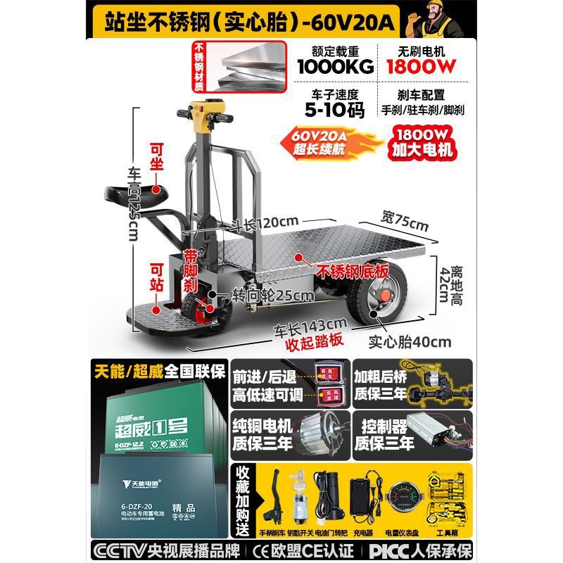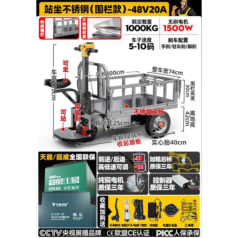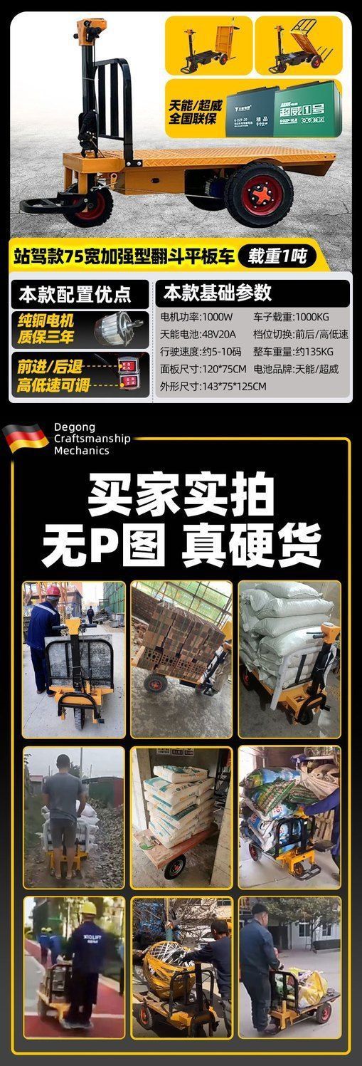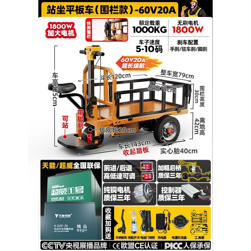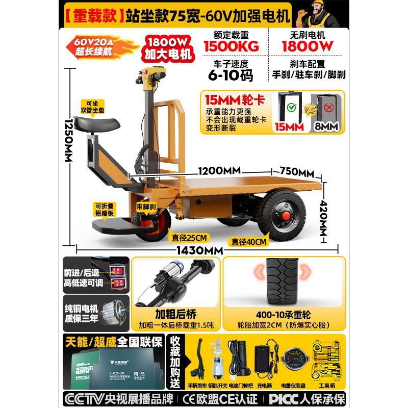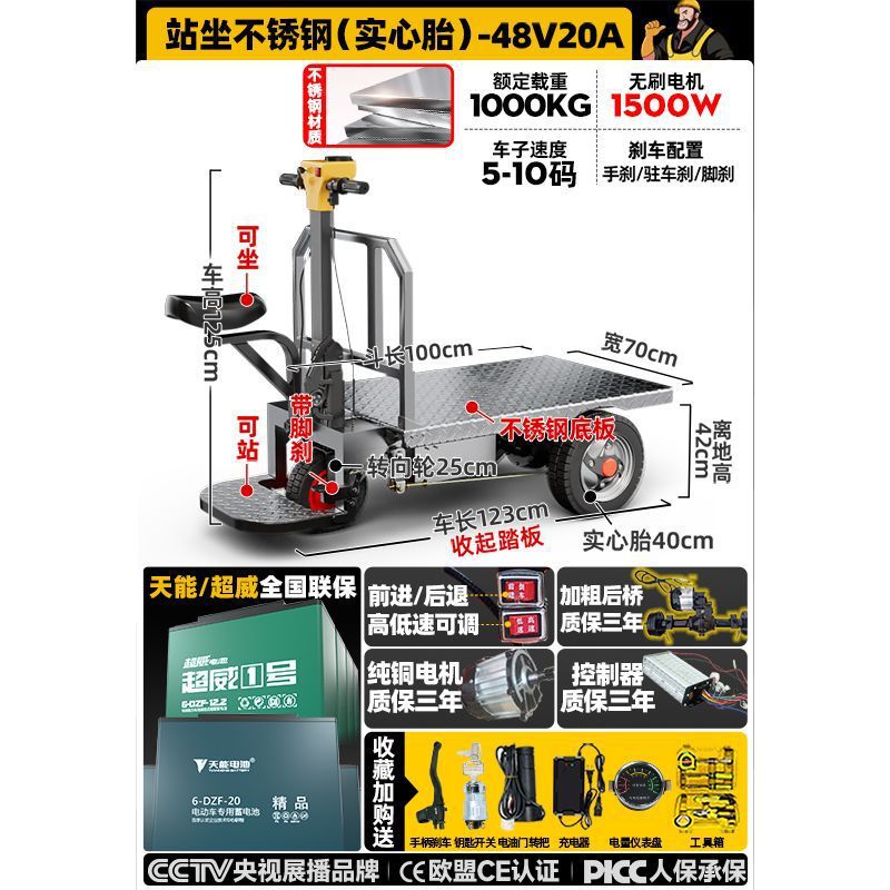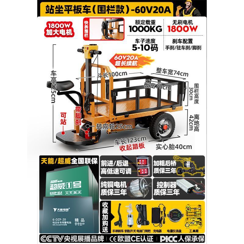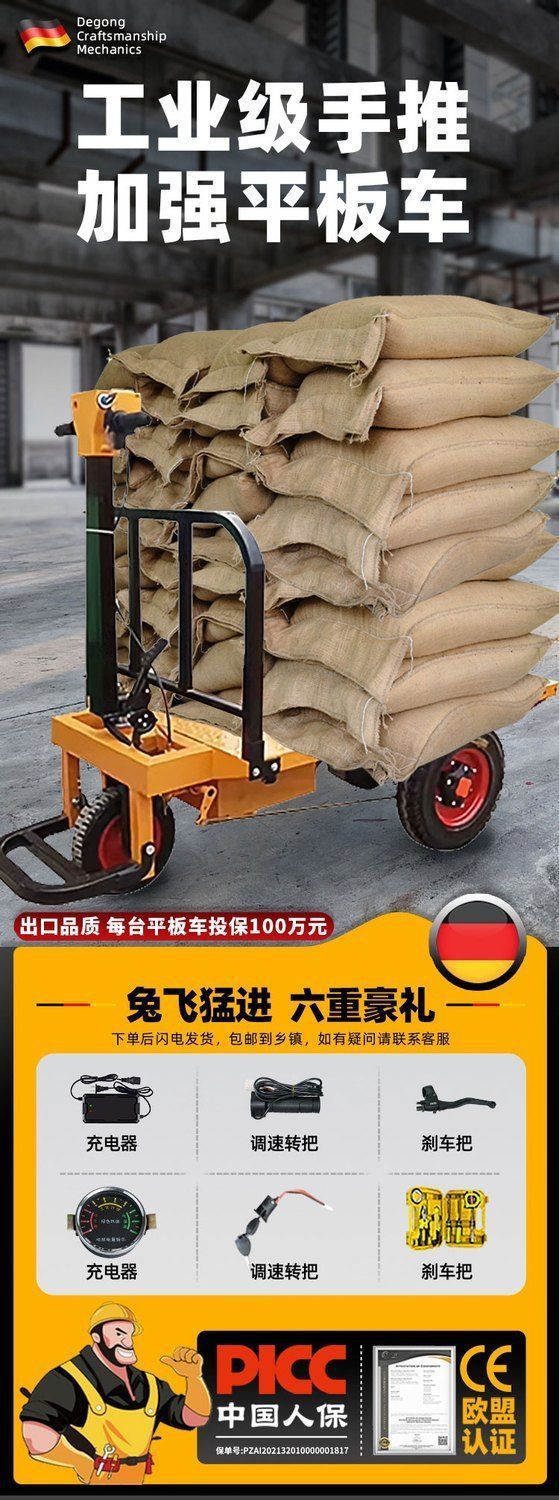 전기 플랫 베드 트롤리 건설 현장 세발 자전거 당기기 제품 당기기 벽돌 당기기 재료 작은 자동 농업 사육 취급 상품스토어 가기