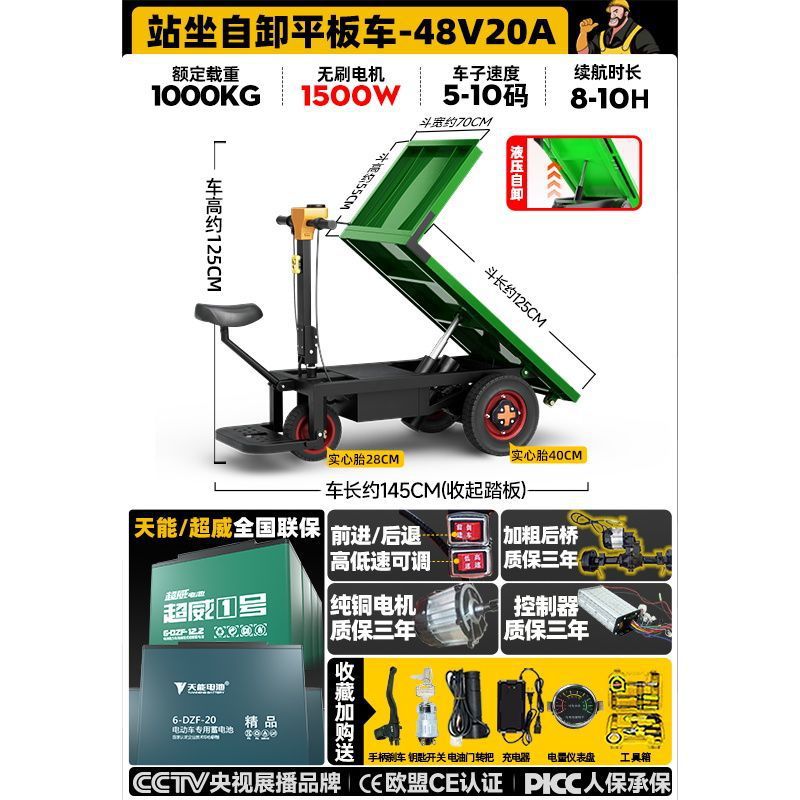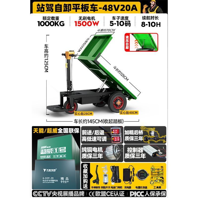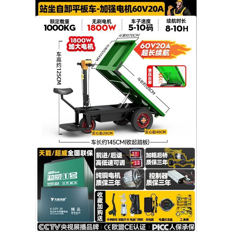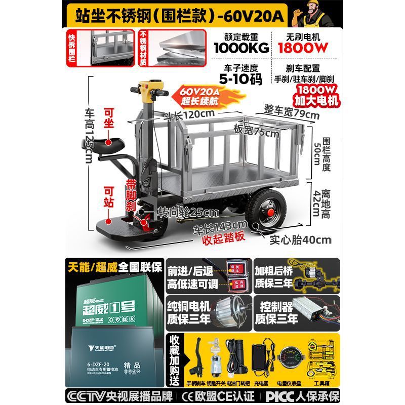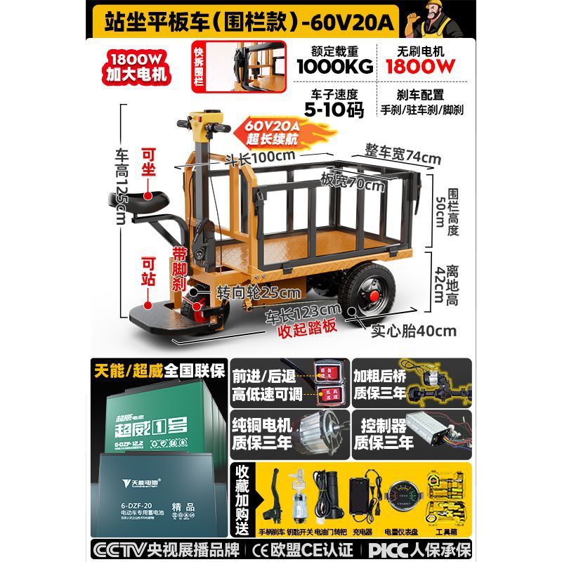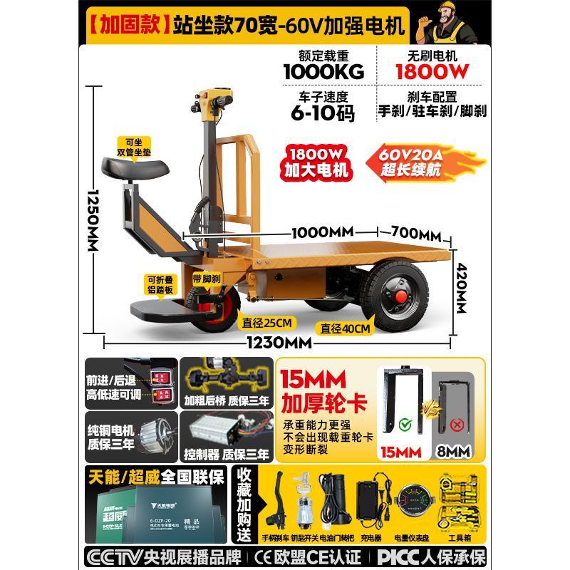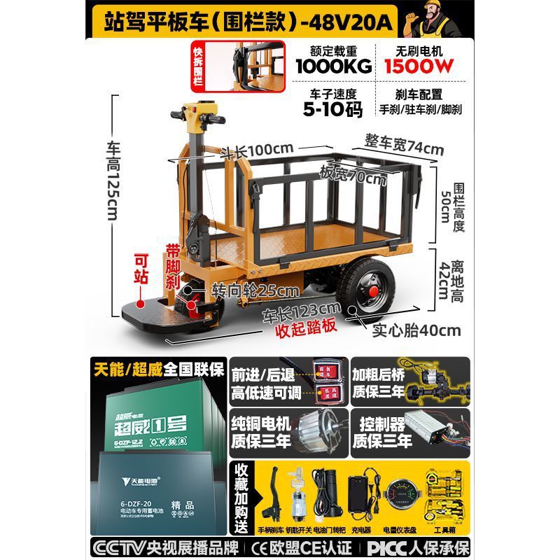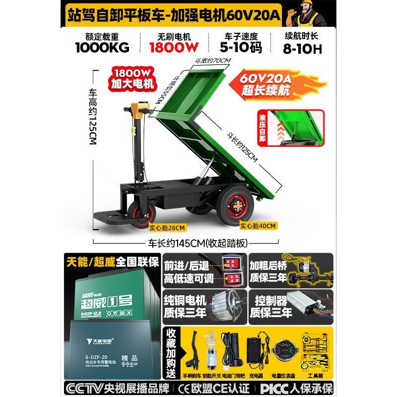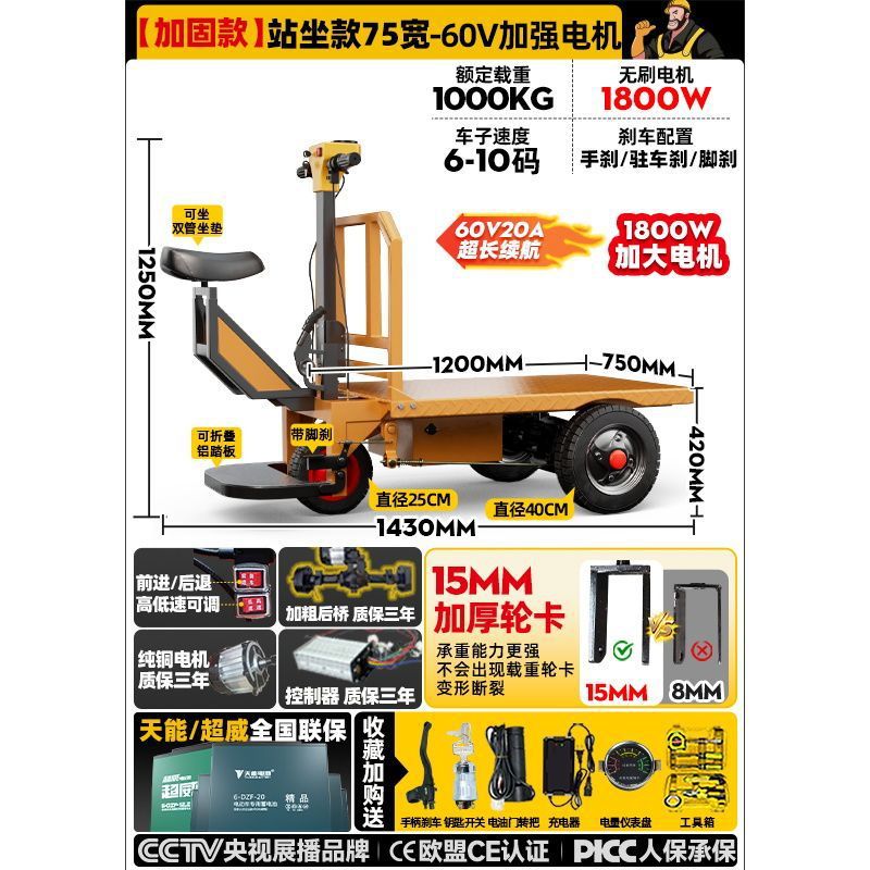 전기 플랫 베드 트롤리 건설 현장 세발 자전거 당기기 제품 당기기 벽돌 당기기 재료 작은 자동 농업 사육 취급 상품스토어 가기