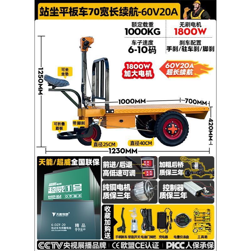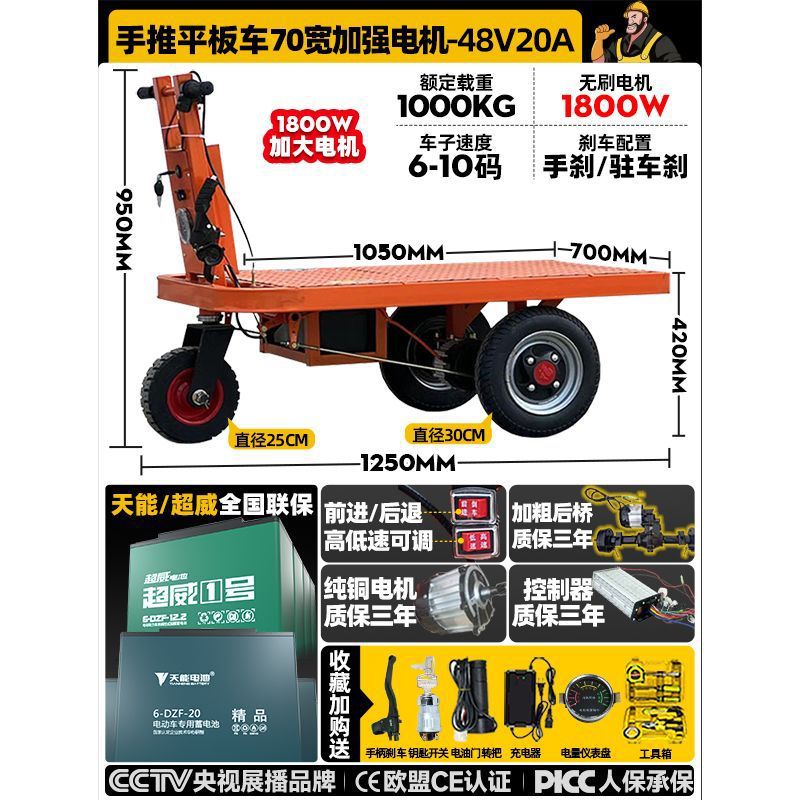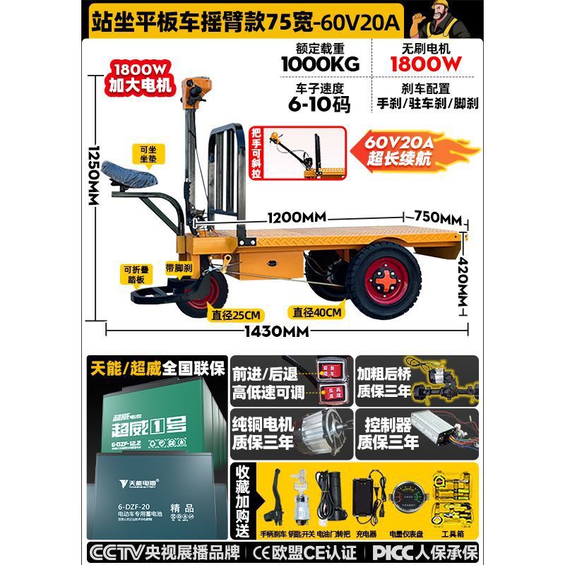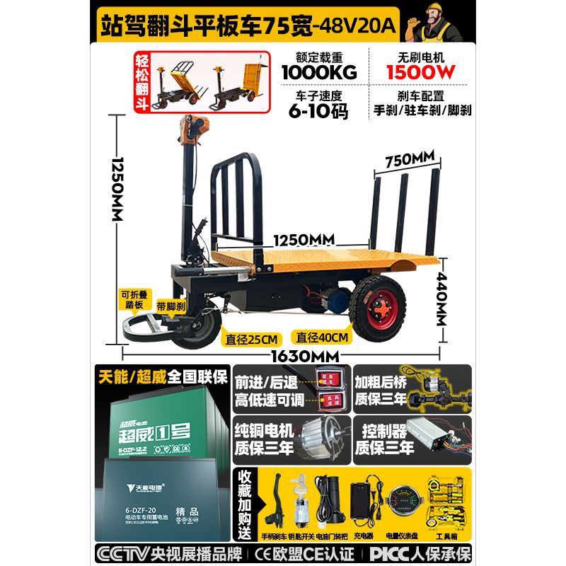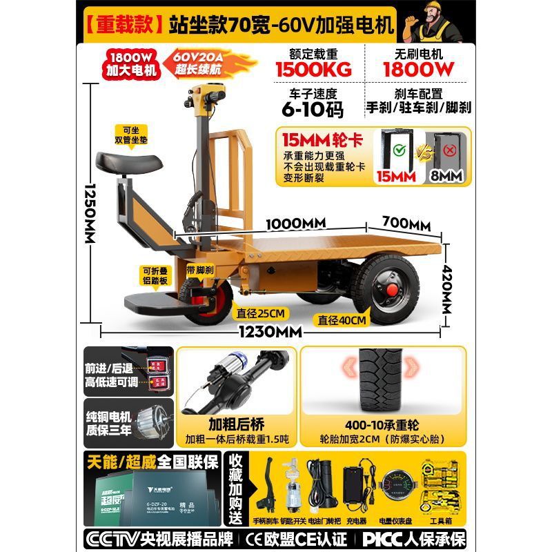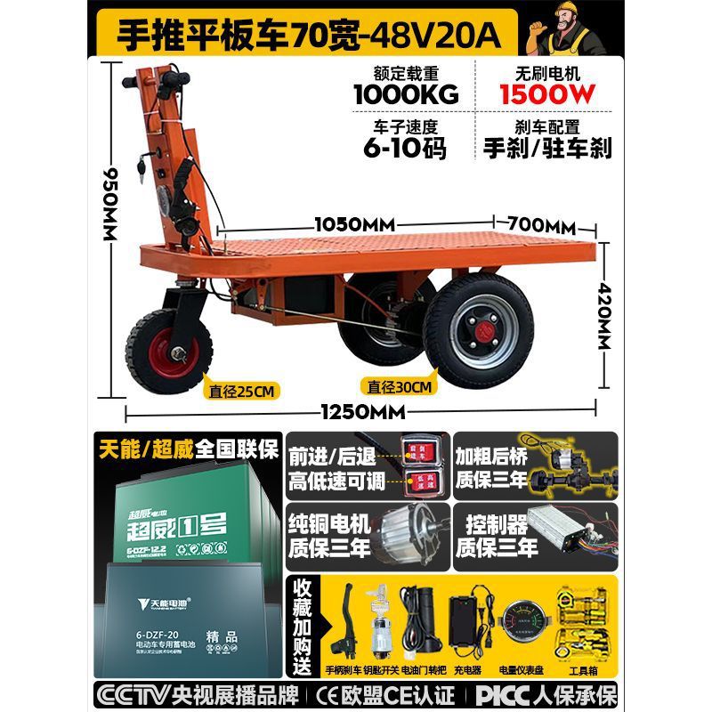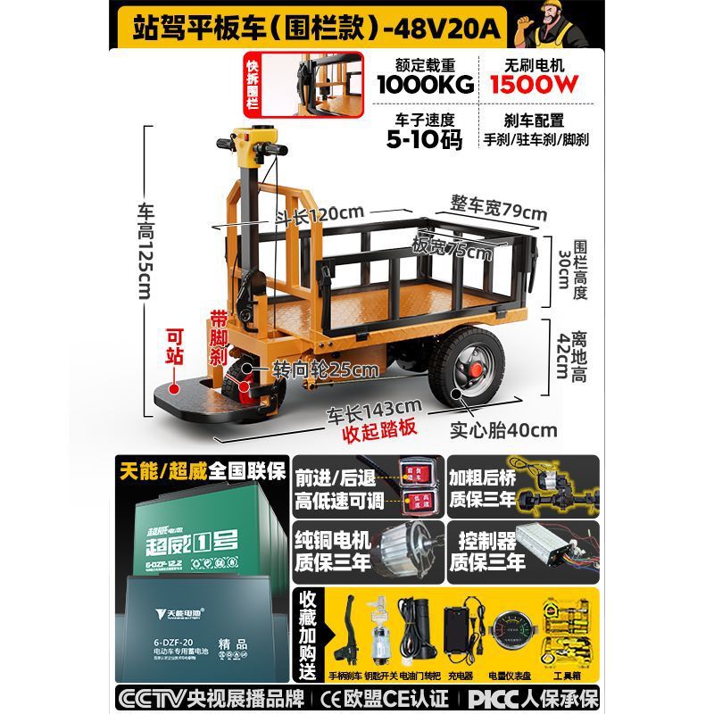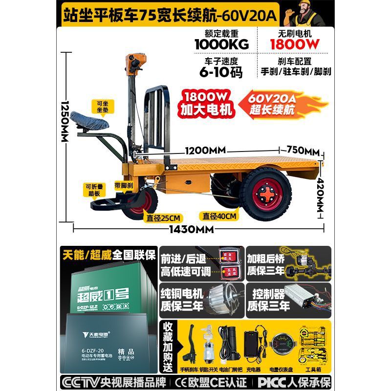 전기 플랫 베드 트롤리 건설 현장 세발 자전거 당기기 제품 당기기 벽돌 당기기 재료 작은 자동 농업 사육 취급 상품스토어 가기