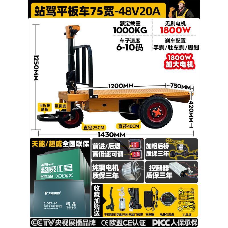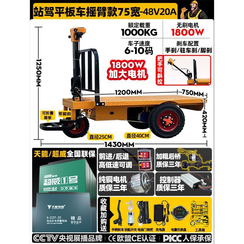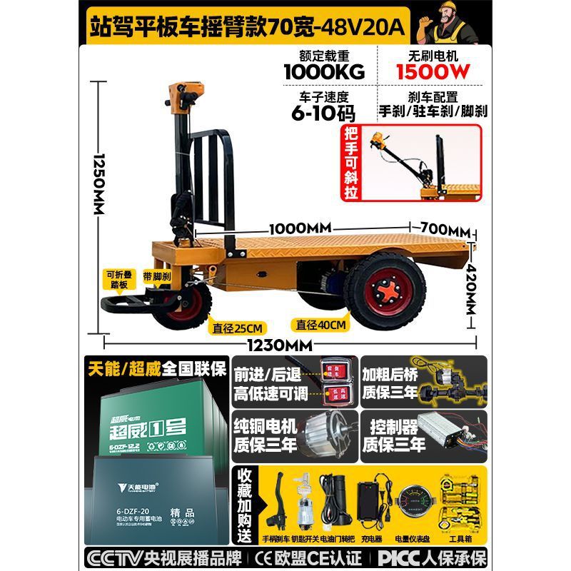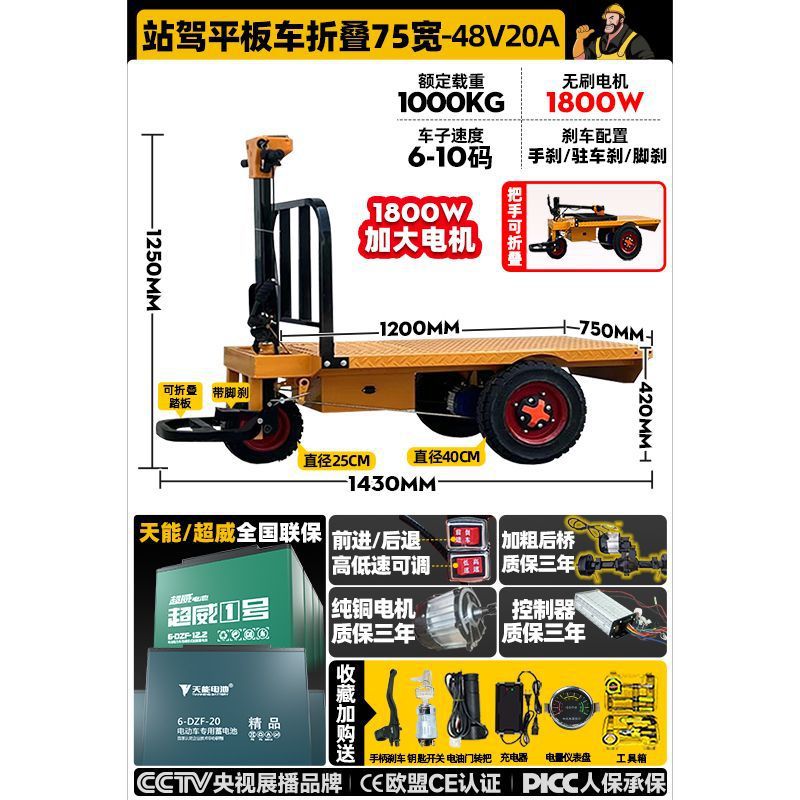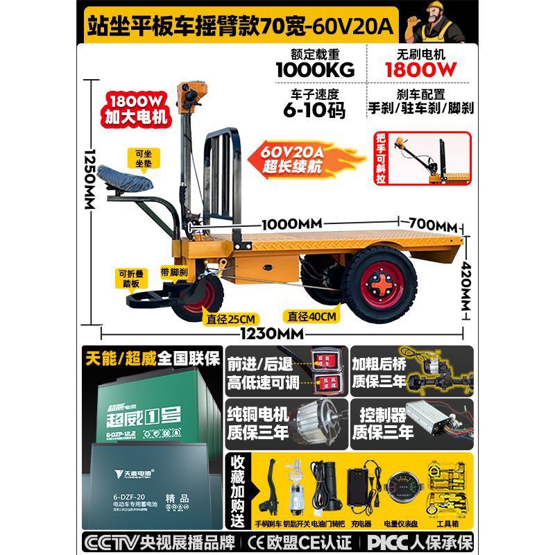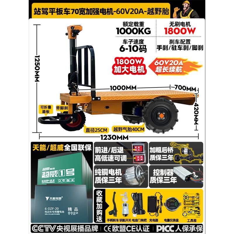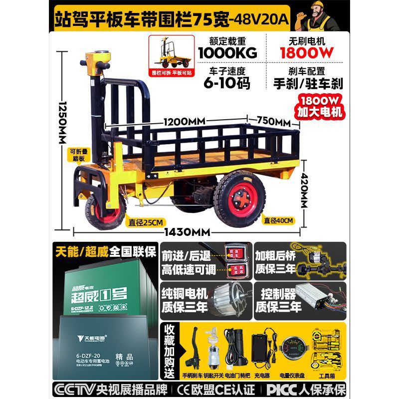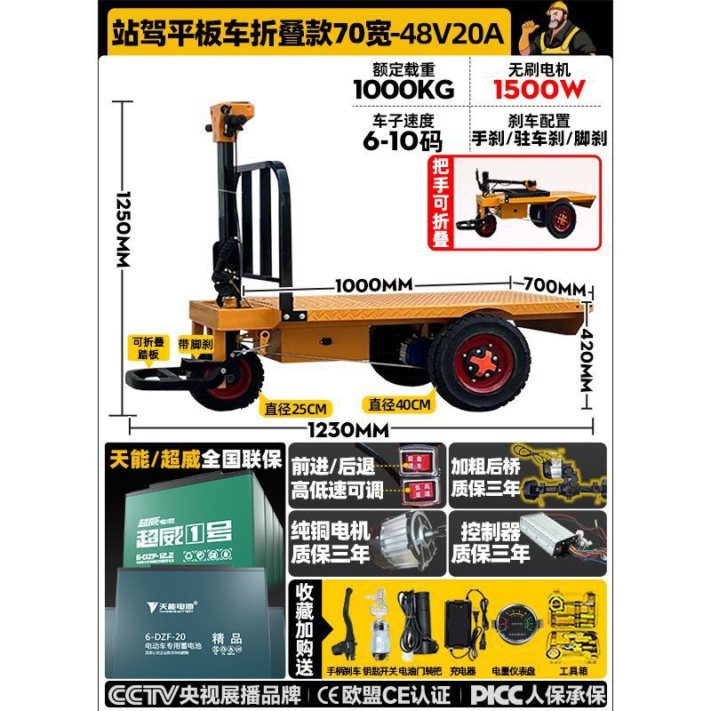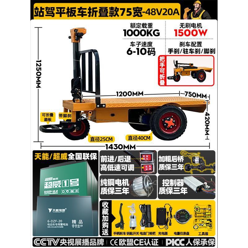 전기 플랫 베드 트롤리 건설 현장 세발 자전거 당기기 제품 당기기 벽돌 당기기 재료 작은 자동 농업 사육 취급 상품스토어 가기