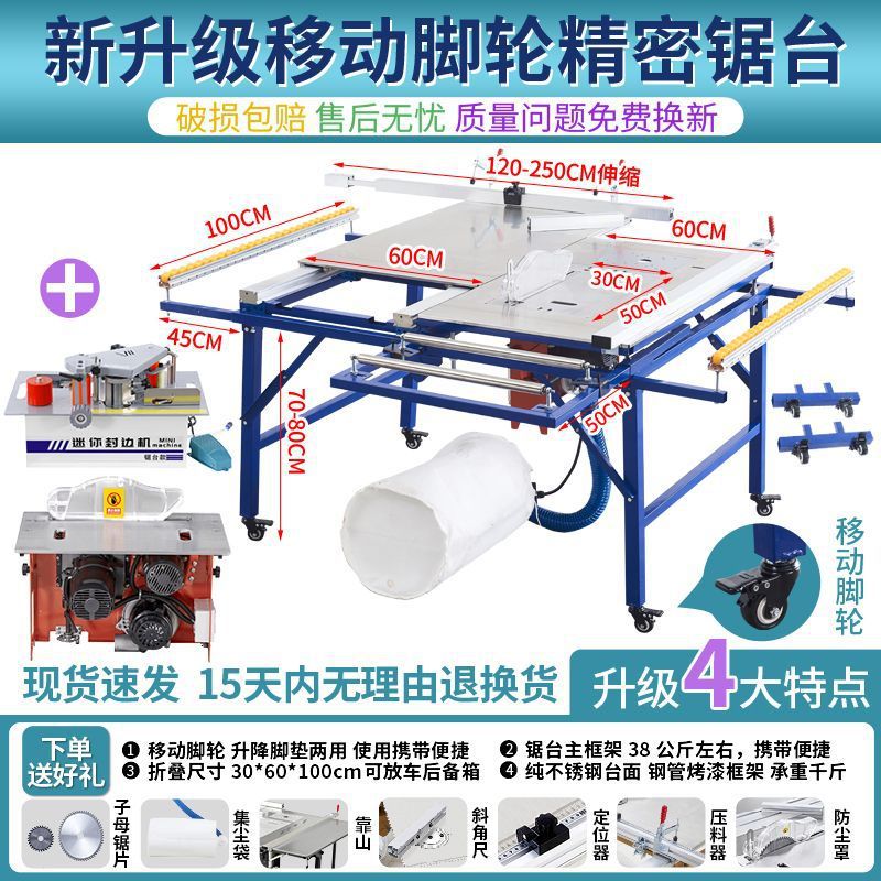 • 업그레이드된 테이블 톱 + 조정이 필요 없는 슬라이더 암 톱 + 엣지 밴딩 기계 및 각인 기계