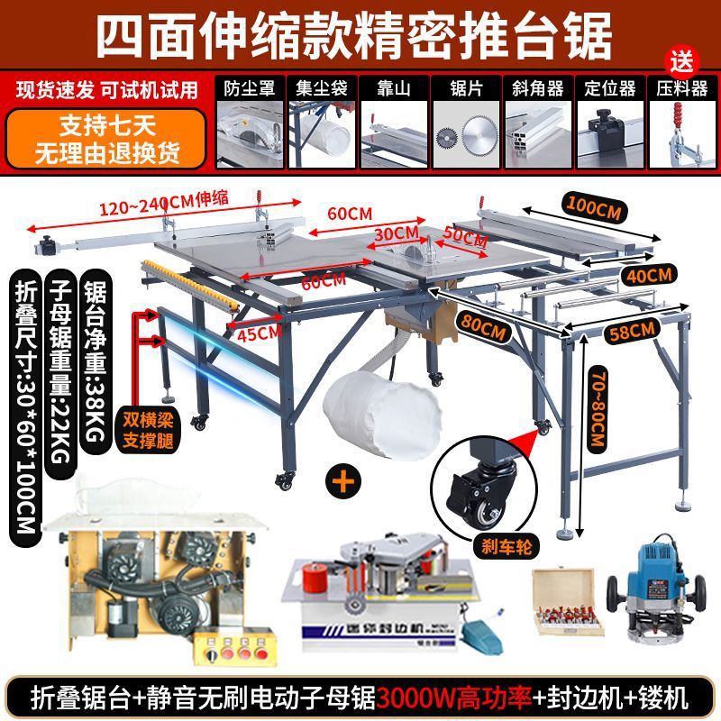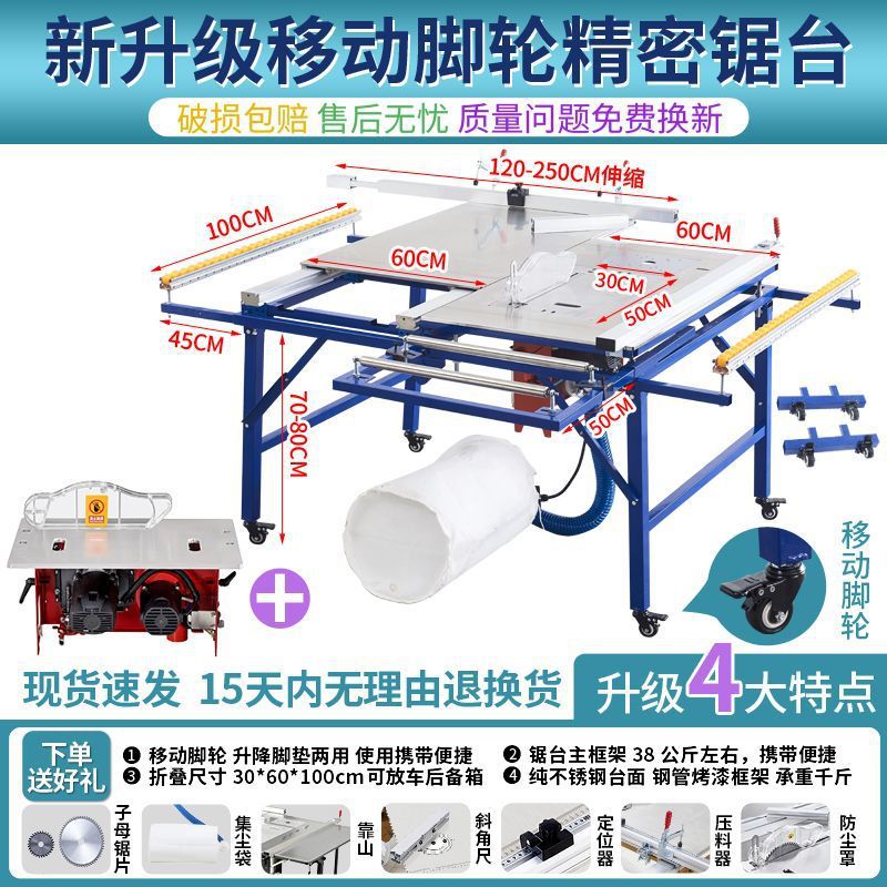 목공 푸시 테이블은 올인원 기계 먼지가없는 하위 부모가 정밀 트랙 작업대 푸시 풀 테이블 접이식 톱 테이블을 보았습니다.스토어 가기