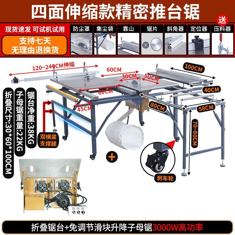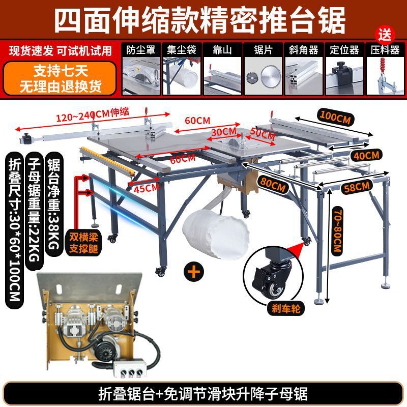 목공 푸시 테이블은 올인원 기계 먼지가없는 하위 부모가 정밀 트랙 작업대 푸시 풀 테이블 접이식 톱 테이블을 보았습니다.
