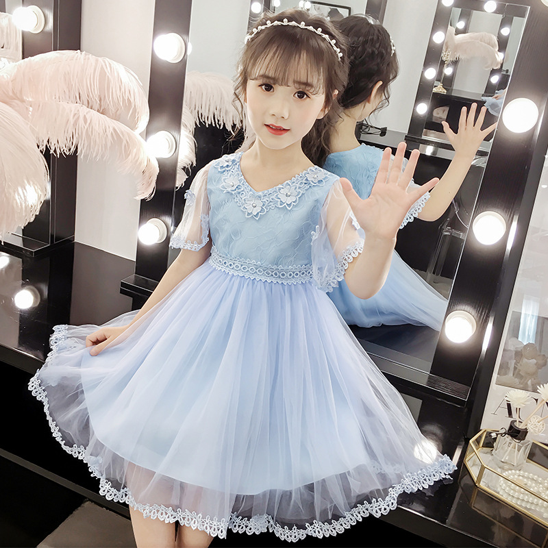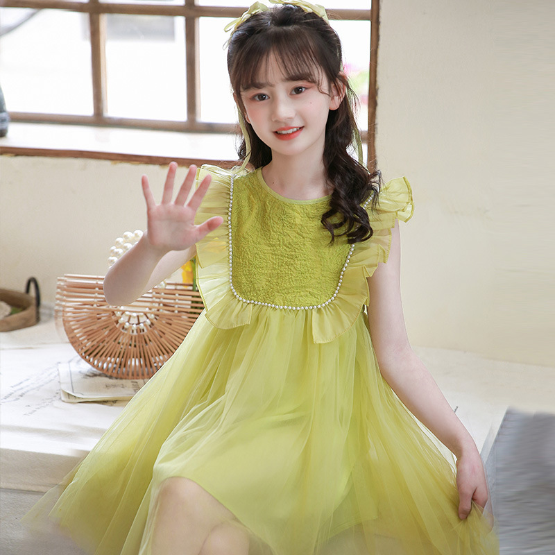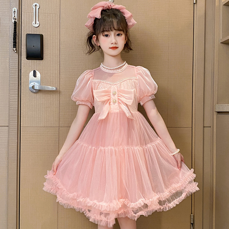 소녀 원피스 여름 2025 새로운 어린이 온라인 인기있는 외국 스타일 공주 원피스 어린 소녀 원피스 푹신한 원사 도매스토어 가기
